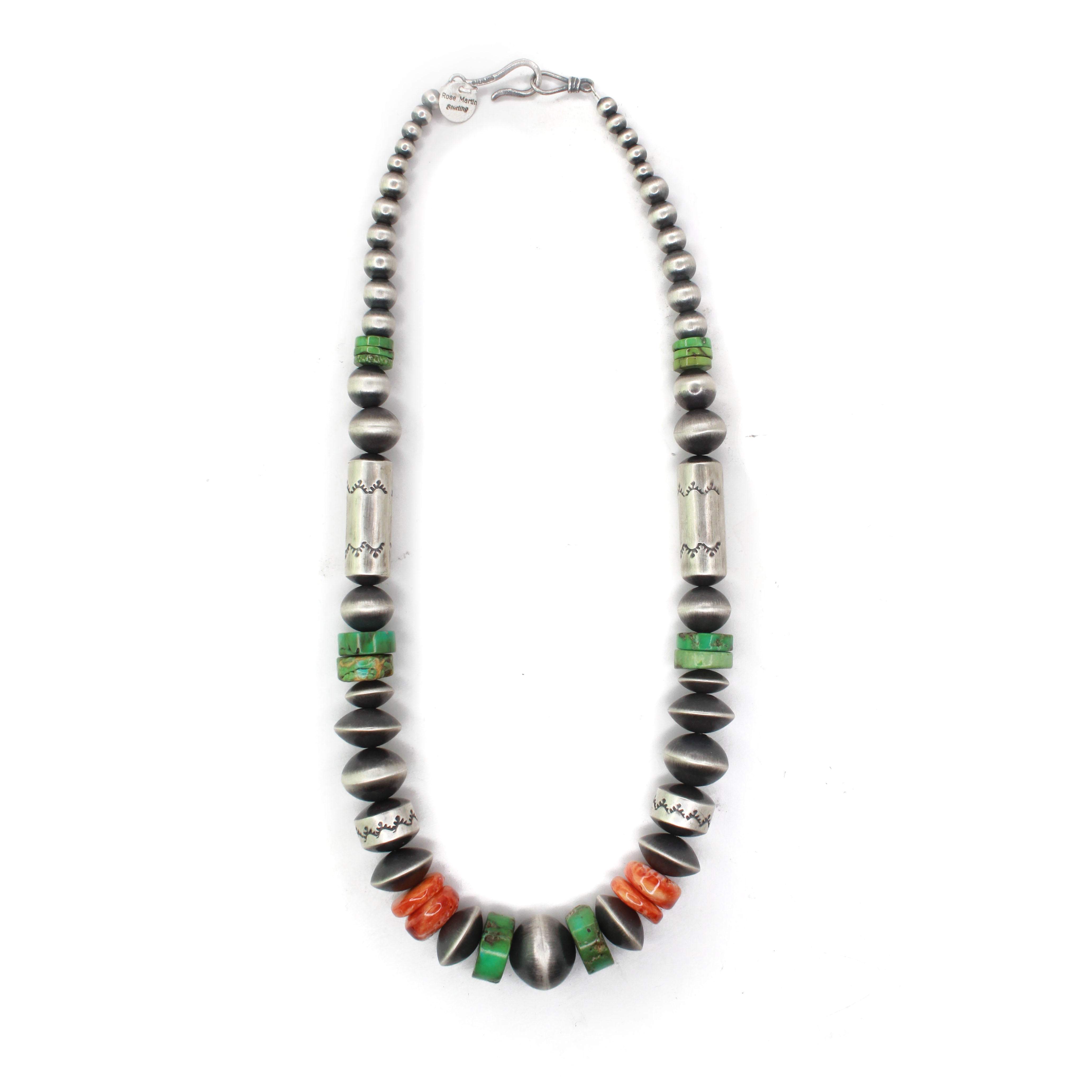 Creating hand-rolled silver beads is a celebrated tradition among Navajo silversmiths and an icon of Navajo jewelry. Handmade beads are meticulously crafted, with each bead being the result of an extremely labor-intensive process. These beads are shaped by hand using tools such as hammers, pliers, and files. The lengthy process includes melting, rolling, cutting, shaping, soldering & filing each sterling silver bead by BY HAND. This meticulous time honored method is a highly skilled trade that few artists have mastered.