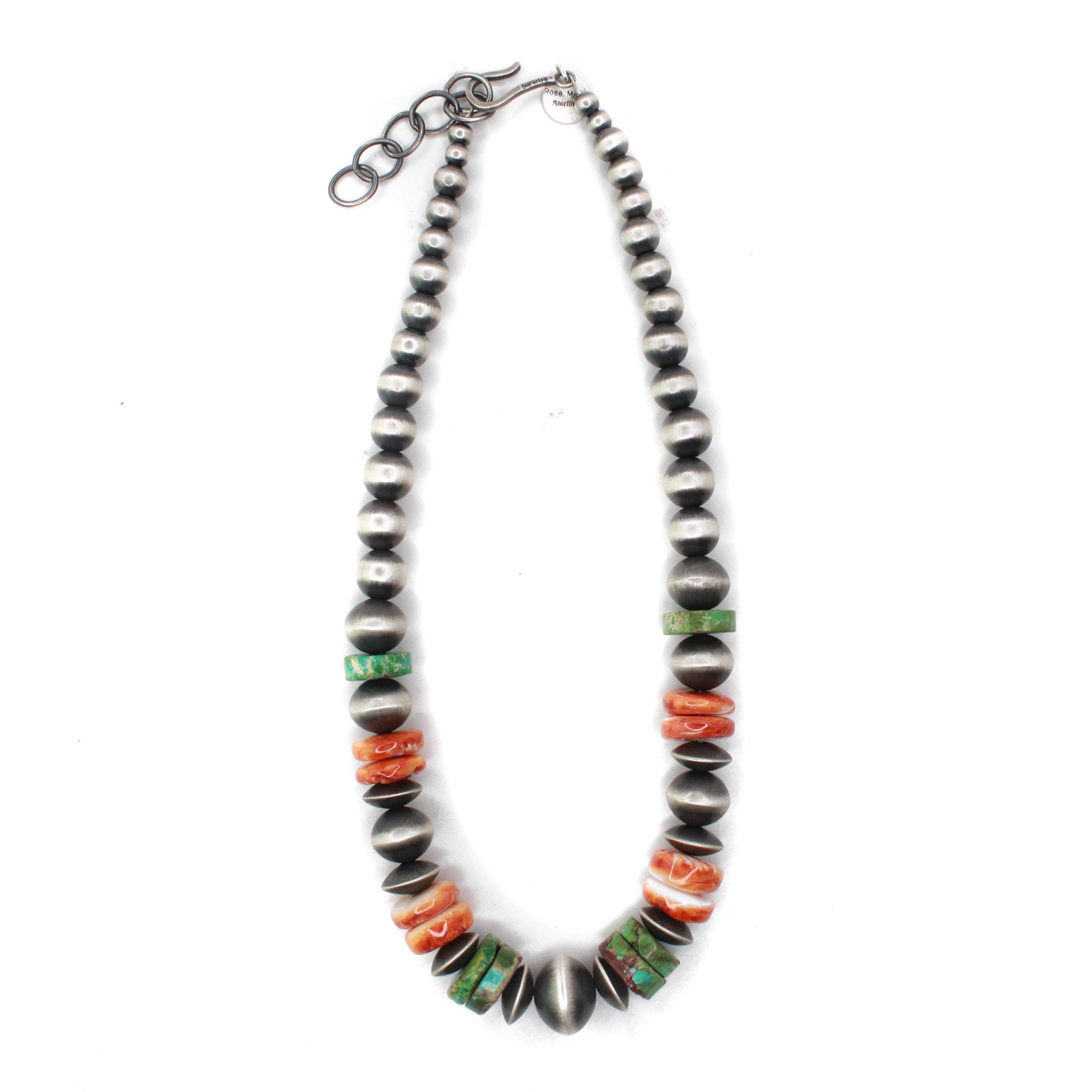 Creating hand-rolled silver beads is a celebrated tradition among Navajo silversmiths and an icon of Navajo jewelry. Handmade beads are meticulously crafted, with each bead being the result of an extremely labor-intensive process. These beads are shaped by hand using tools such as hammers, pliers, and files. The lengthy process includes melting, rolling, cutting, shaping, soldering & filing each sterling silver bead by BY HAND. This meticulous time honored method is a highly skilled trade that few artists have mastered.