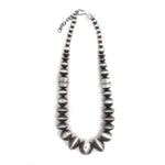 Creating hand-rolled silver beads is a celebrated tradition among Navajo silversmiths and an icon of Navajo jewelry. Handmade beads are meticulously crafted, with each bead being the result of an extremely labor-intensive process. These beads are shaped by hand using tools such as hammers, pliers, and files. The lengthy process includes melting, rolling, cutting, shaping, soldering & filing each sterling silver bead by BY HAND. This meticulous time honored method is a highly skilled trade that few artists have mastered.