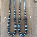 Creating hand-rolled silver beads is a celebrated tradition among Navajo silversmiths and an icon of Navajo jewelry. Handmade beads are meticulously crafted, with each bead being the result of an extremely labor-intensive process. These beads are shaped by hand using tools such as hammers, pliers, and files. The lengthy process includes melting, rolling, cutting, shaping, soldering & filing each sterling silver bead by BY HAND. This meticulous time honored method is a highly skilled trade that few artists have mastered.