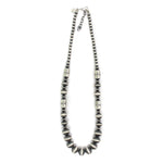 Creating hand-rolled silver beads is a celebrated tradition among Navajo silversmiths and an icon of Navajo jewelry. Handmade beads are meticulously crafted, with each bead being the result of an extremely labor-intensive process. These beads are shaped by hand using tools such as hammers, pliers, and files. The lengthy process includes melting, rolling, cutting, shaping, soldering & filing each sterling silver bead by BY HAND. This meticulous time honored method is a highly skilled trade that few artists have mastered.