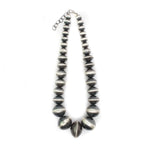 Creating hand-rolled silver beads is a celebrated tradition among Navajo silversmiths and an icon of Navajo jewelry. Handmade beads are meticulously crafted, with each bead being the result of an extremely labor-intensive process. These beads are shaped by hand using tools such as hammers, pliers, and files. The lengthy process includes melting, rolling, cutting, shaping, soldering & filing each sterling silver bead by BY HAND. This meticulous time honored method is a highly skilled trade that few artists have mastered.
