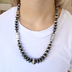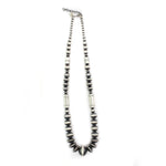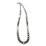 Creating hand-rolled silver beads is a celebrated tradition among Navajo silversmiths and an icon of Navajo jewelry. Handmade beads are meticulously crafted, with each bead being the result of an extremely labor-intensive process. These beads are shaped by hand using tools such as hammers, pliers, and files. The lengthy process includes melting, rolling, cutting, shaping, soldering & filing each sterling silver bead by BY HAND. This meticulous time honored method is a highly skilled trade that few artists have mastered.