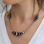 Creating hand-rolled silver beads is a celebrated tradition among Navajo silversmiths and an icon of Navajo jewelry. Handmade beads are meticulously crafted, with each bead being the result of an extremely labor-intensive process. These beads are shaped by hand using tools such as hammers, pliers, and files. The lengthy process includes melting, rolling, cutting, shaping, soldering & filing each sterling silver bead by BY HAND. This meticulous time honored method is a highly skilled trade that few artists have mastered.