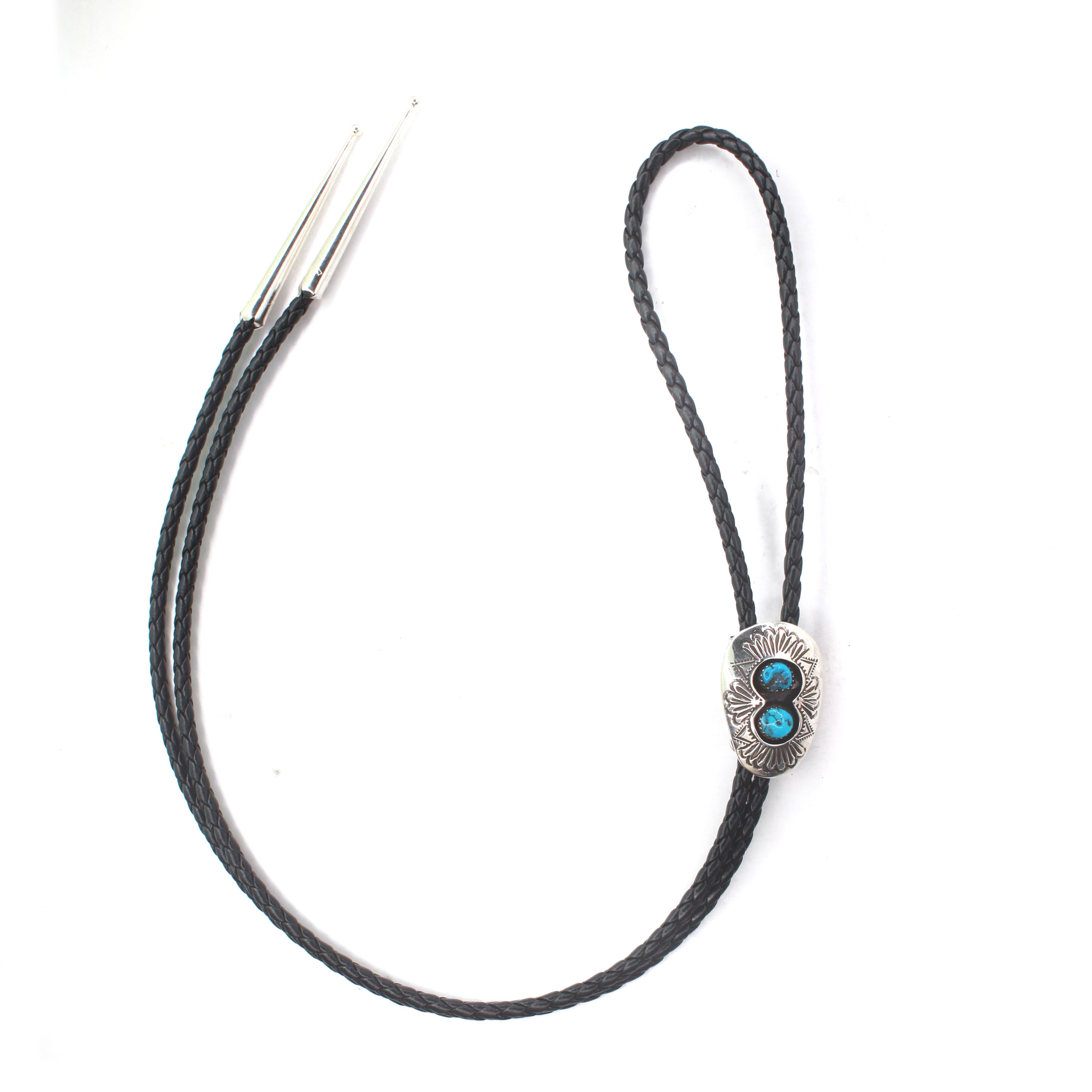 Length end to End Measurements listed for bolos is the entire length of leather cord including any silver tips/embellishments. The 'Cluster Size' or 'The Concho Size' listed is the total height and width of piece that slides.