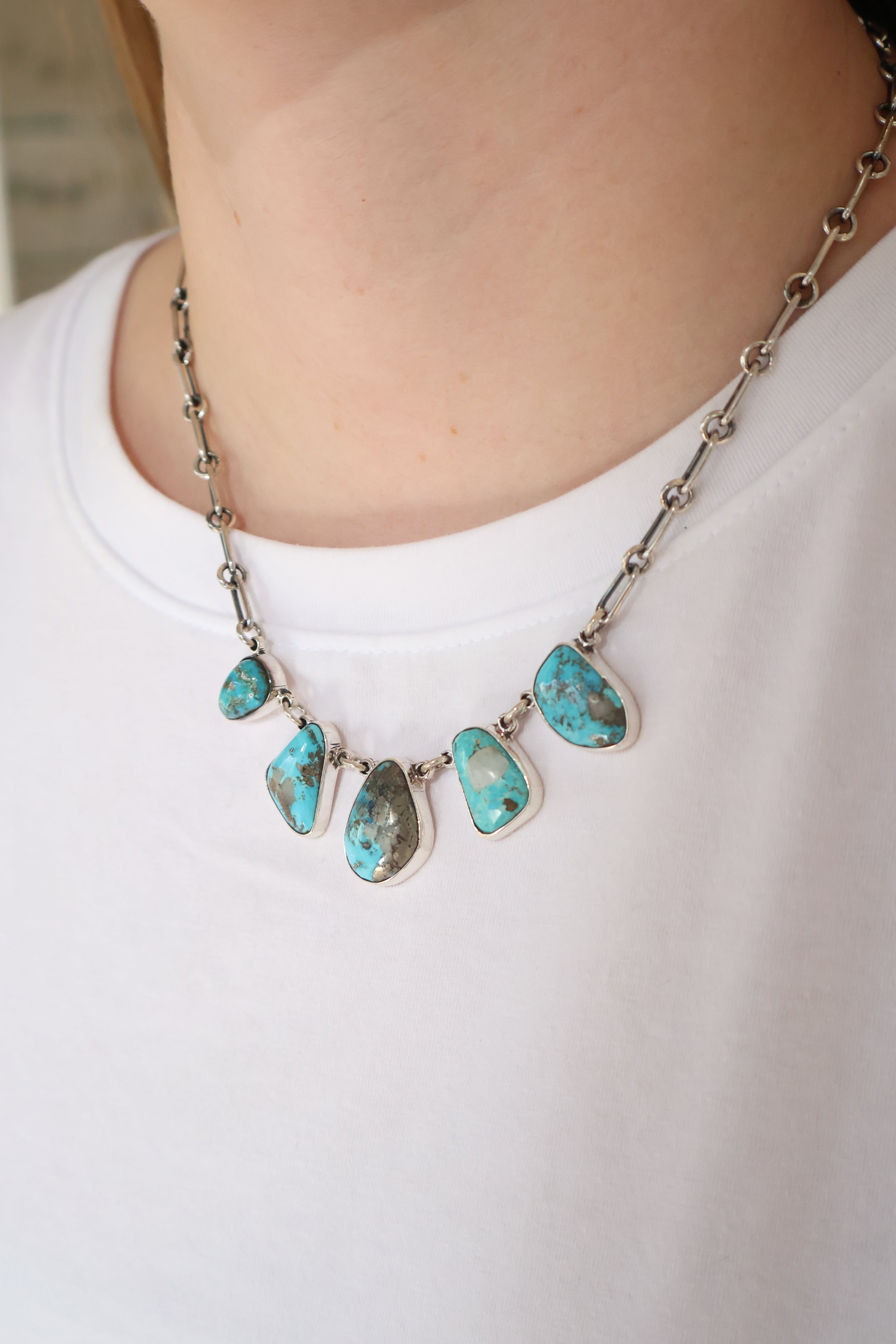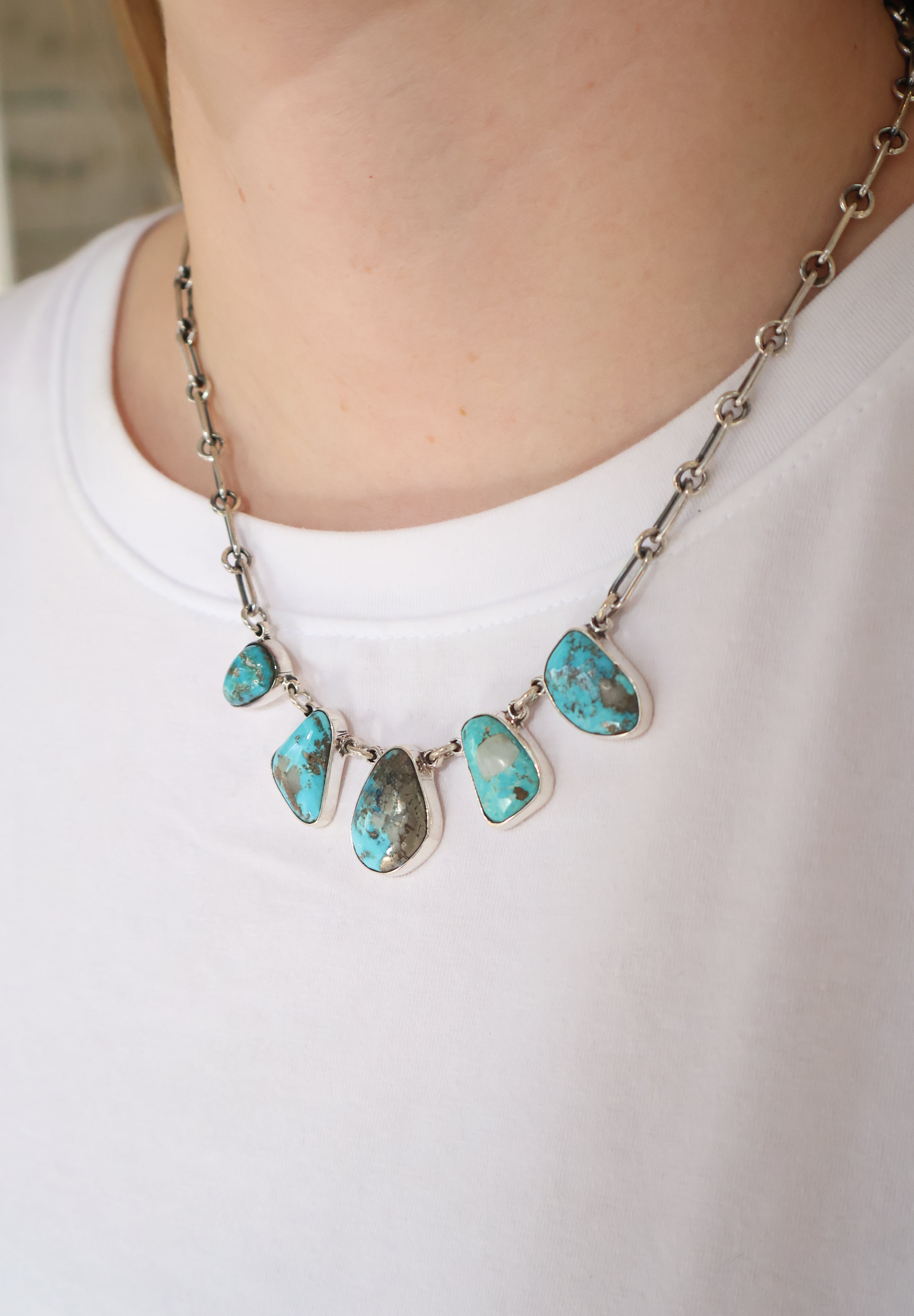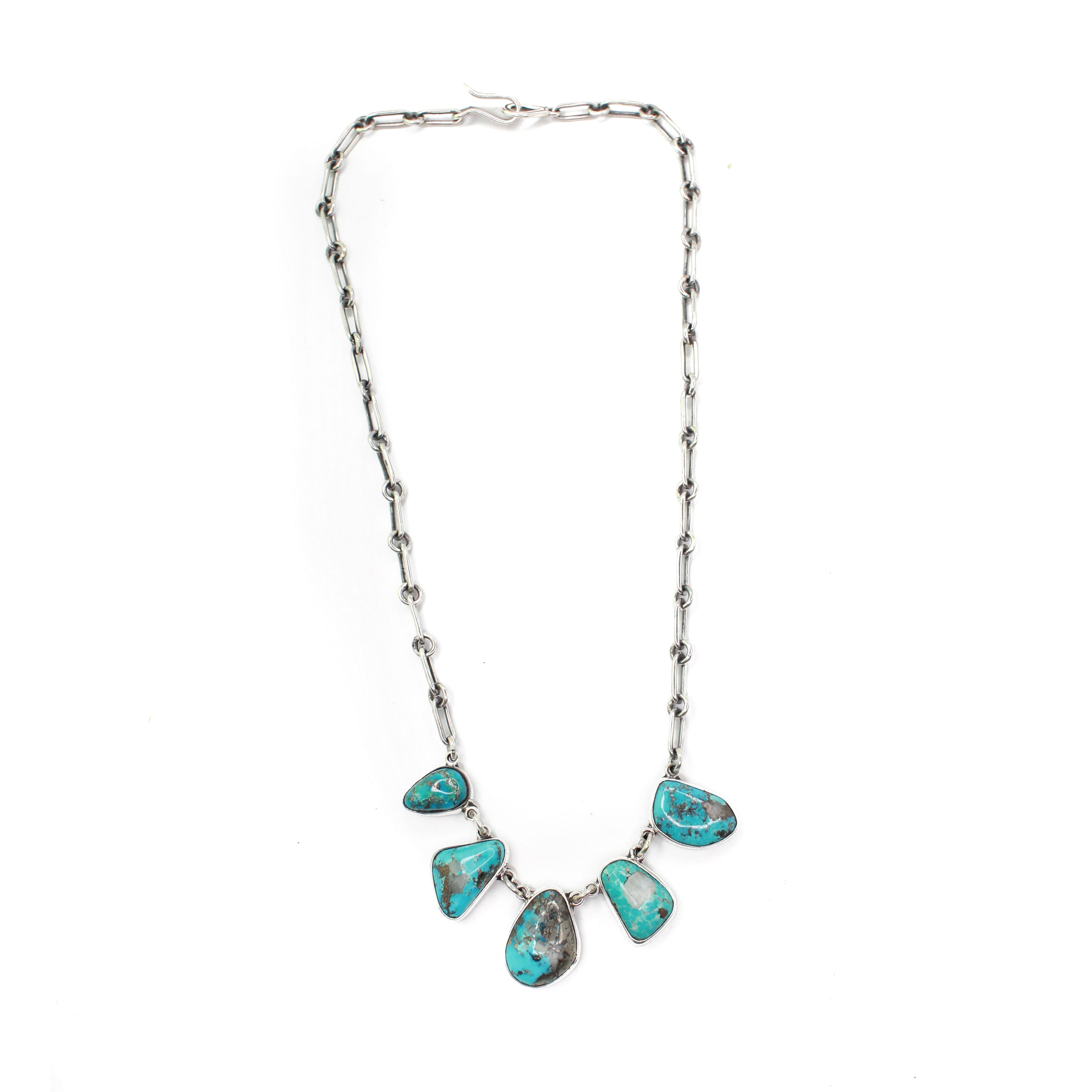 The Kingman Mine, located near Kingman, Arizona, is an active turquoise mine that has been in production since the 1880s, following its discovery by S.A. Colbaugh in the Aztec Mountains. The Colbaugh family continues to mine, process, sort, and distribute Kingman Turquoise. Most Kingman Turquoise is porous and requires processing for jewelry, with only about 3% of the stones being naturally hard enough for direct use. The mine is renowned for its blue matrix turquoise. Read More