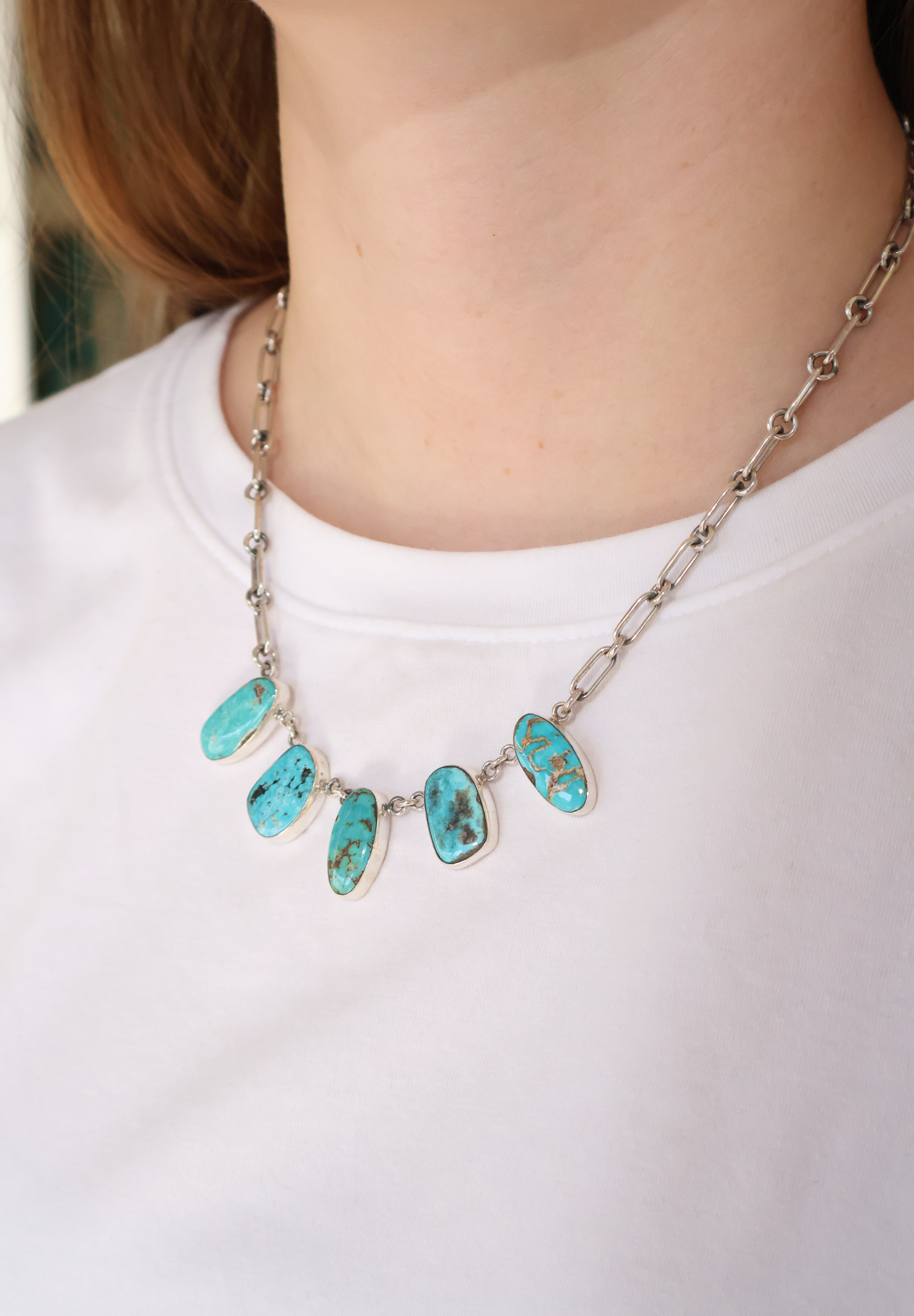 The Kingman Mine, located near Kingman, Arizona, is an active turquoise mine that has been in production since the 1880s, following its discovery by S.A. Colbaugh in the Aztec Mountains. The Colbaugh family continues to mine, process, sort, and distribute Kingman Turquoise. Most Kingman Turquoise is porous and requires processing for jewelry, with only about 3% of the stones being naturally hard enough for direct use. The mine is renowned for its blue matrix turquoise. Read More