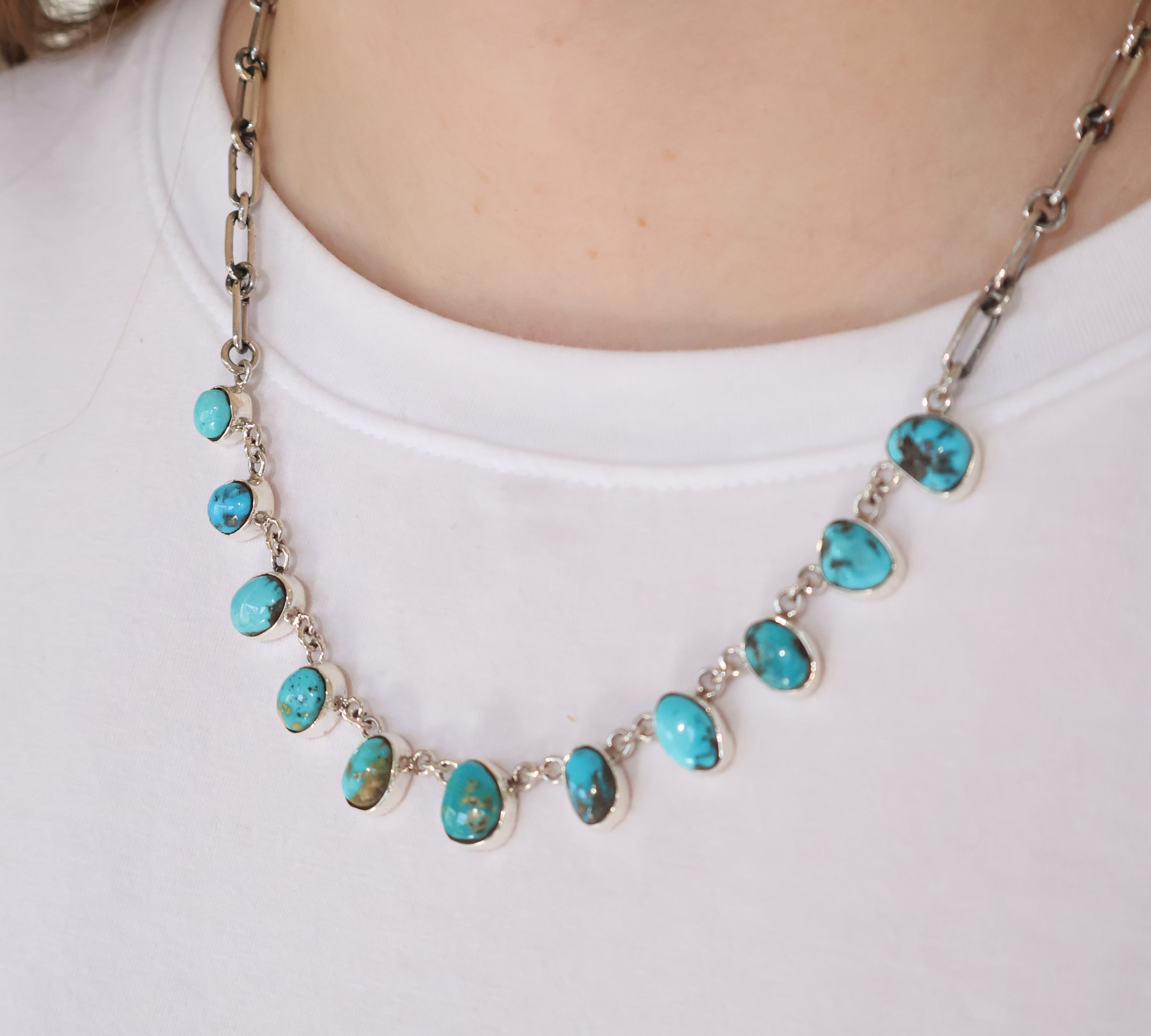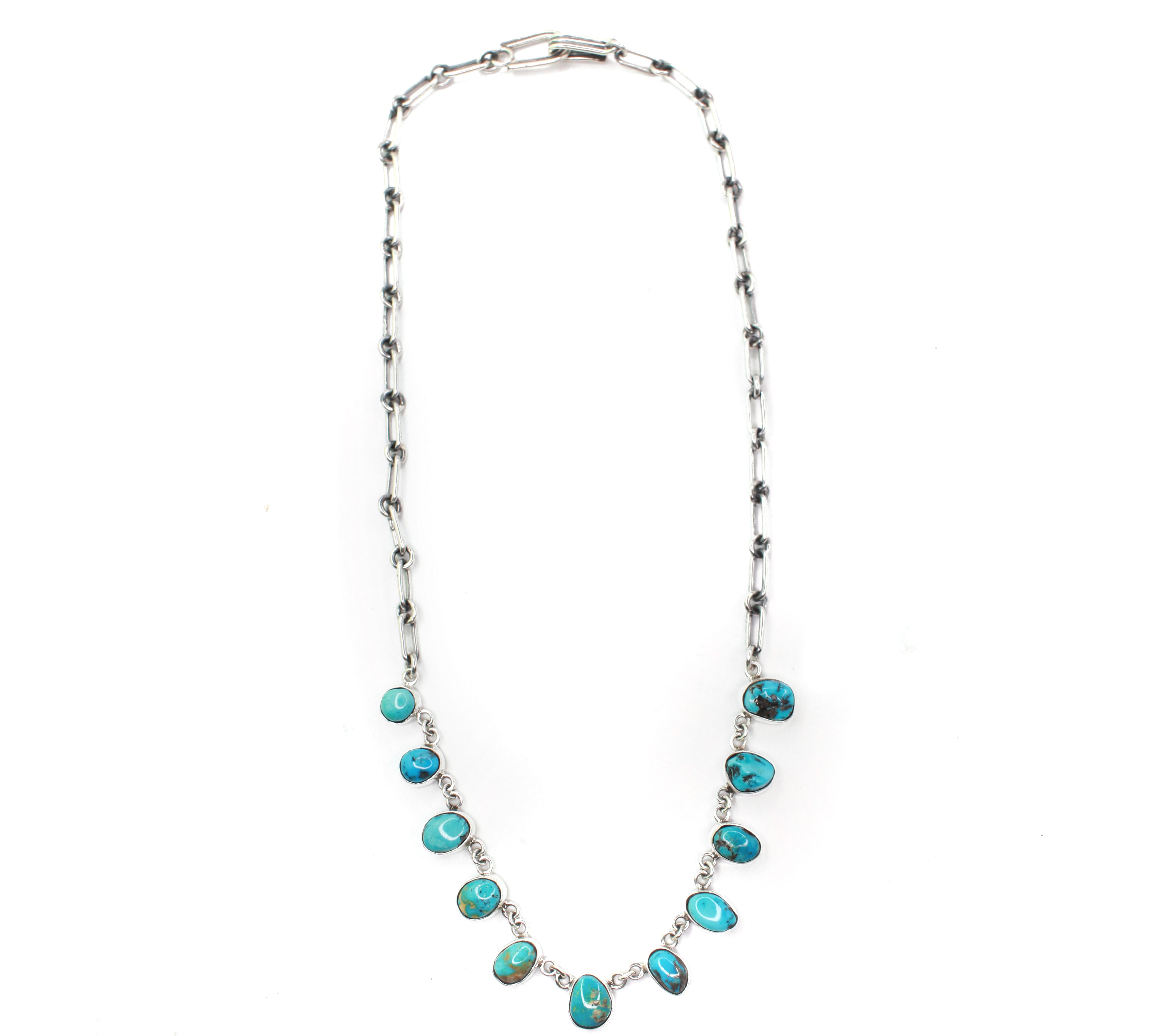 The Kingman Mine is located at The Mineral Park Mines just outside of the of Kingman, Arizona. The Kingman Mine is still in production. Commercial mining of the site began in the 1880s when S.A. Colbaugh discovered the ancient mine, in what was known as the "Aztec Mountains" back then.  At the time Arizona wasn't even a state. Kingman Turquoise is still mined, processed, sorted, graded, and distributed by the Colbaugh Family. Navajo hammers dating back to 600 a.d. and materials used for polishing and finishing turquoise were also discovered at the Kingman Turquoise Mine, along with water skins and charcoal. Archeologists believe that Native Americans would heat the rocks up using charcoal and then douse the hot rock with water from the skins... resulting in the rocks fracturing and exposing the turquoise veins. Most Kingman Turquoise is very porous and requires processing for use in jewelry. Approximately three percent of the stones pulled from the Kingman Turquoise Mine are naturally hard enough to be used unprocessed. Kingman Turquoise sets an industry standard for blue matrix turquoise. The mine became famous for its nuggets, which few mines produce. Today, the Kingman turquoise is highly prized and sought after by collectors everywhere, and it's one of the more easily recognized American Turquoises.