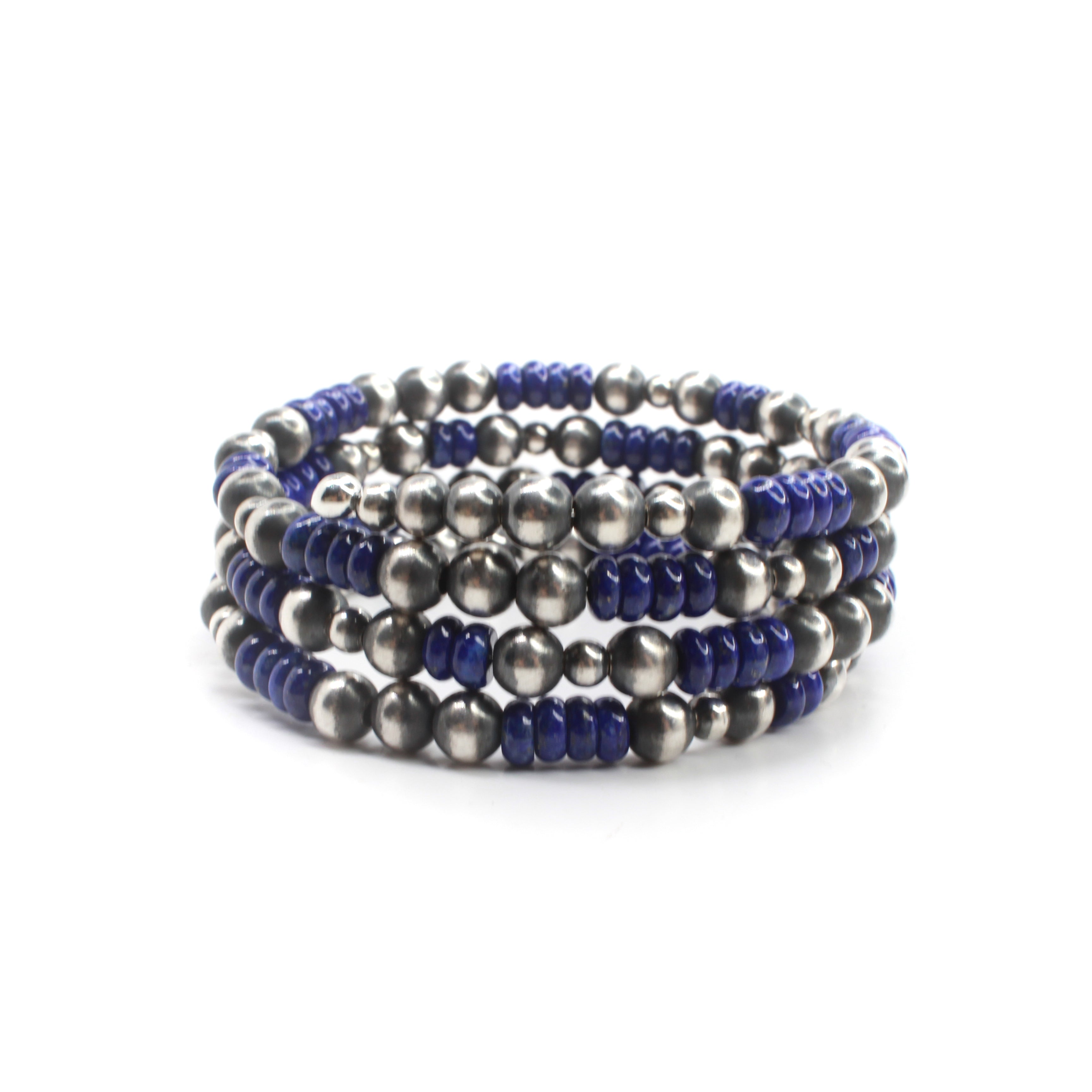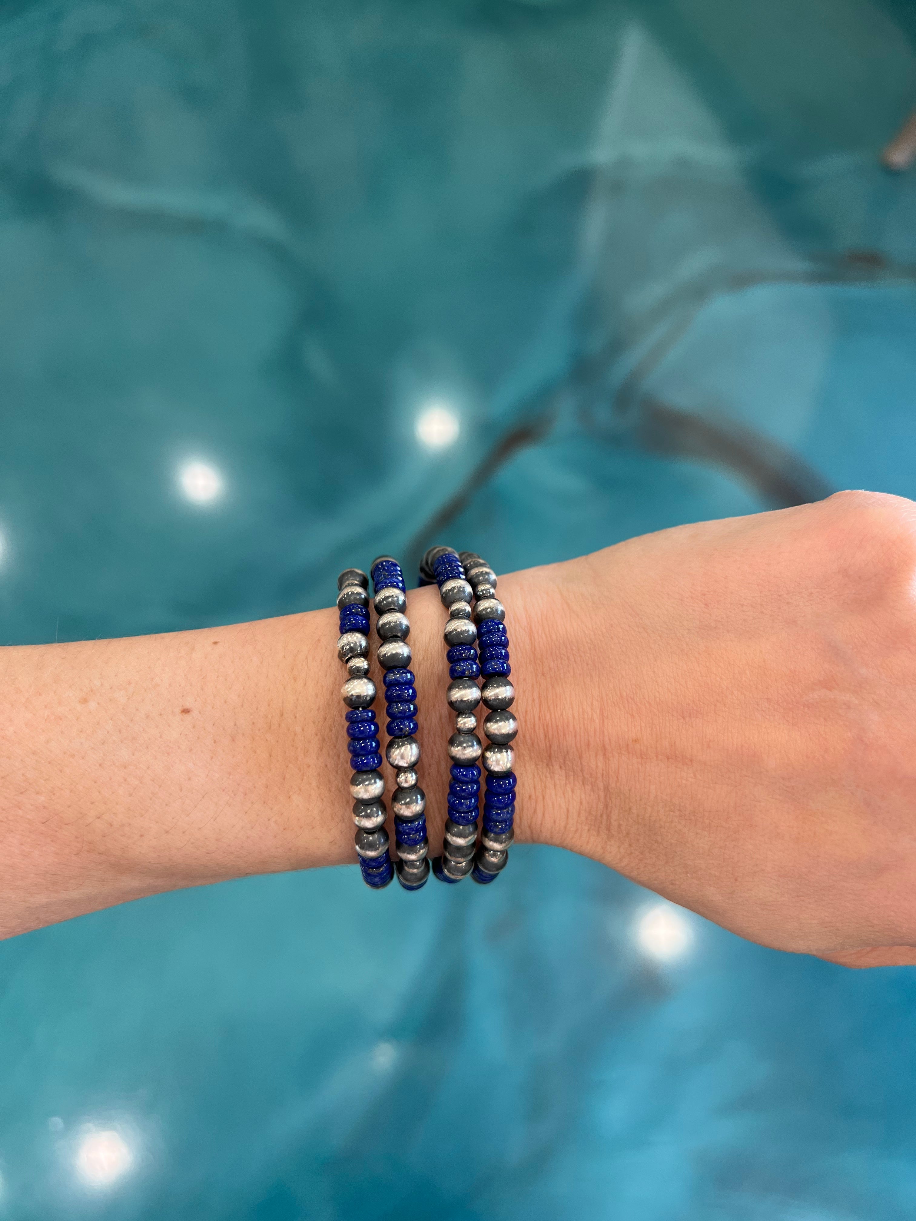 6mm Memory Wire Navajo Pearl Bracelet - Lapis