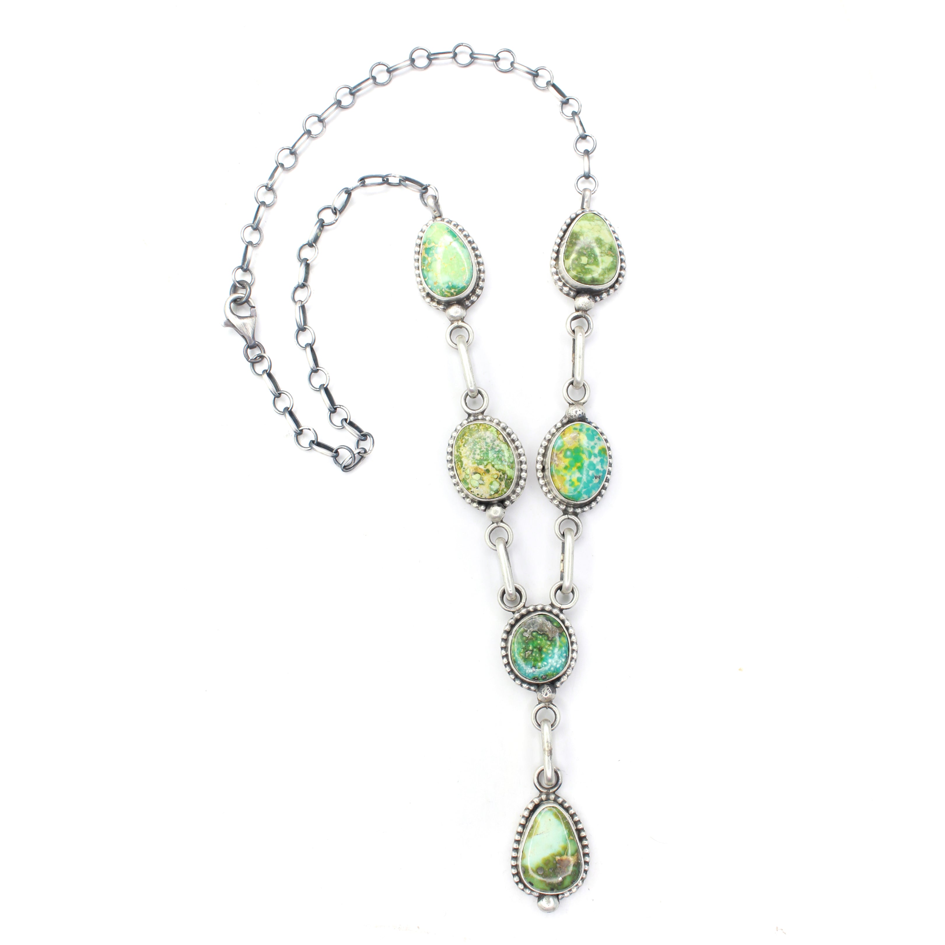 The 'end to end' length listed for Lariat necklaces is measured from clasp to hook and does not include the 'drop'. For a more accurate length reference, model photos are provided. Additionally, drop measurements are also included to give a complete view of the necklace's dimensions.