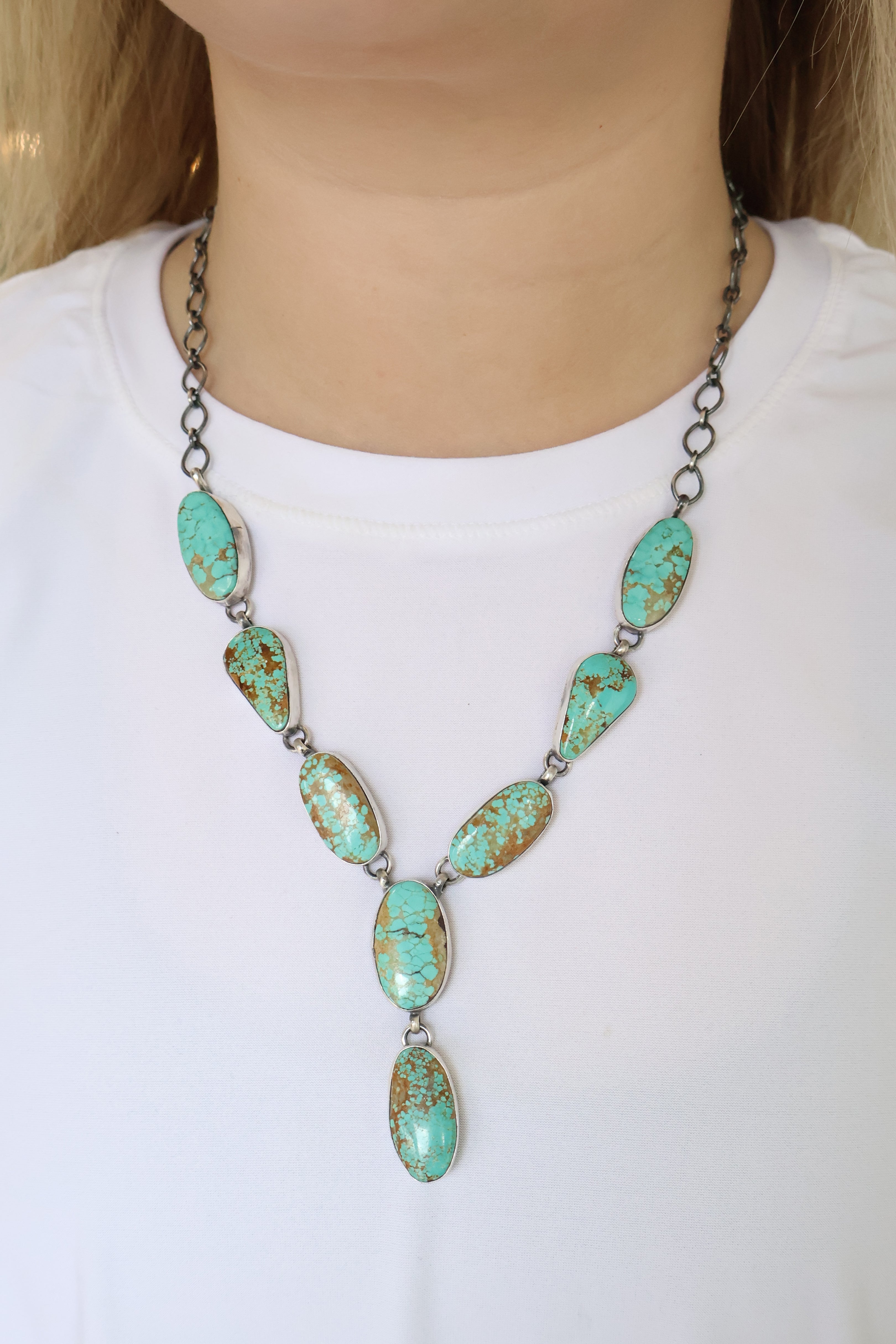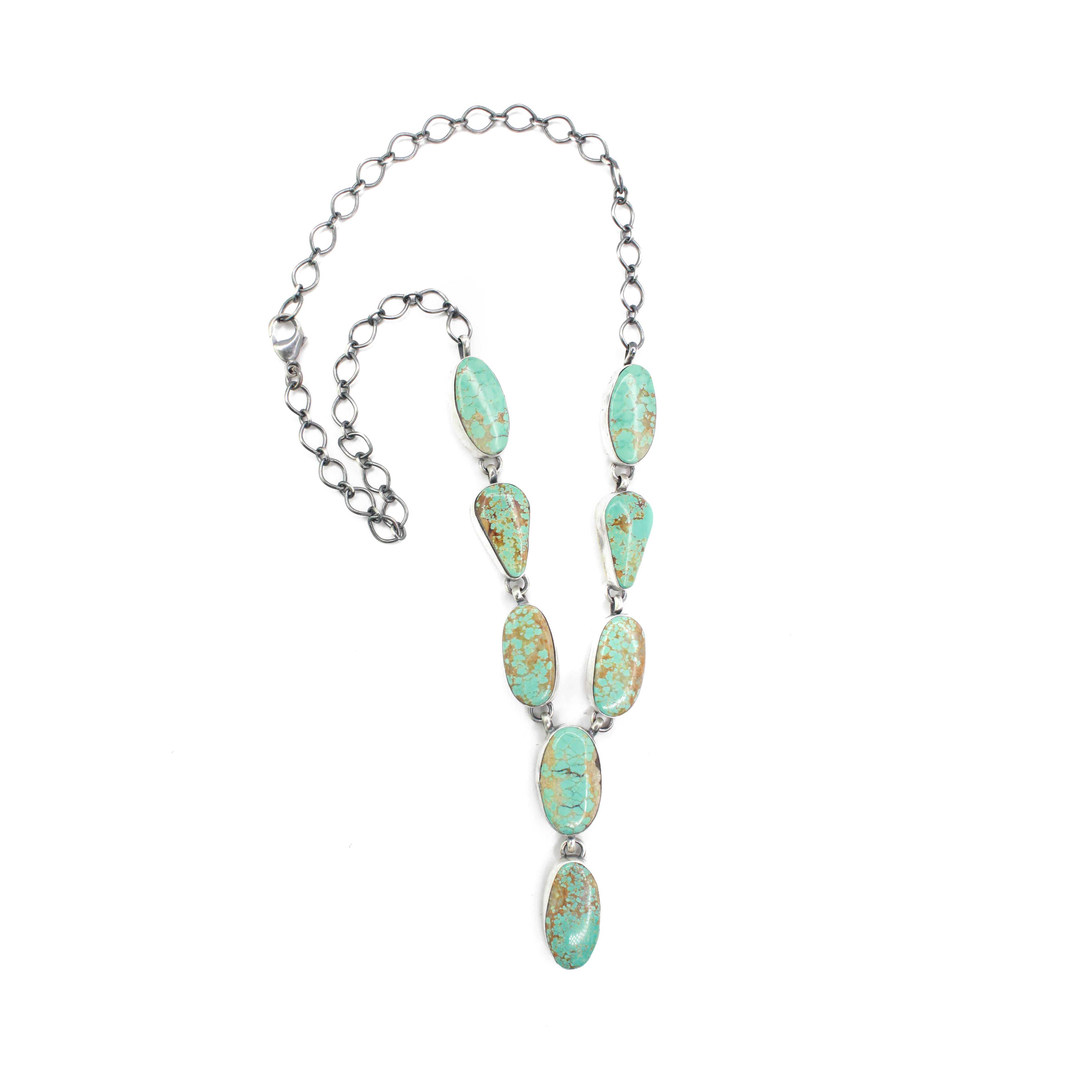 The Number Eight (Number 8 or #8) turquoise mine, located in Eureka County north of Carlin, Nevada, was discovered in 1925 and began mining operations in 1929. Currently, the mine is closed to turquoise extraction and is now primarily mined for gold. The color spectrum of Number 8 turquoise varies from very light blue to deep blue, with some pieces displaying interesting tints of green. Read More