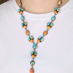 The 'end to end' length listed for Lariat necklaces is measured from clasp to hook and does not include the 'drop'. For a more accurate length reference, model photos are provided. Additionally, drop measurements are also included to give a complete view of the necklace's dimensions.