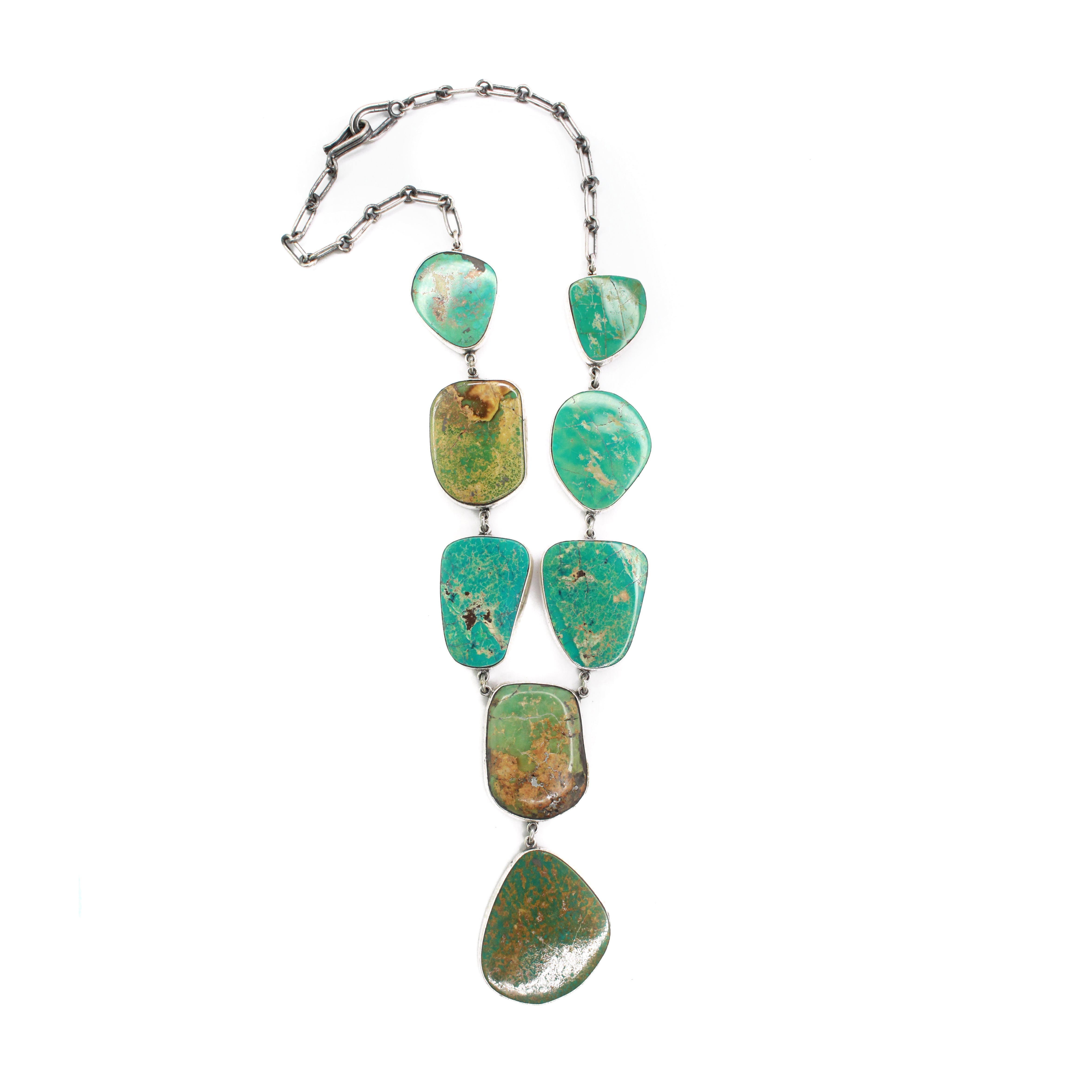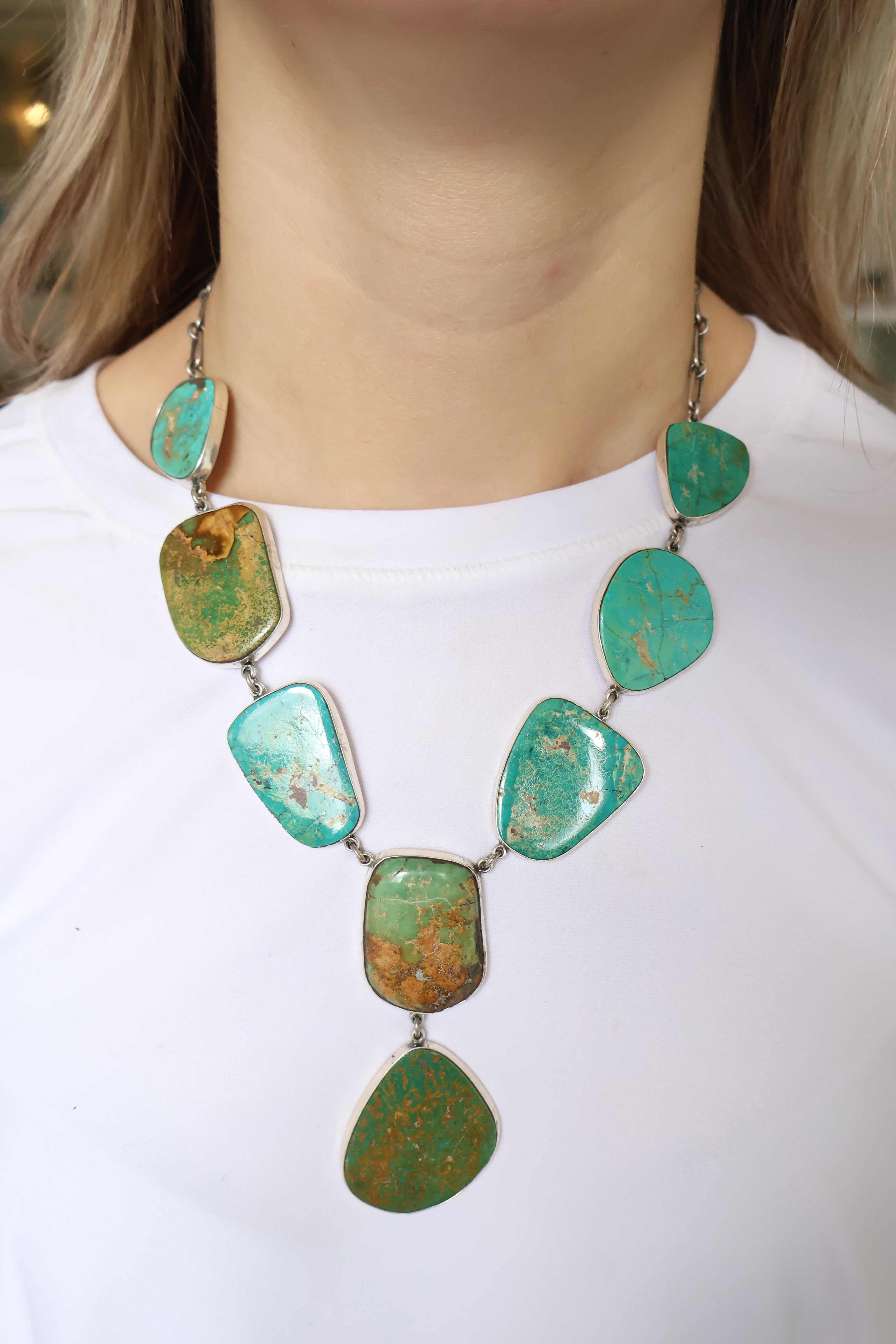 Royston Turquoise originates from the Royston mining district near Tonopah, Nevada, and has been mined since the early 1900s. This turquoise originally comprised four old claims located within the Royston range: Bunker Hill, Easter Blue, Oscar Wehrend, and Royal Blue. The Royston area is known for producing stunning turquoise in a range of colors, from deep sky blue to dark greens. Read More