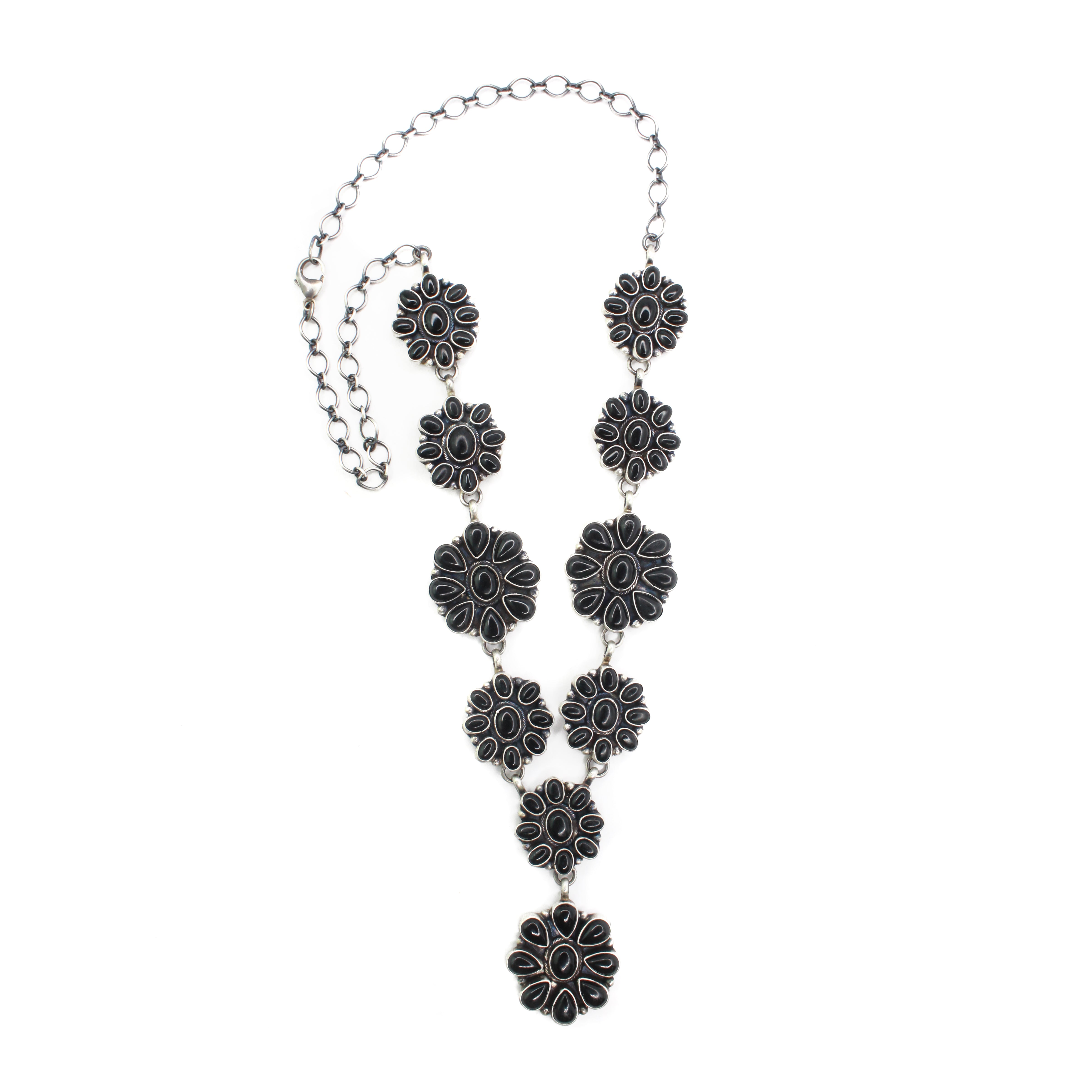 The 'end to end' length listed for Lariat necklaces is measured from clasp to hook and does not include the 'drop'. For a more accurate length reference, model photos are provided. Additionally, drop measurements are also included to give a complete view of the necklace's dimensions.