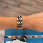 Akee Douglas, a skilled Navajo silversmith from Gallup, New Mexico, draws deeply from his cultural heritage and early exposure to Native American jewelry. His journey in silversmithing reflects a dedicated pursuit of excellence, resulting in finely crafted designs that honor traditional artistry. Known for his distinct style, Akee uses oxidized backgrounds to create bold contrasts that highlight the vibrant beauty of high-quality stones, showcasing his unique vision and reverence for his craft.