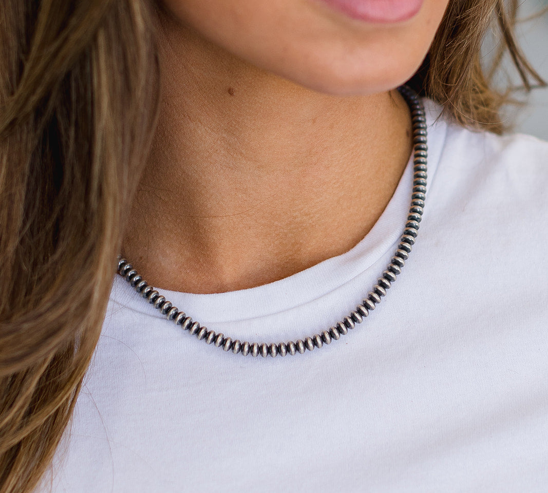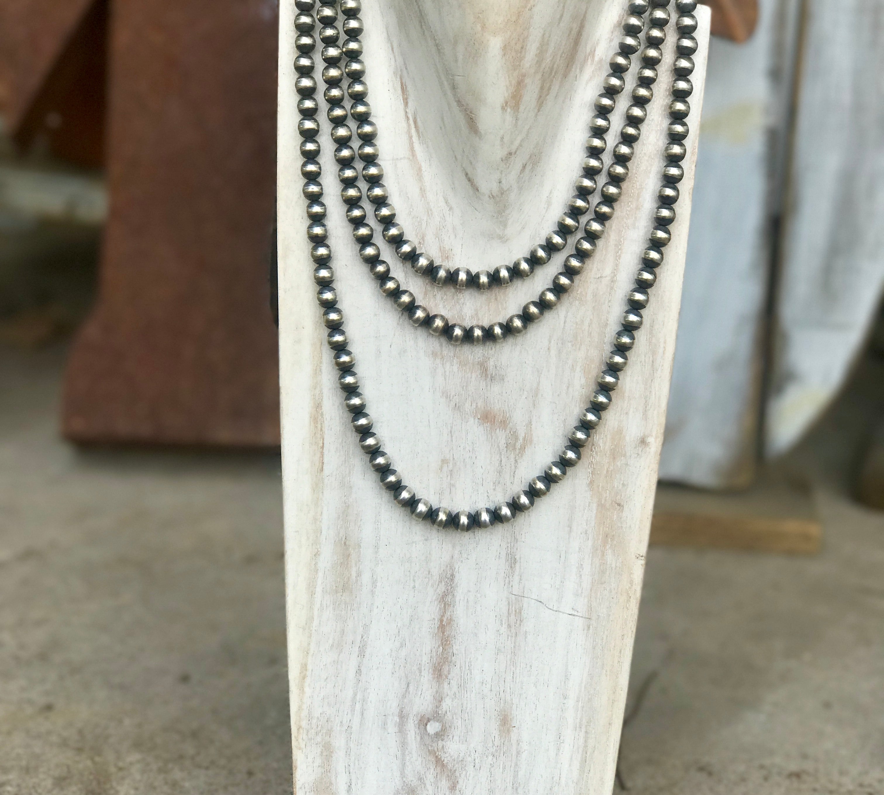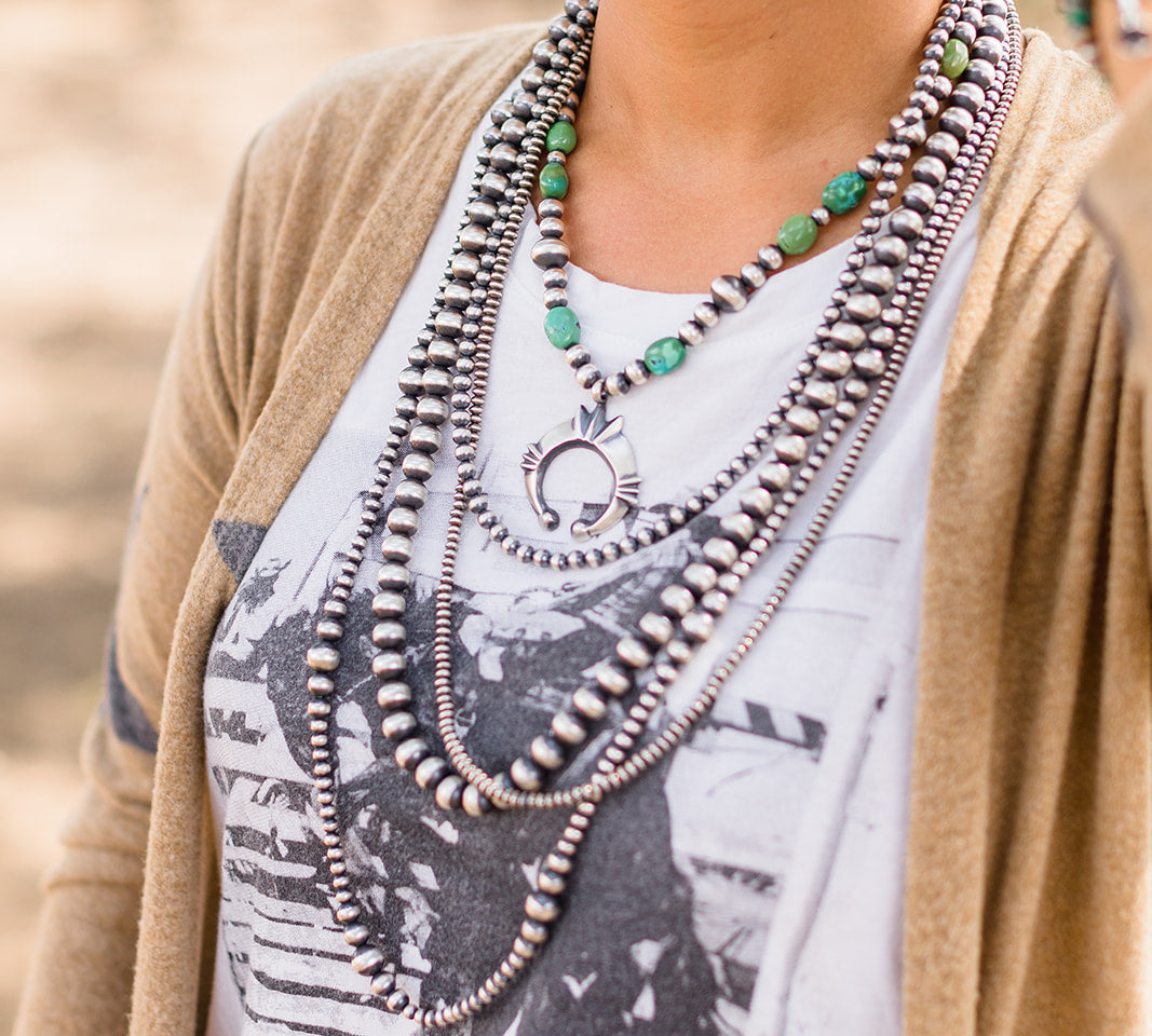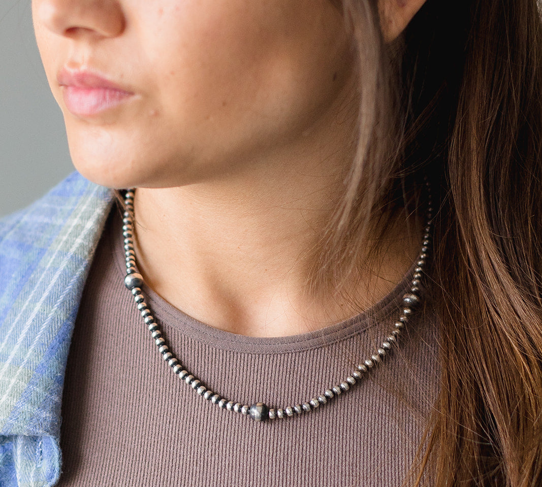 This collection features our machine-made sterling silver beads. Made with precision and care, our machine made beads offer exceptional quality and design. Each bead is carefully oxidized and polished, achieving a rich, lustrous finish that resembles the classic look of Navajo pearls, with a contemporary touch.