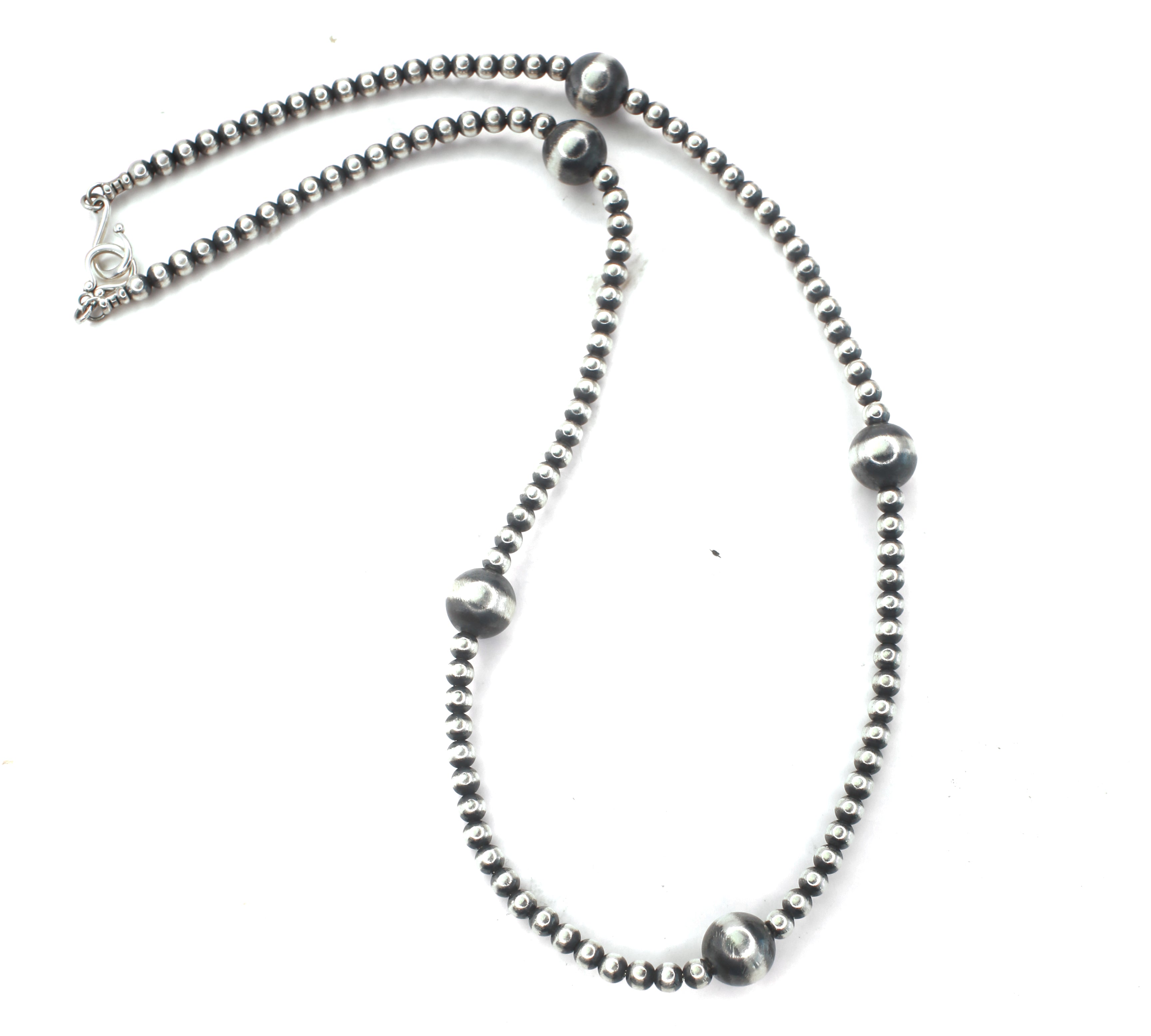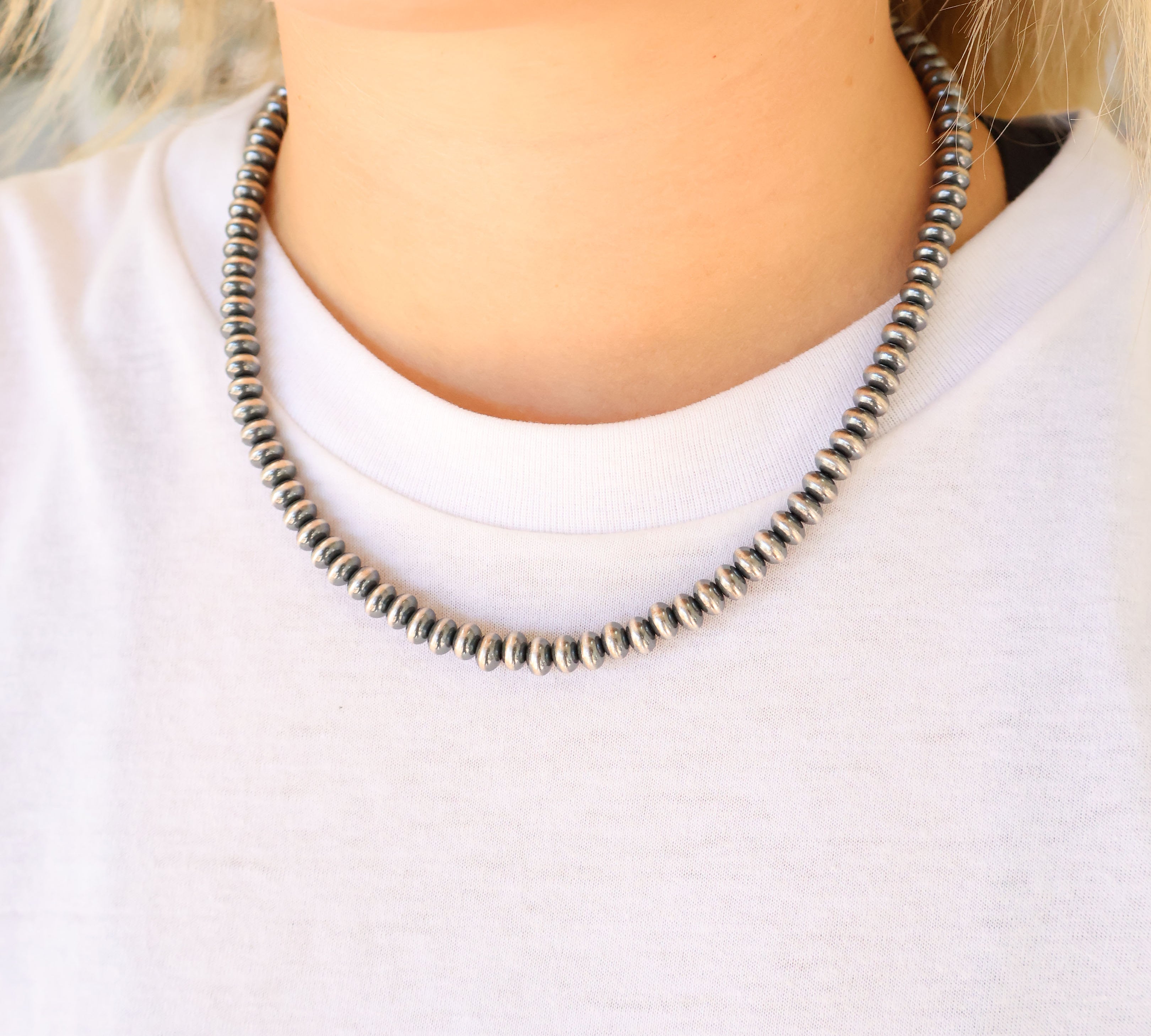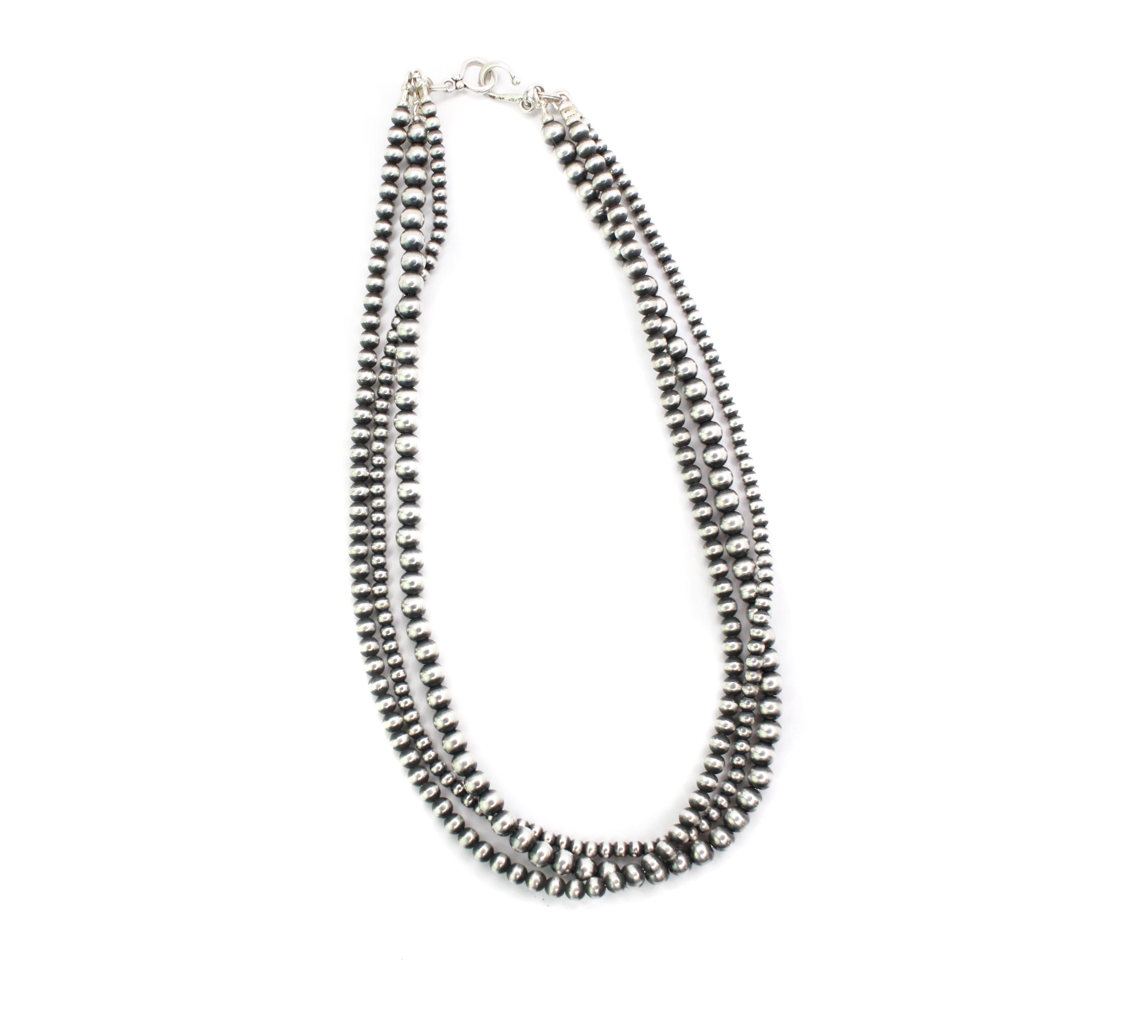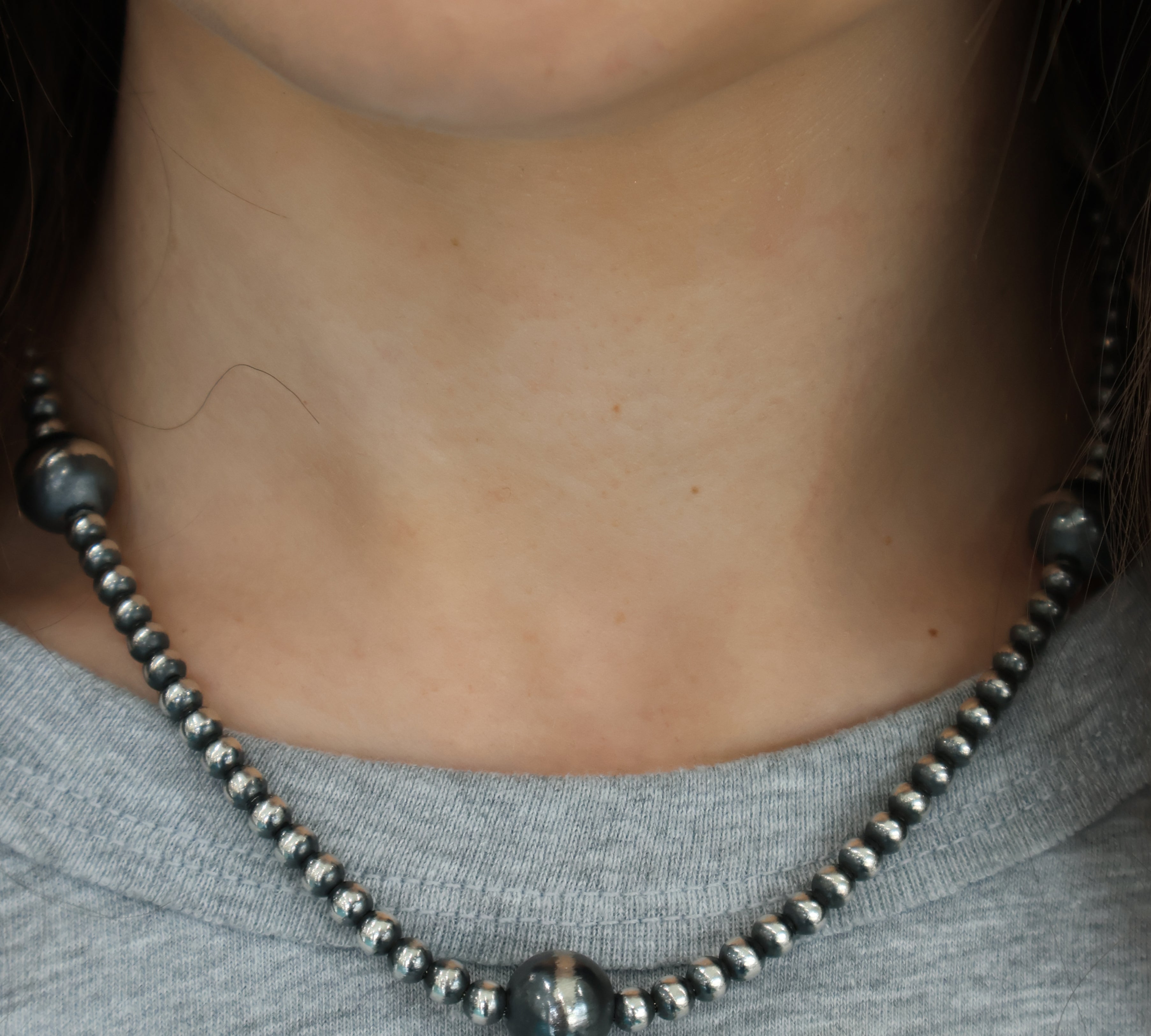 This collection features our machine-made sterling silver beads. Made with precision and care, our machine made beads offer exceptional quality and design. Each bead is carefully oxidized and polished, achieving a rich, lustrous finish that resembles the classic look of Navajo pearls, with a contemporary touch.