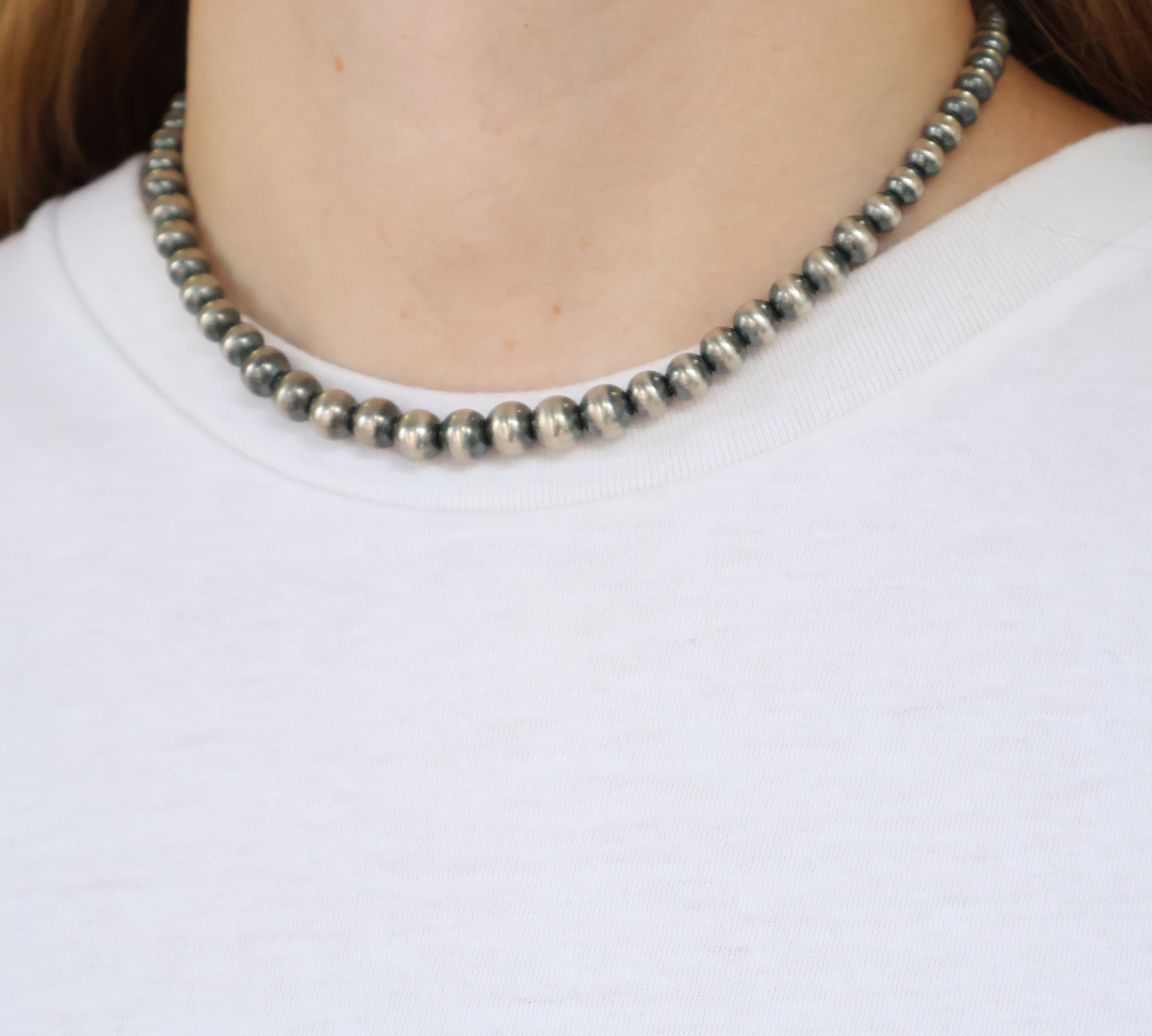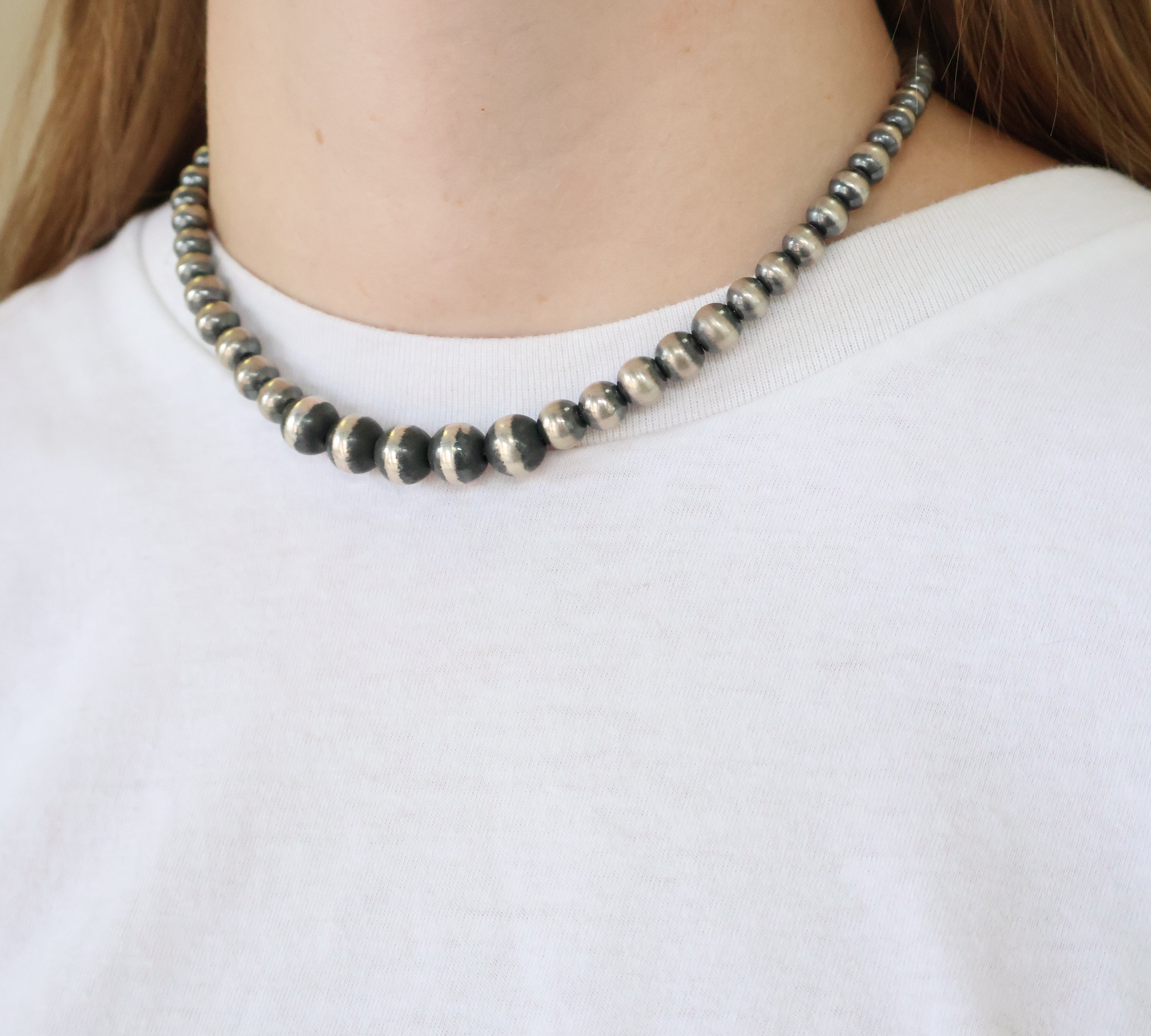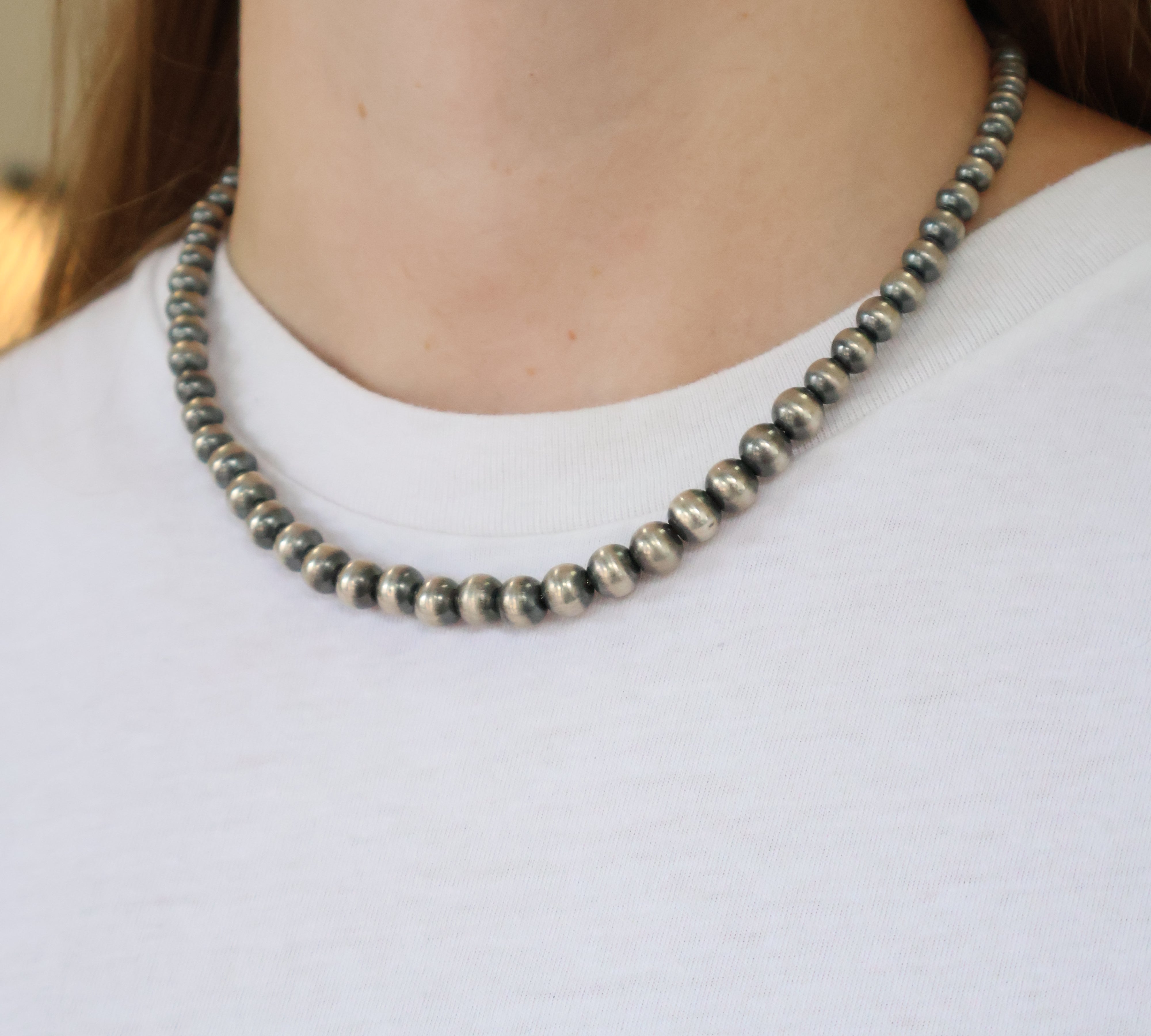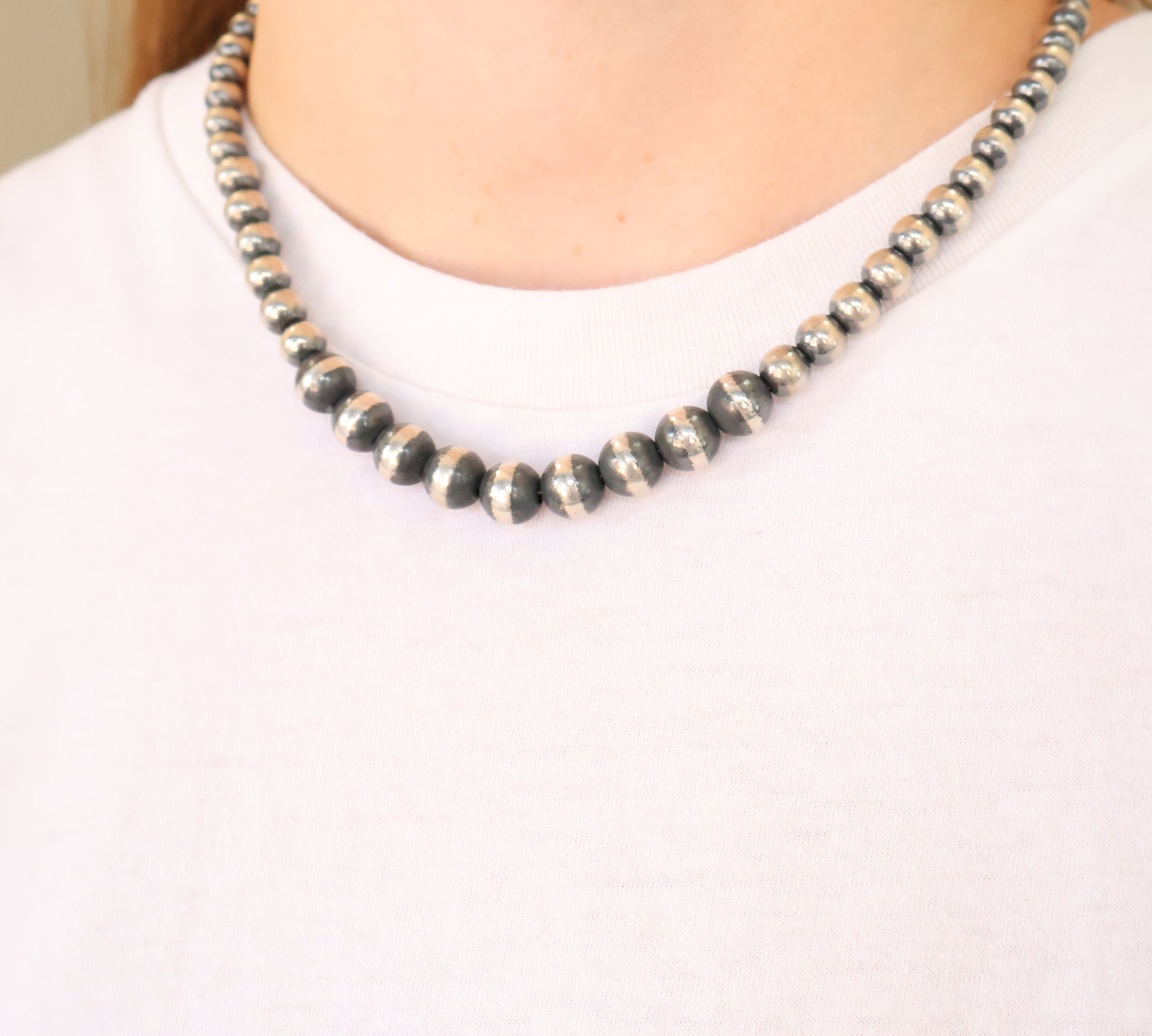 This collection features our machine-made sterling silver beads. Made with precision and care, our machine made beads offer exceptional quality and design. Each bead is carefully oxidized and polished, achieving a rich, lustrous finish that resembles the classic look of Navajo pearls, with a contemporary touch.