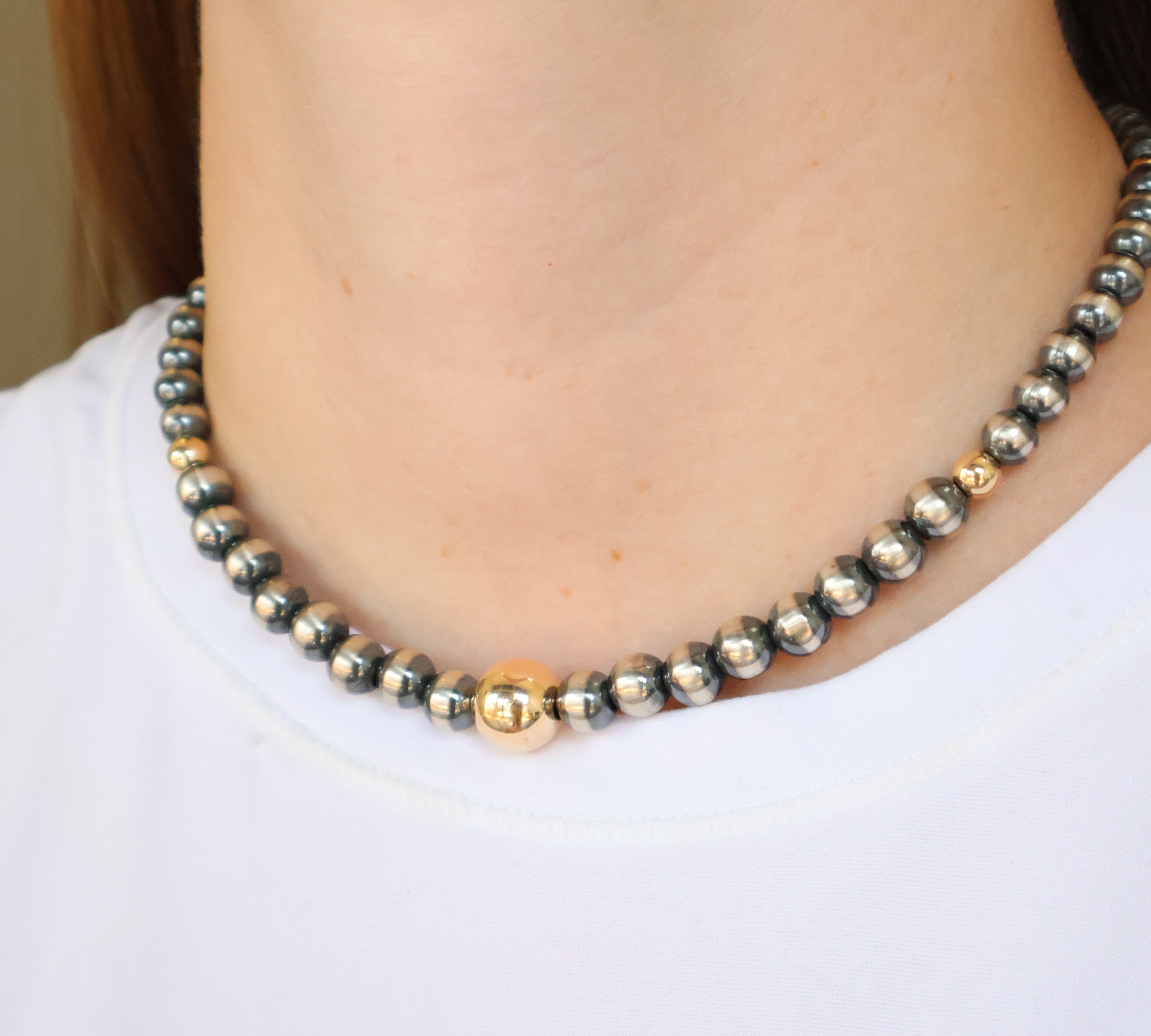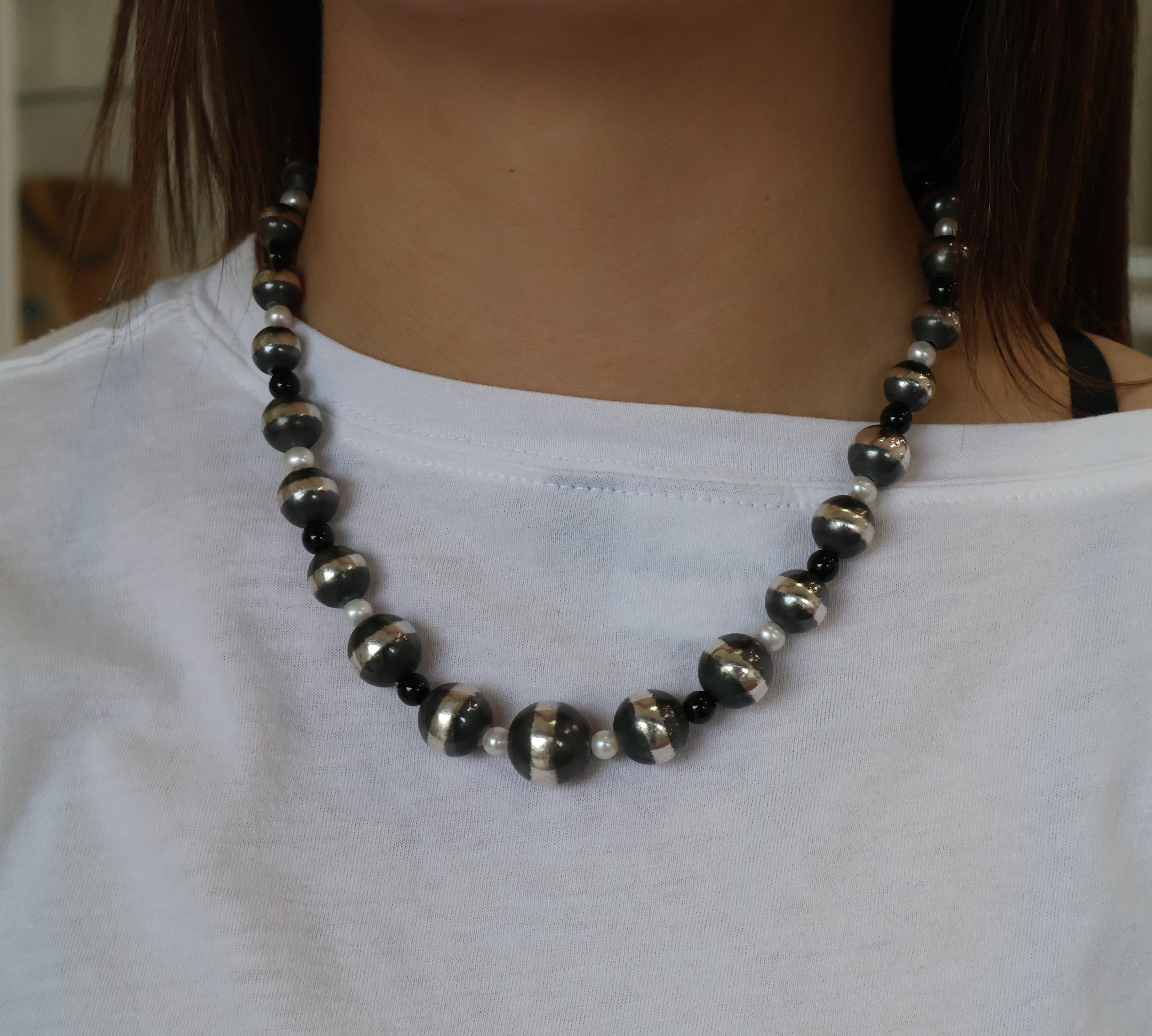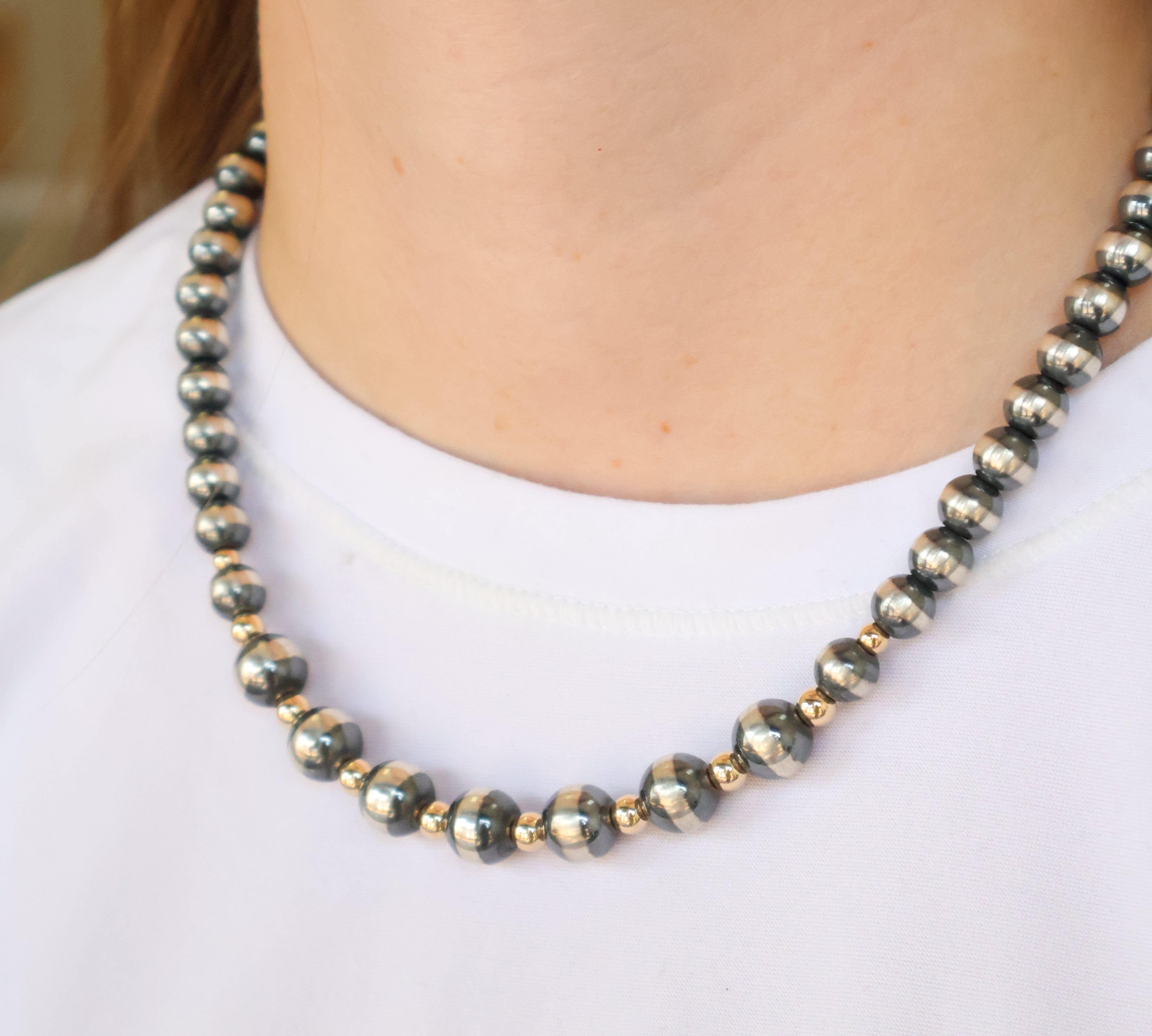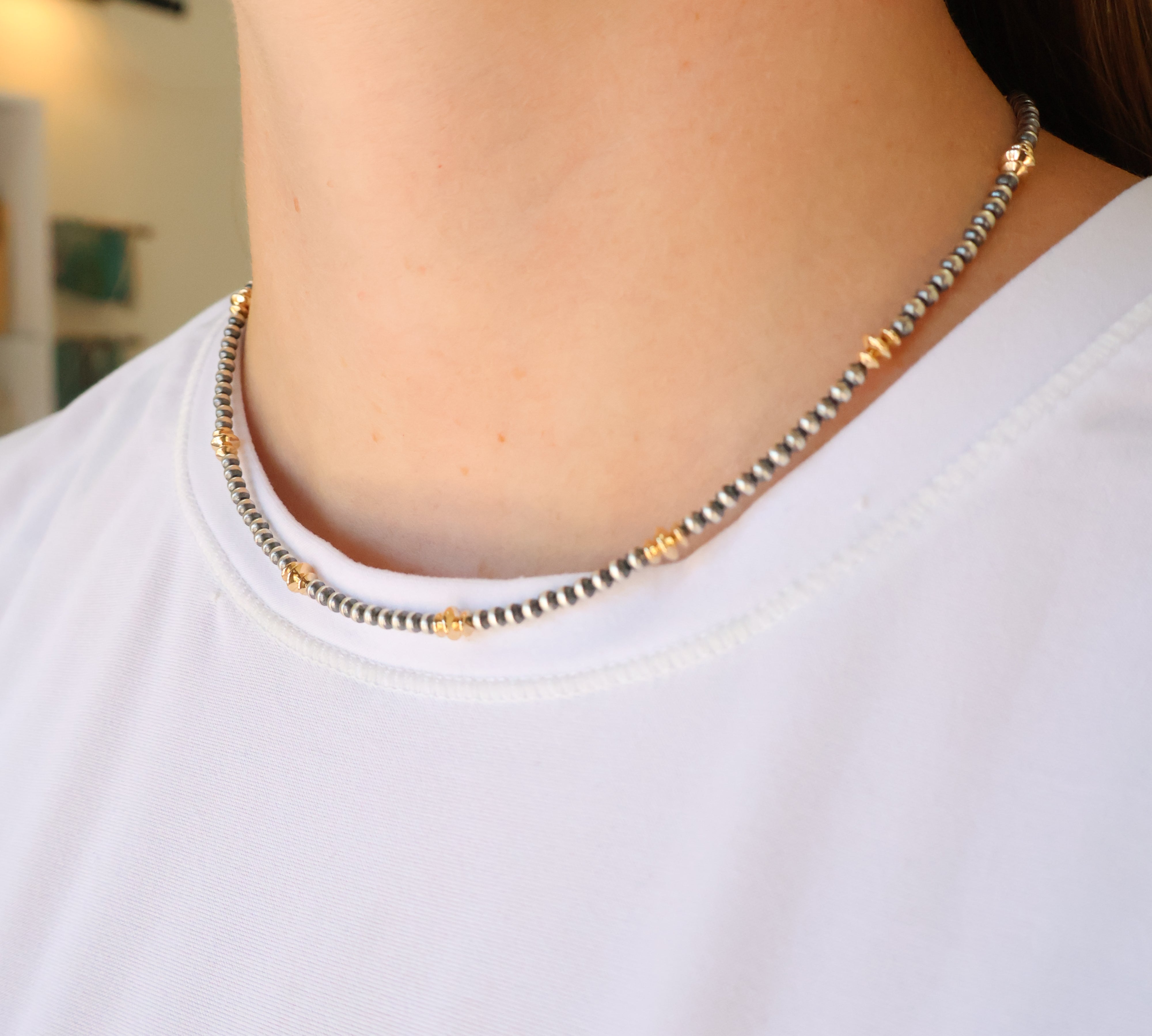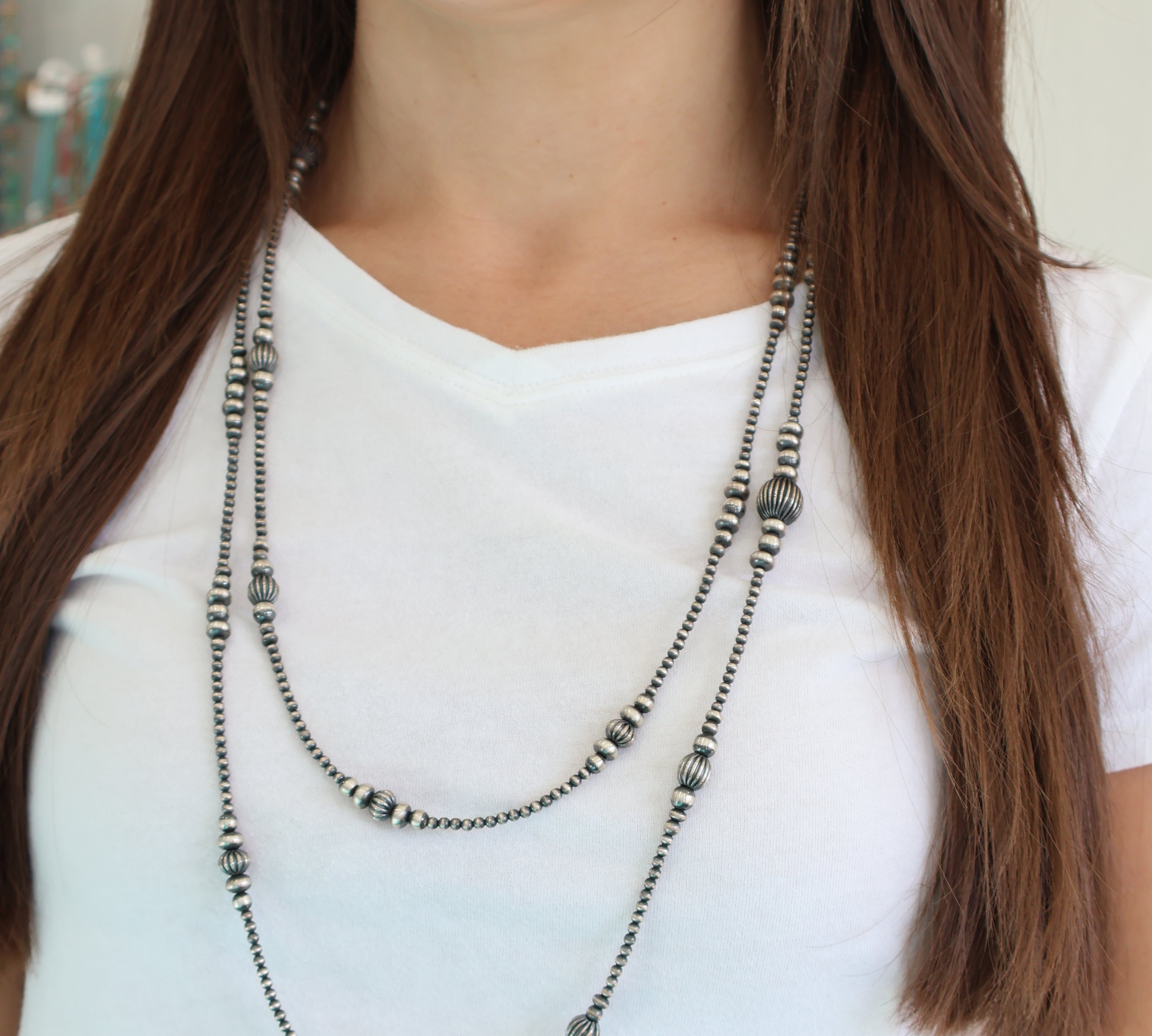 This collection features our machine-made sterling silver beads. Made with precision and care, our machine made beads offer exceptional quality and design. Each bead is carefully oxidized and polished, achieving a rich, lustrous finish that resembles the classic look of Navajo pearls, with a contemporary touch.