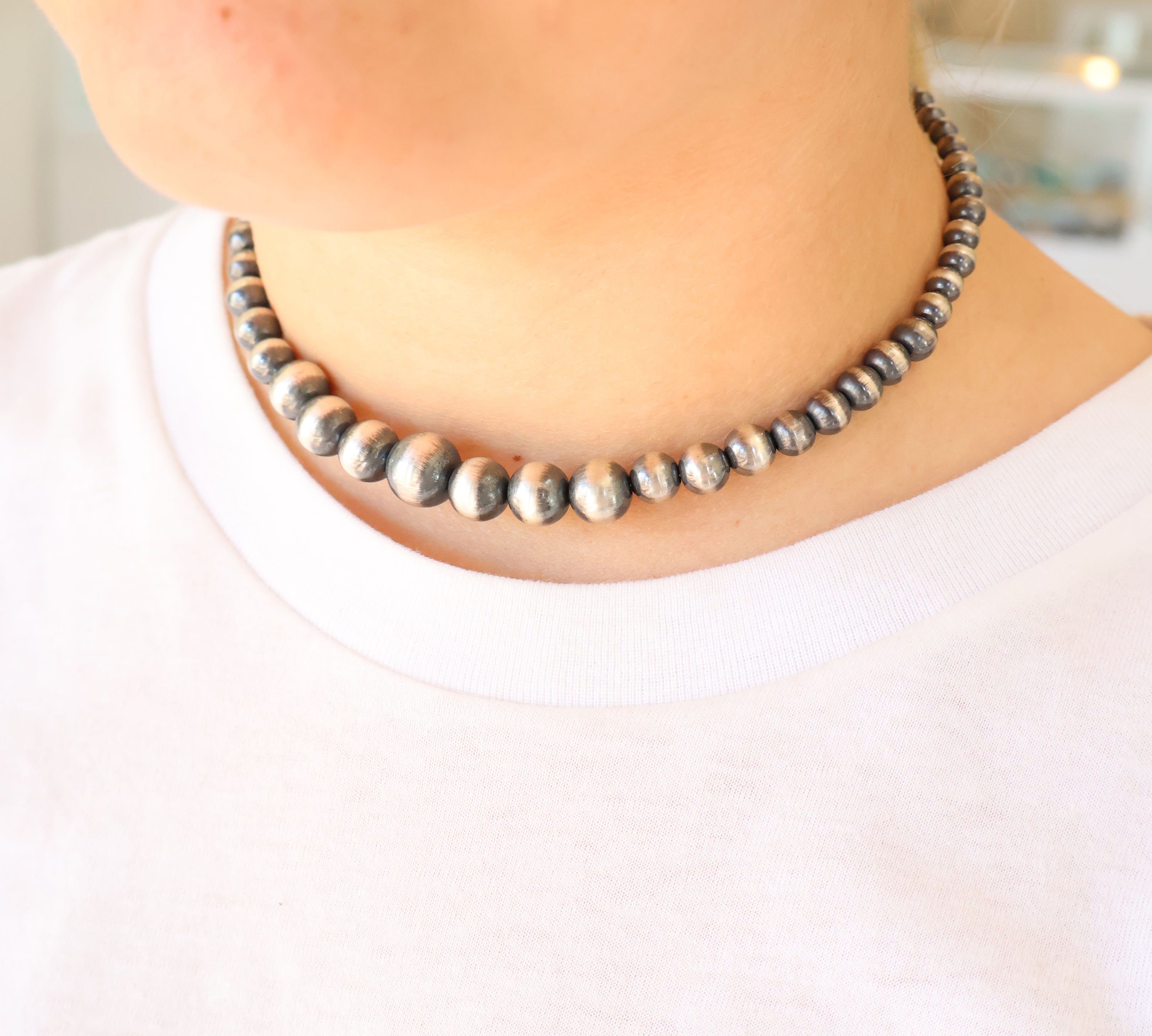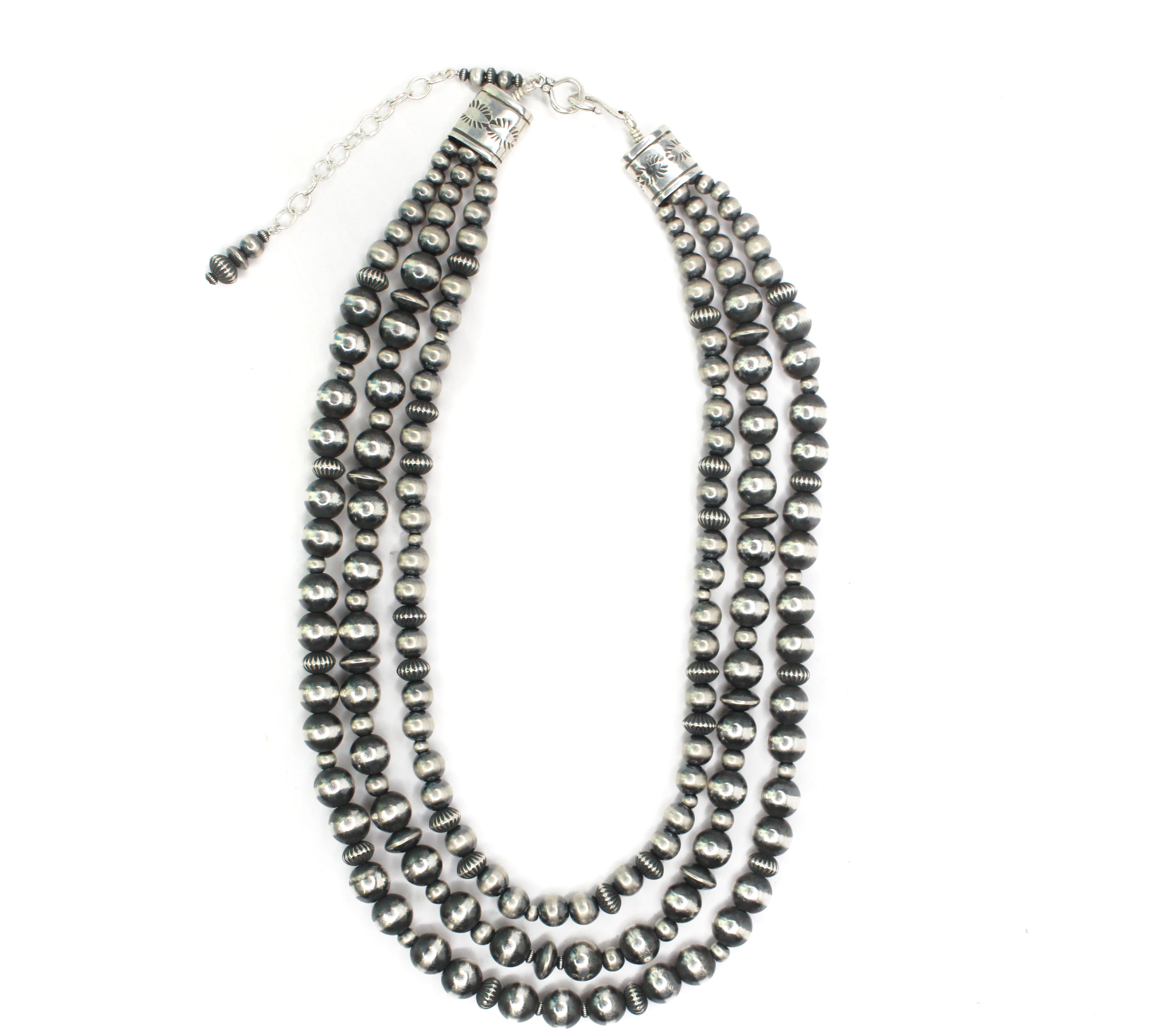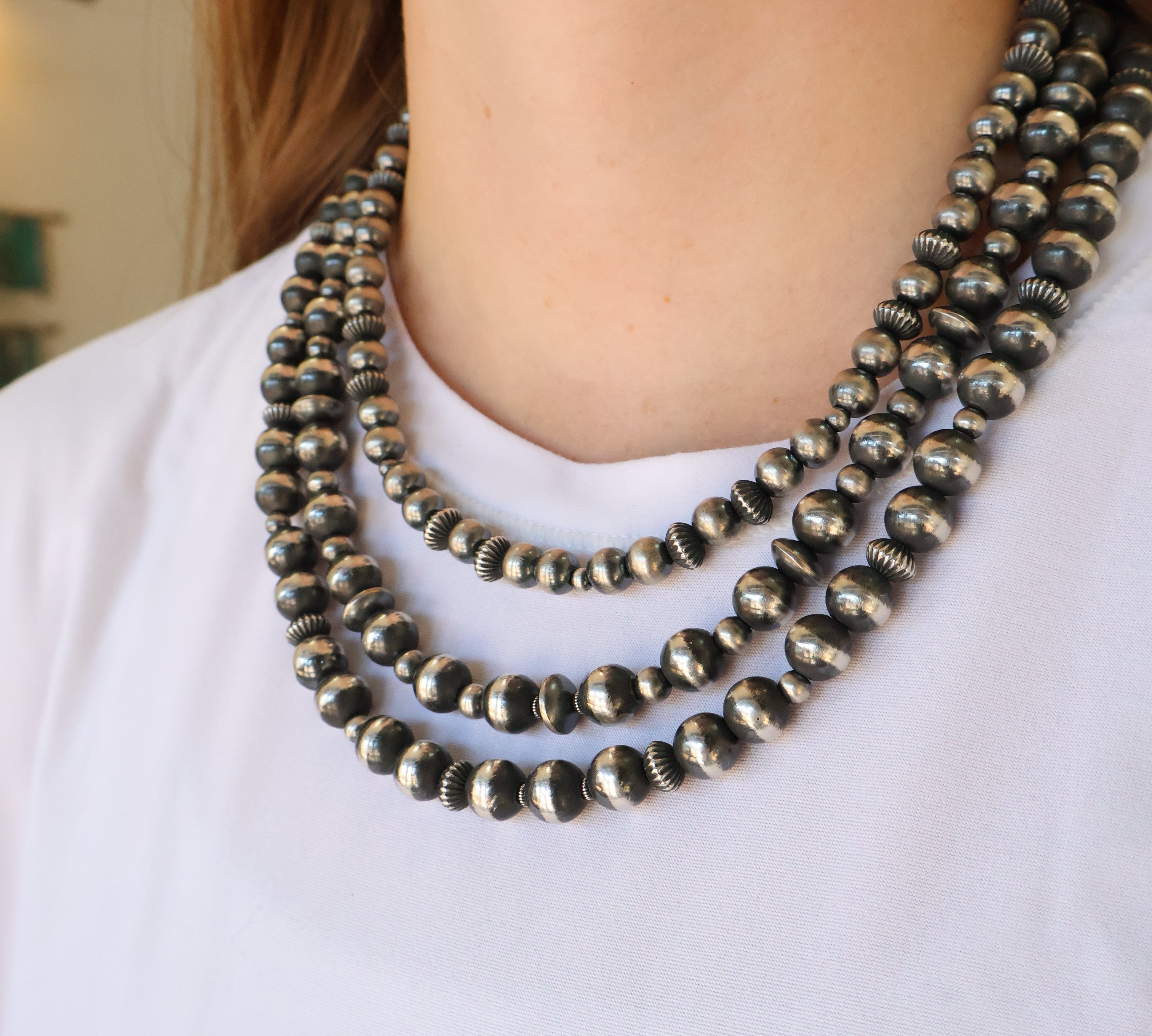 This collection features our machine-made sterling silver beads. Made with precision and care, our machine made beads offer exceptional quality and design. Each bead is carefully oxidized and polished, achieving a rich, lustrous finish that resembles the classic look of Navajo pearls, with a contemporary touch.