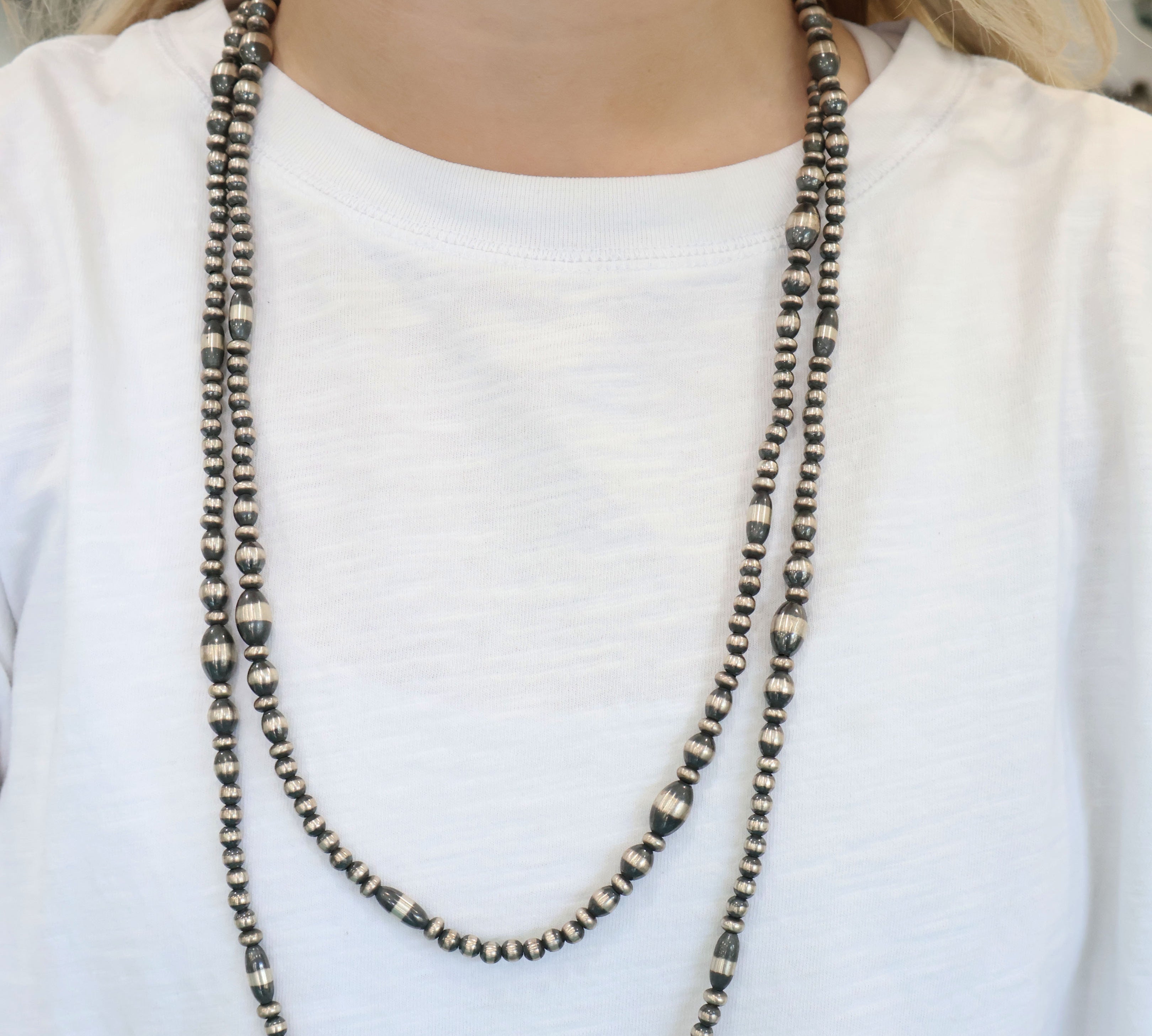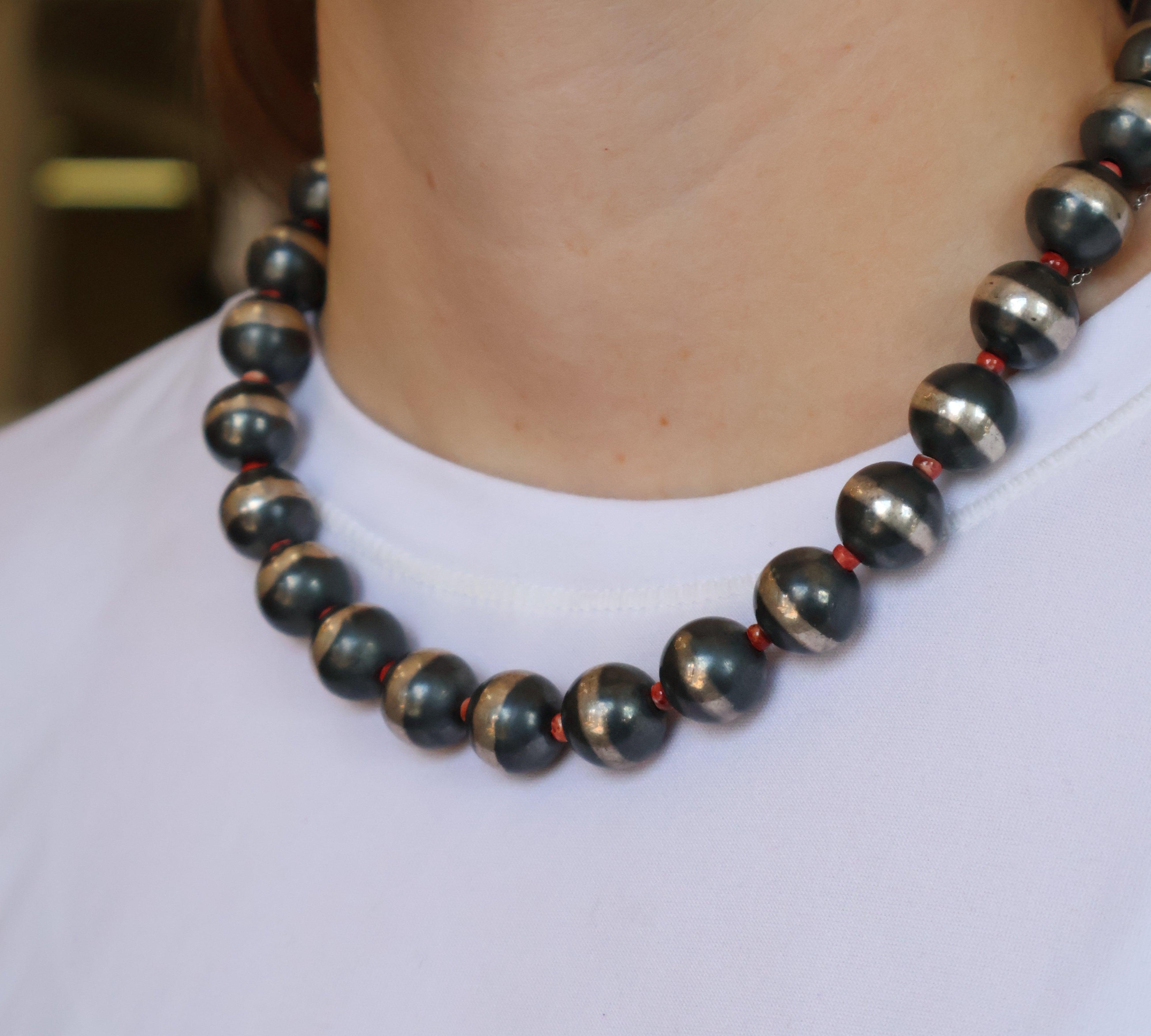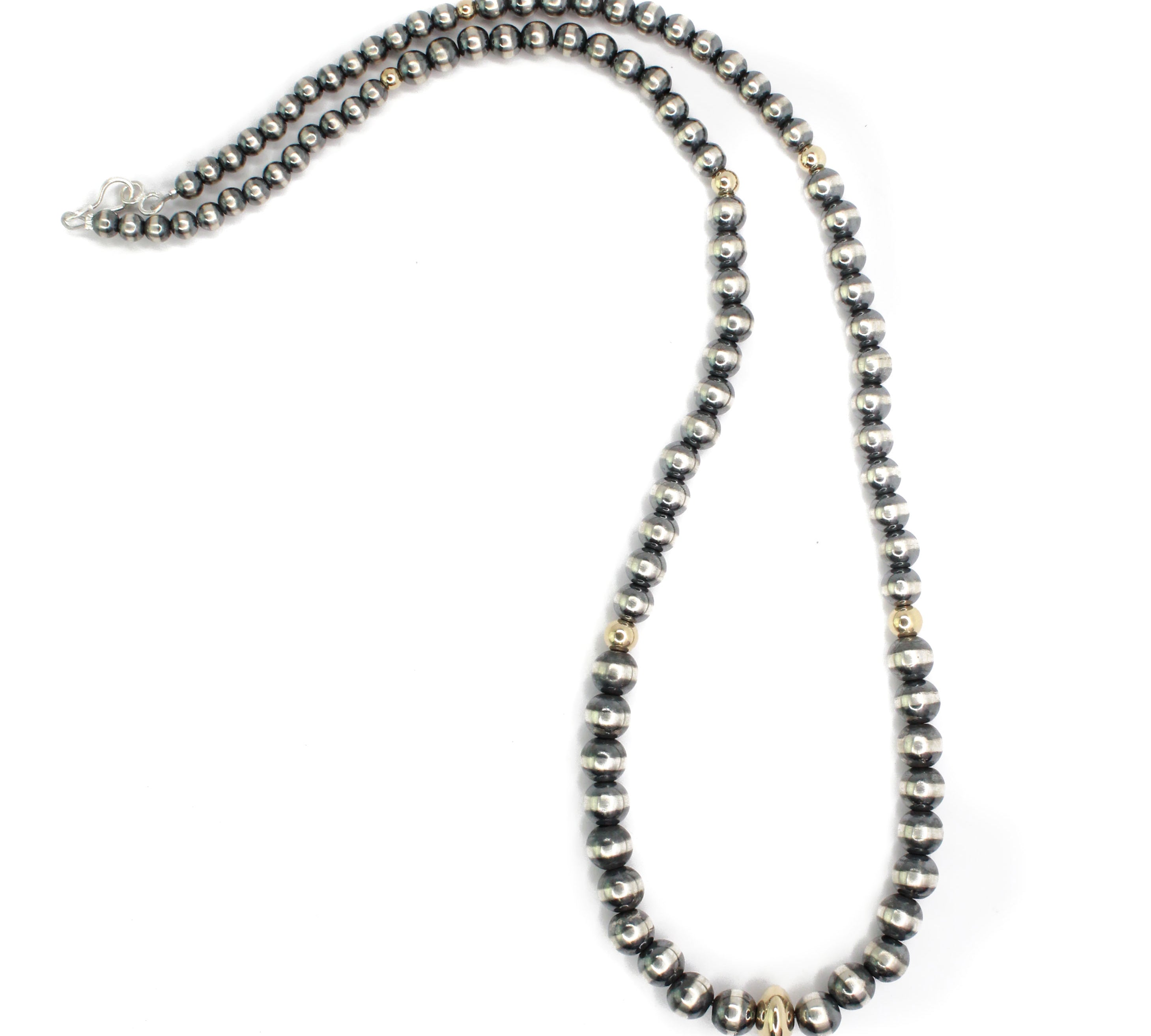 This collection features our machine-made sterling silver beads. Made with precision and care, our machine made beads offer exceptional quality and design. Each bead is carefully oxidized and polished, achieving a rich, lustrous finish that resembles the classic look of Navajo pearls, with a contemporary touch.