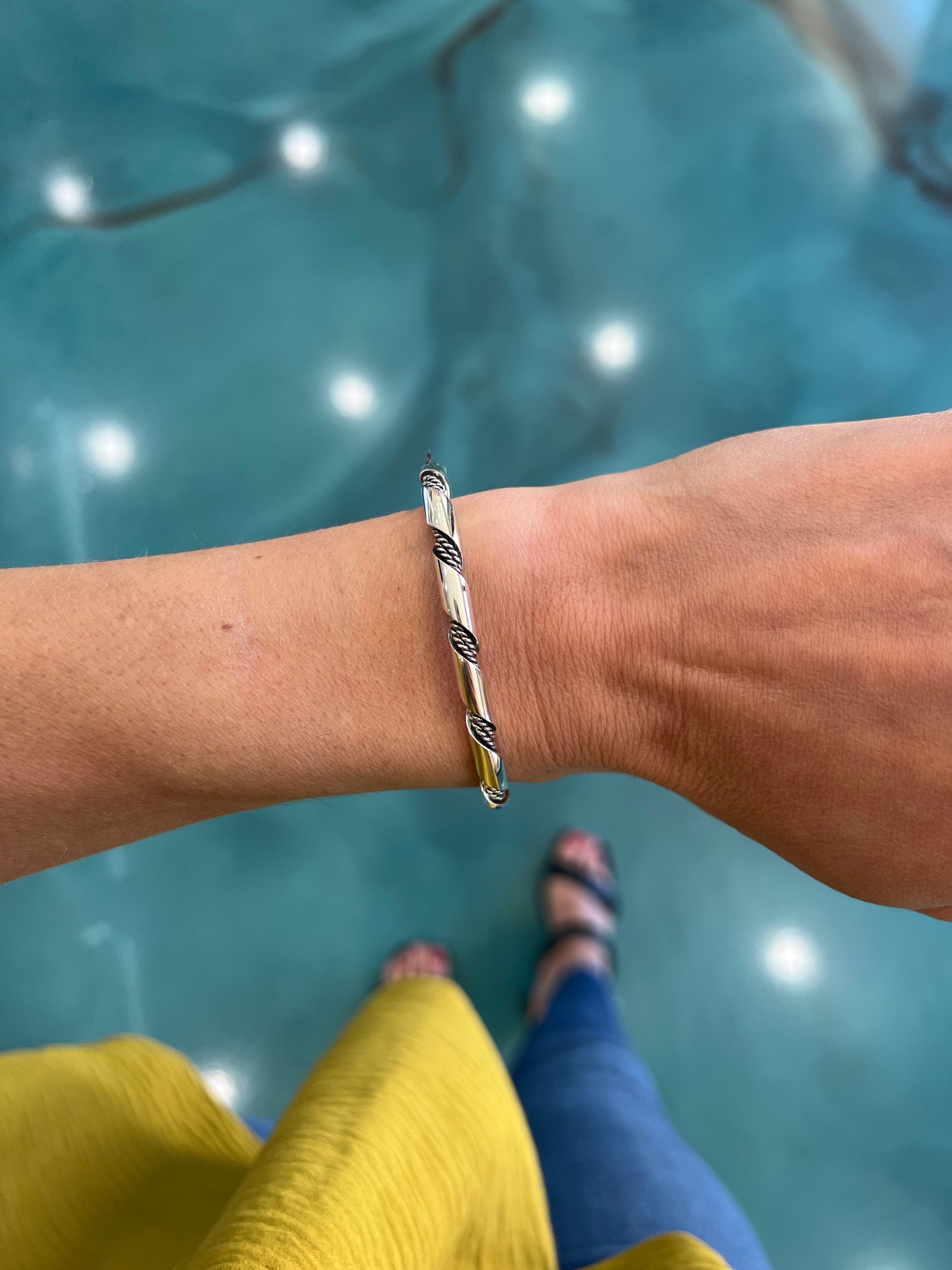 The Tahe name, originating from the Navajo community in Arizona, is linked to a variety of unique jewelry styles, with new interpretations emerging over time. Many pieces created under this name may come from artisans who are related to one another. The most prominent style features an array of wire types and metal sheets meticulously crafted into striking final products. This distinctive style resonates with both men and women; notable examples include a bracelet worn by Robert Redford in the film "The Horse Whisperer." Scroll down to explore examples of jewelry currently crafted by Elaine Tahe, who resides in New Mexico.