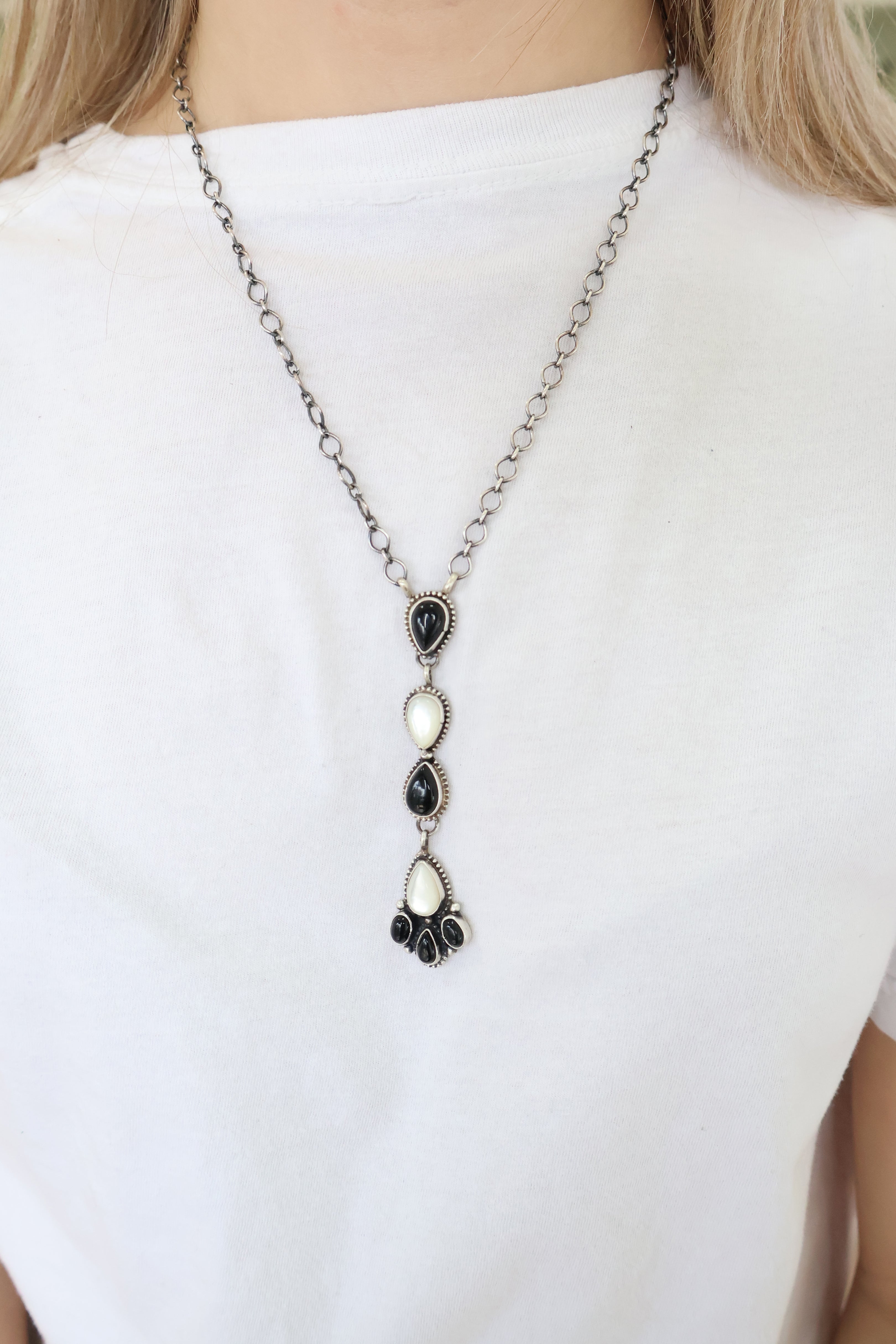 Mother of pearl, also known as nacre, is the iridescent inner layer of certain mollusk shells, such as oysters and abalones. It is composed primarily of aragonite (a form of calcium carbonate) and conchiolin (a protein), giving it a smooth, lustrous appearance. The unique play of colors, ranging from white to various shades of pink, blue, and green, is due to the way light interacts with the layered structure. Native American culture views mother of pearl as a symbol of beauty, protection, and tranquility, which adds deeper meaning to the jewelry.
