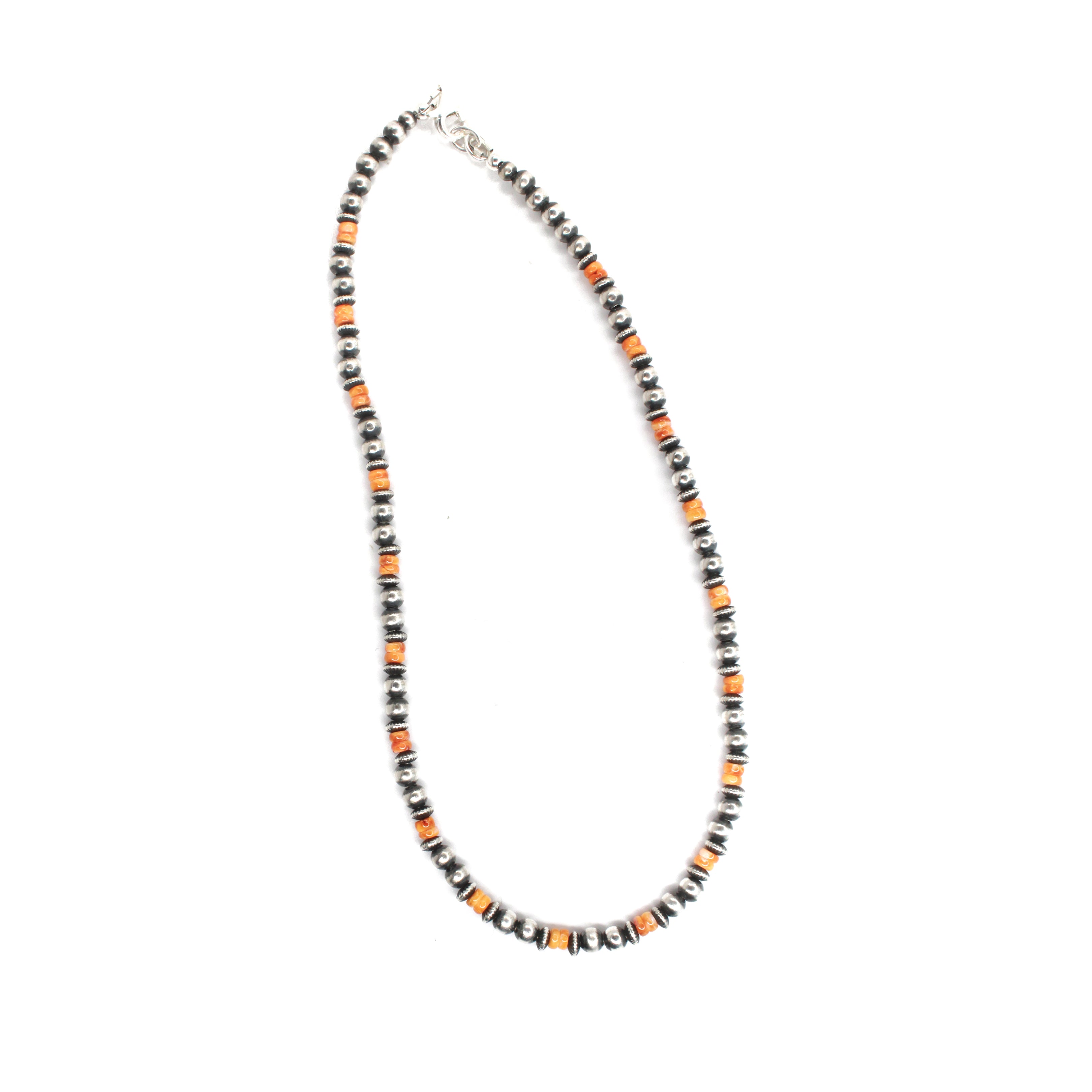 Navajo pearls by Marilyn Platero are a stunning blend of traditional style and contemporary craftsmanship. Known for her impeccable attention to detail, Marilyn strings her pearls on foxtail chain and finishes the ends with soldered clasps for added durability. Her use of machine-made beads provides a uniform and consistent appearance compared to handmade options. The use of machines also allows her to create pearls that range in size from 4mm. Unlike other machine-made beads, Marilyn's have a substantial weight and feel, adding to their quality and appearance. Her beads are oxidized and buffed by hand by Navajo artist Bronson Belone.