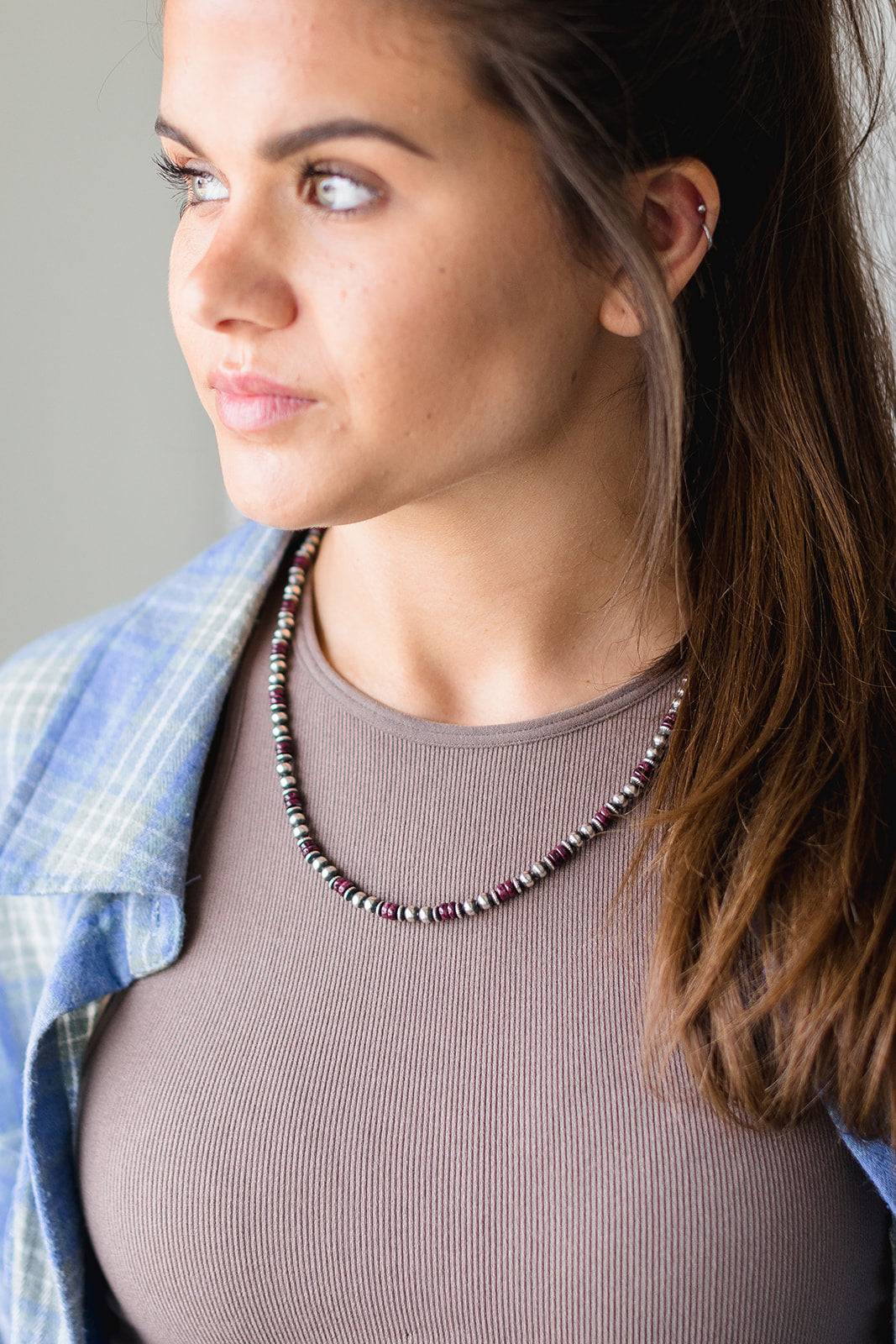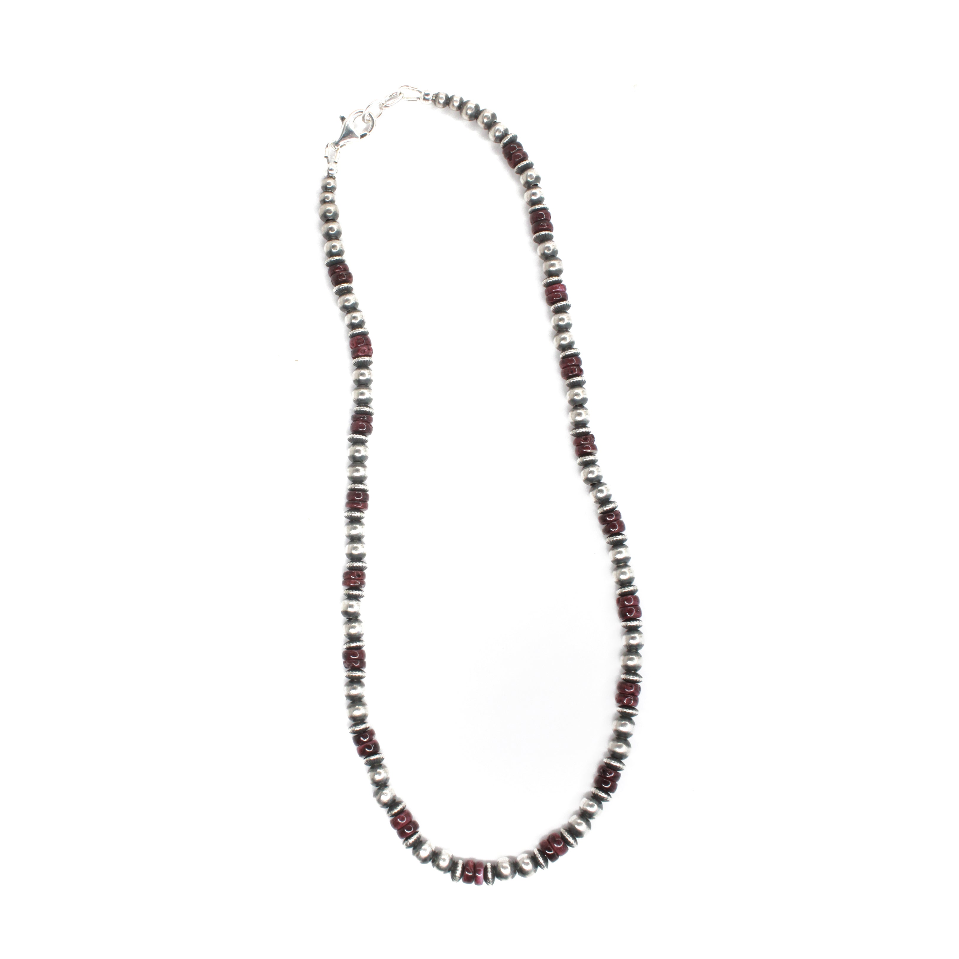 Navajo pearls by Marilyn Platero are a stunning blend of traditional style and contemporary craftsmanship. Known for her impeccable attention to detail, Marilyn strings her pearls on foxtail chain and finishes the ends with soldered clasps for added durability. Her use of machine-made beads provides a uniform and consistent appearance compared to handmade options. The use of machines also allows her to create pearls that range in size from 4mm. Unlike other machine-made beads, Marilyn's have a substantial weight and feel, adding to their quality and appearance. Her beads are oxidized and buffed by hand by Navajo artist Bronson Belone.