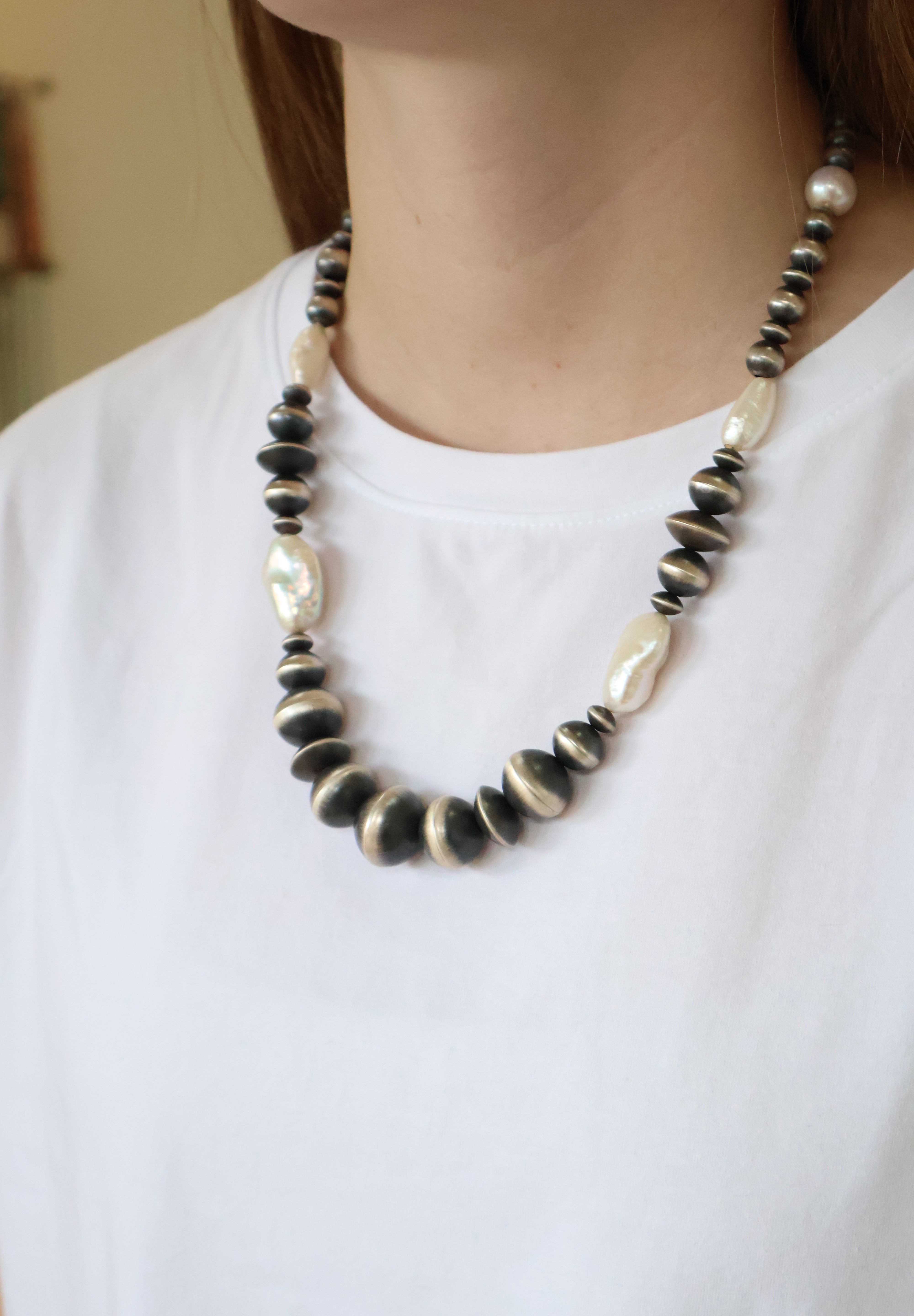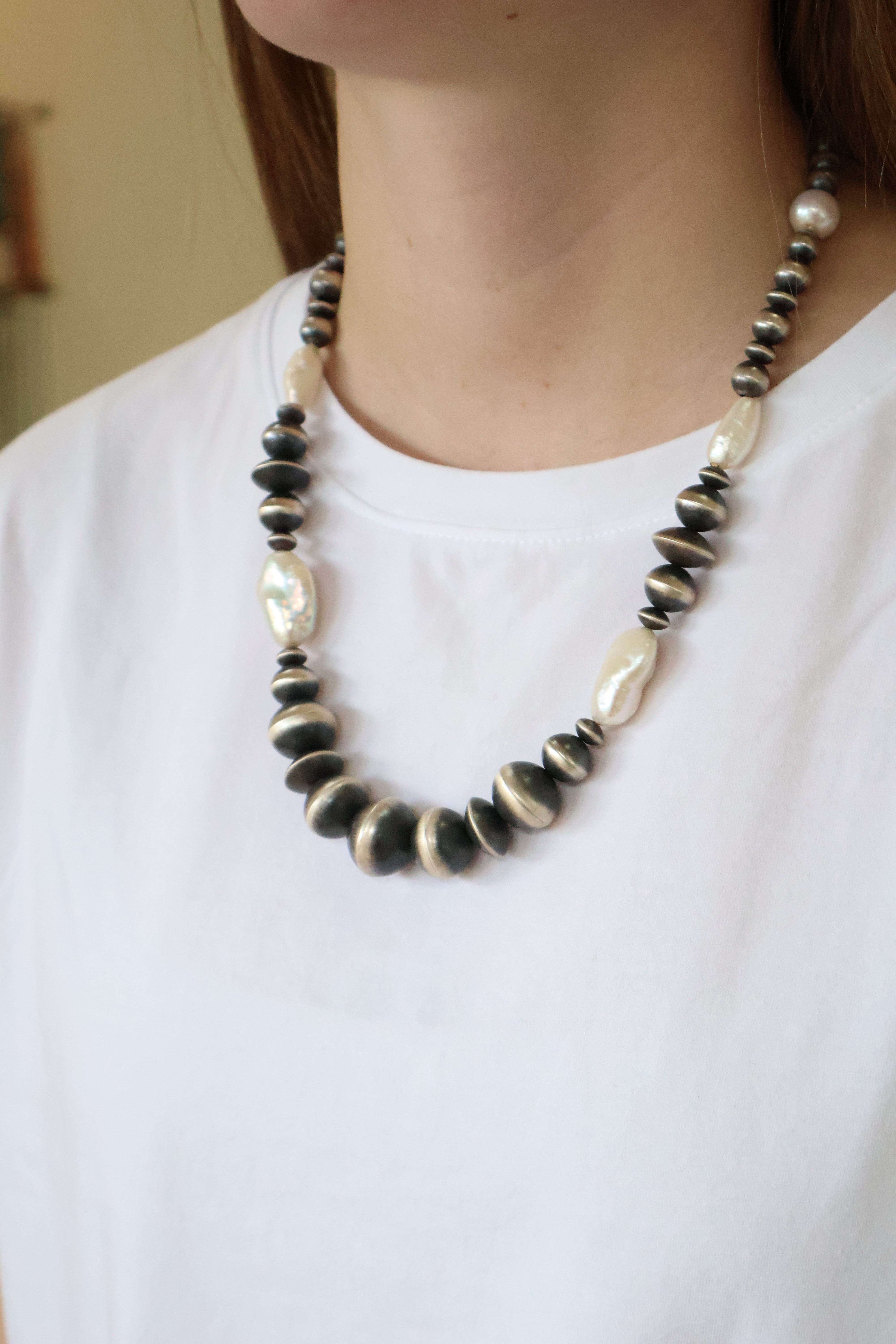 Creating hand-rolled silver beads is a celebrated tradition among Navajo silversmiths and an icon of Navajo jewelry. Handmade beads are meticulously crafted, with each bead being the result of an extremely labor-intensive process. These beads are shaped by hand using tools such as hammers, pliers, and files. The lengthy process includes melting, rolling, cutting, shaping, soldering & filing each sterling silver bead by BY HAND. This meticulous time honored method is a highly skilled trade that few artists have mastered.