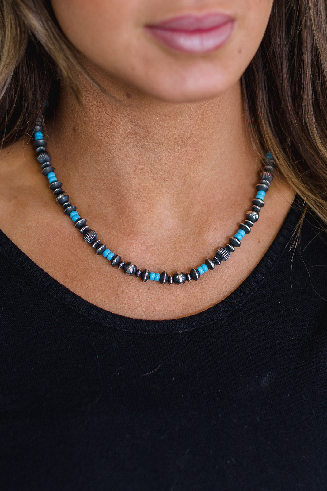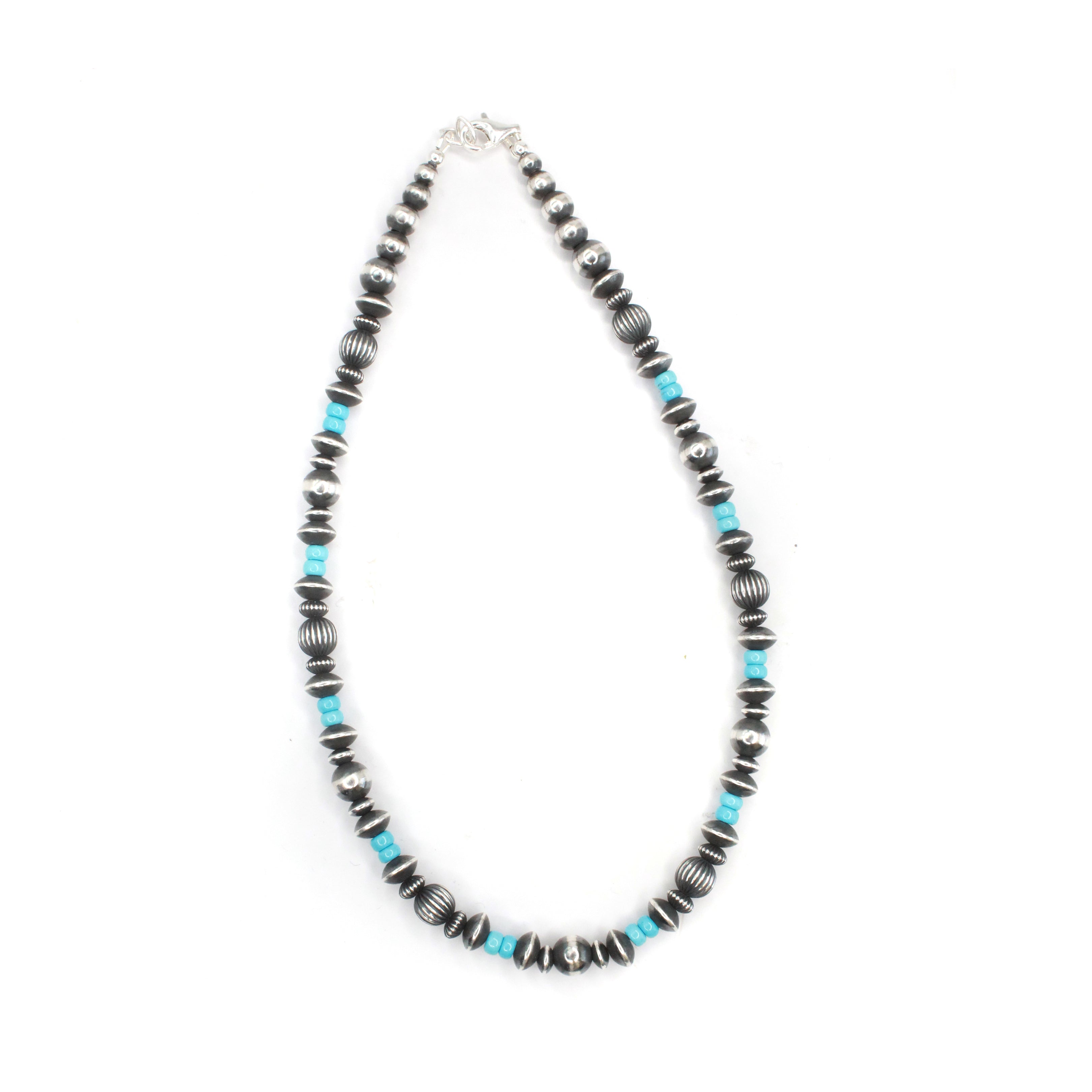 Navajo pearls by Marilyn Platero are a stunning blend of traditional style and contemporary craftsmanship. Known for her impeccable attention to detail, Marilyn strings her pearls on foxtail chain and finishes the ends with soldered clasps for added durability. Her use of machine-made beads provides a uniform and consistent appearance compared to handmade options. The use of machines also allows her to create pearls that range in size from 4mm. Unlike other machine-made beads, Marilyn's have a substantial weight and feel, adding to their quality and appearance. Her beads are oxidized and buffed by hand by Navajo artist Bronson Belone.