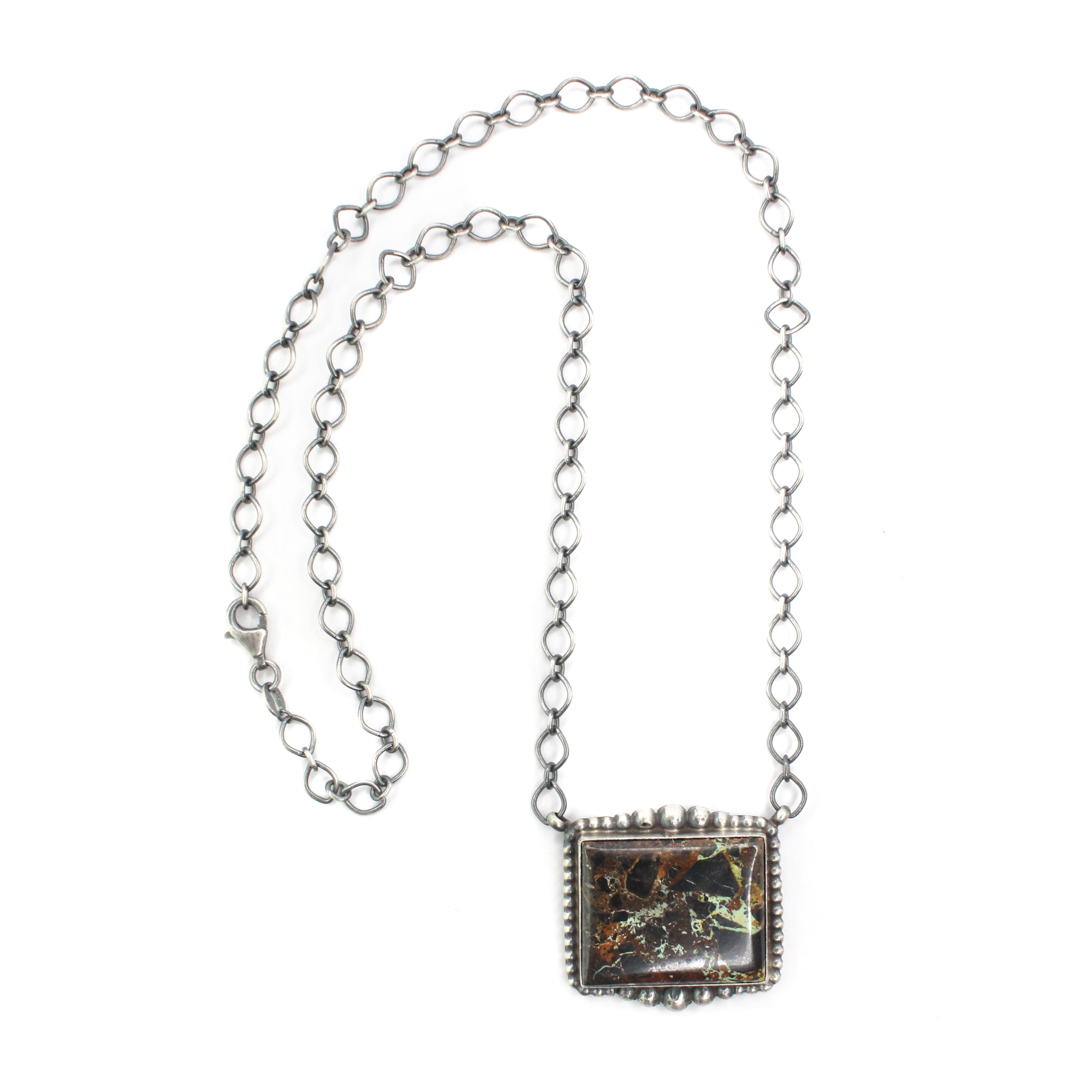 The Black Jack Turquoise mine is situated in Tonopah, Nevada. This mine is recognized for its significant deposits of dark brown and black turquoise, often featuring shades of green that range from sage to minty.