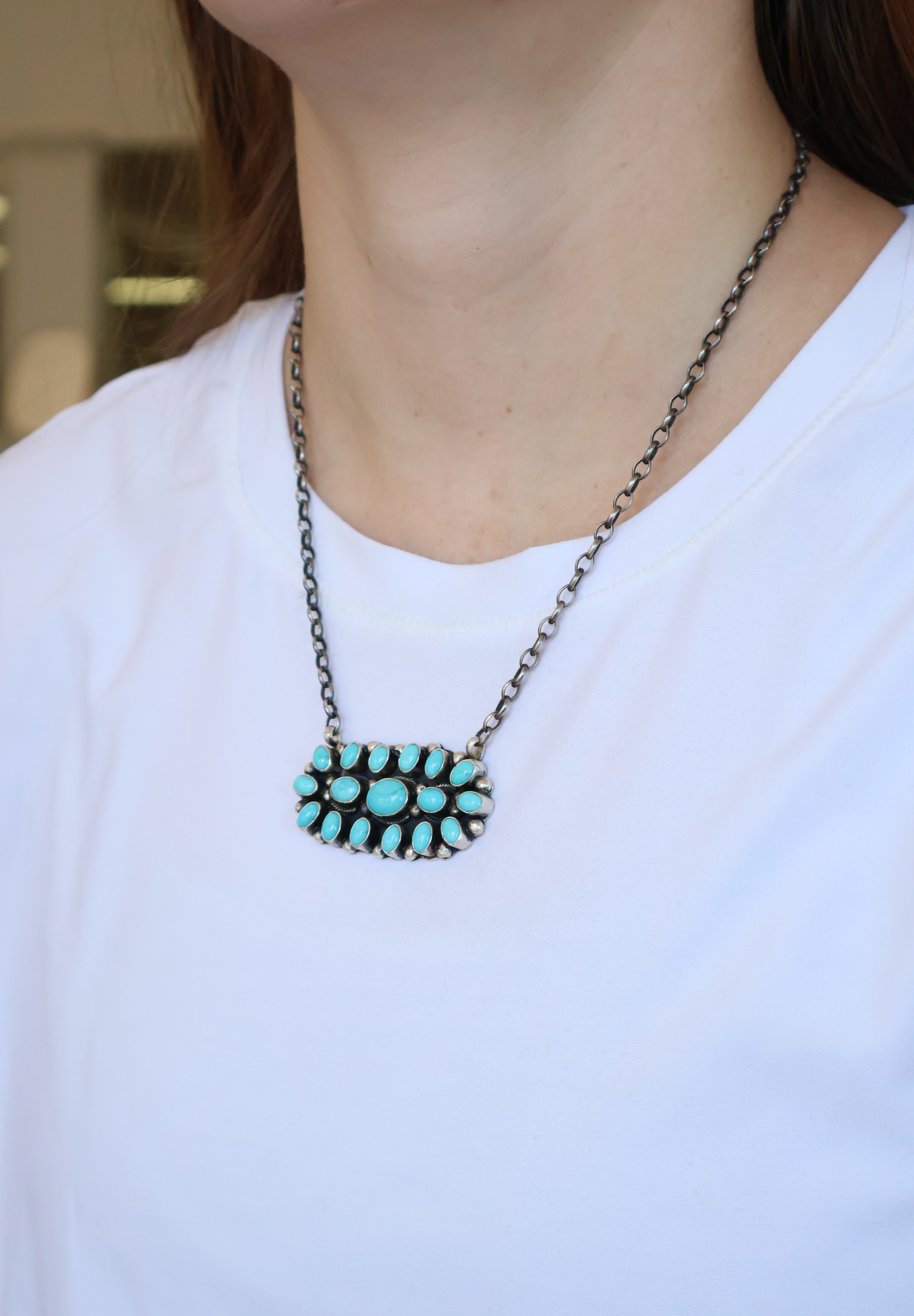 Sheila Becenti is a talented Navajo artist renowned for her outstanding craftsmanship, especially in her cluster work jewelry. With a keen eye for high-quality stones, she creates stunning statement pieces that beautifully reflect her cultural heritage and artistic vision. Her designs artfully blend traditional techniques with a modern twist, resulting in work that is highly coveted within the Native American art community. Sheila's dedication to her craft not only honors her roots but also pushes the boundaries of contemporary Native American jewelry.
