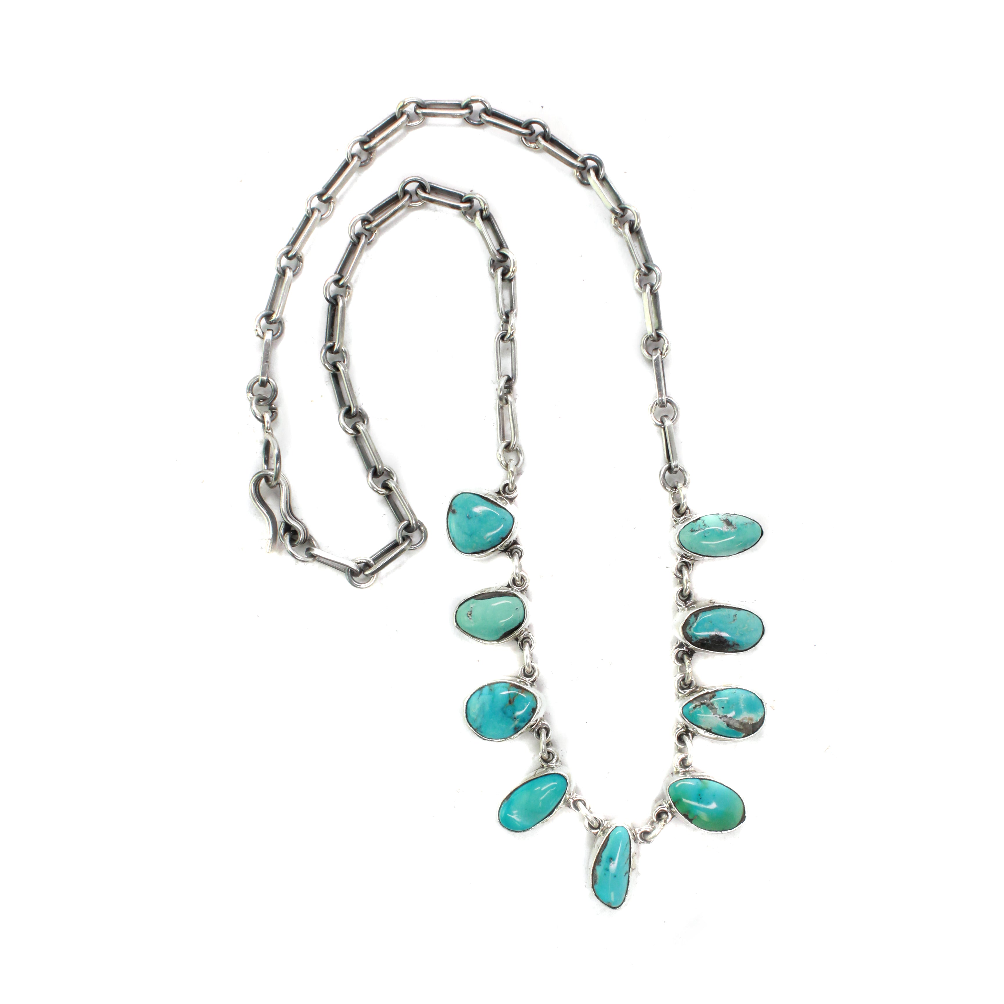The Kingman Mine, located near Kingman, Arizona, is an active turquoise mine that has been in production since the 1880s, following its discovery by S.A. Colbaugh in the Aztec Mountains. The Colbaugh family continues to mine, process, sort, and distribute Kingman Turquoise. Most Kingman Turquoise is porous and requires processing for jewelry, with only about 3% of the stones being naturally hard enough for direct use. The mine is renowned for its blue matrix turquoise. Read More