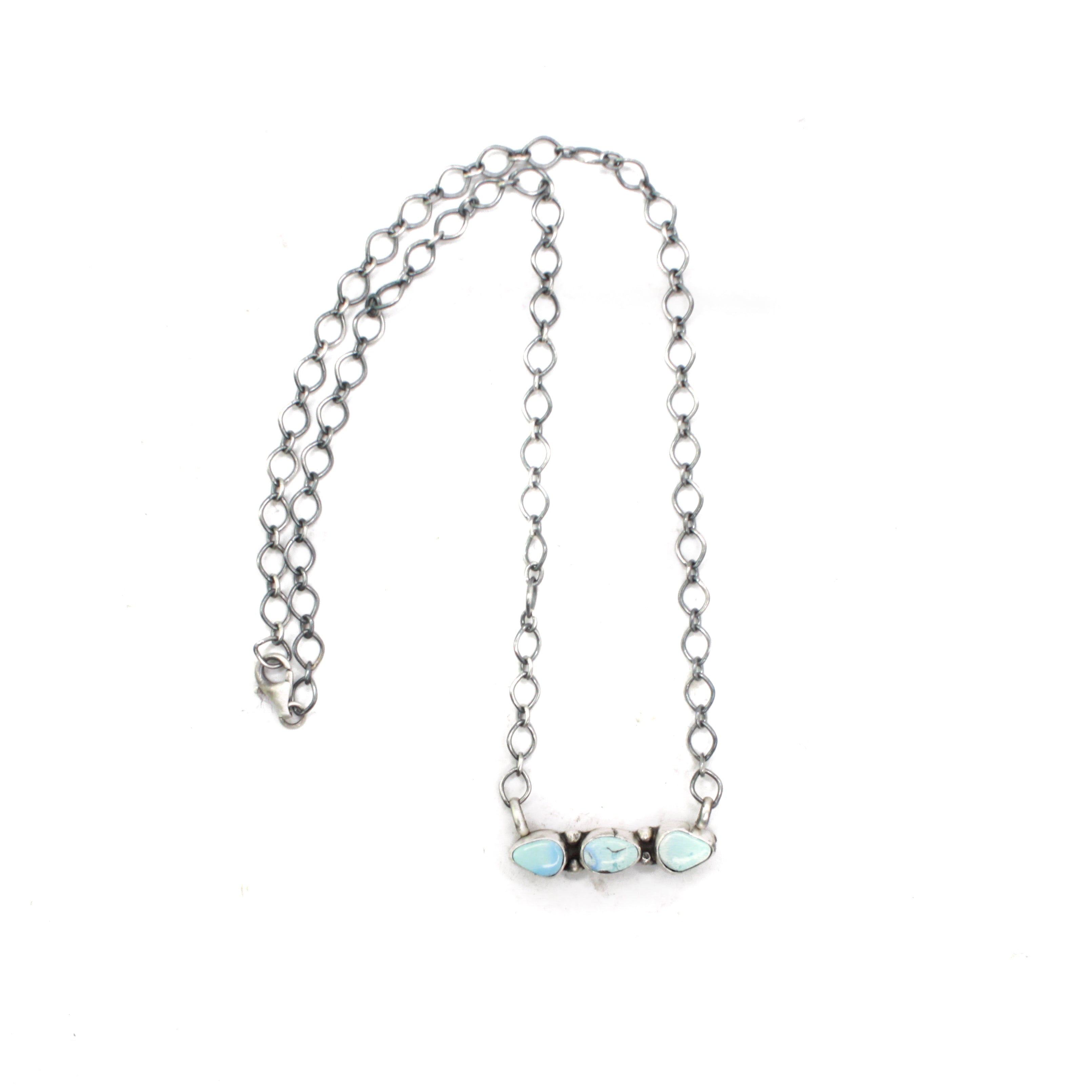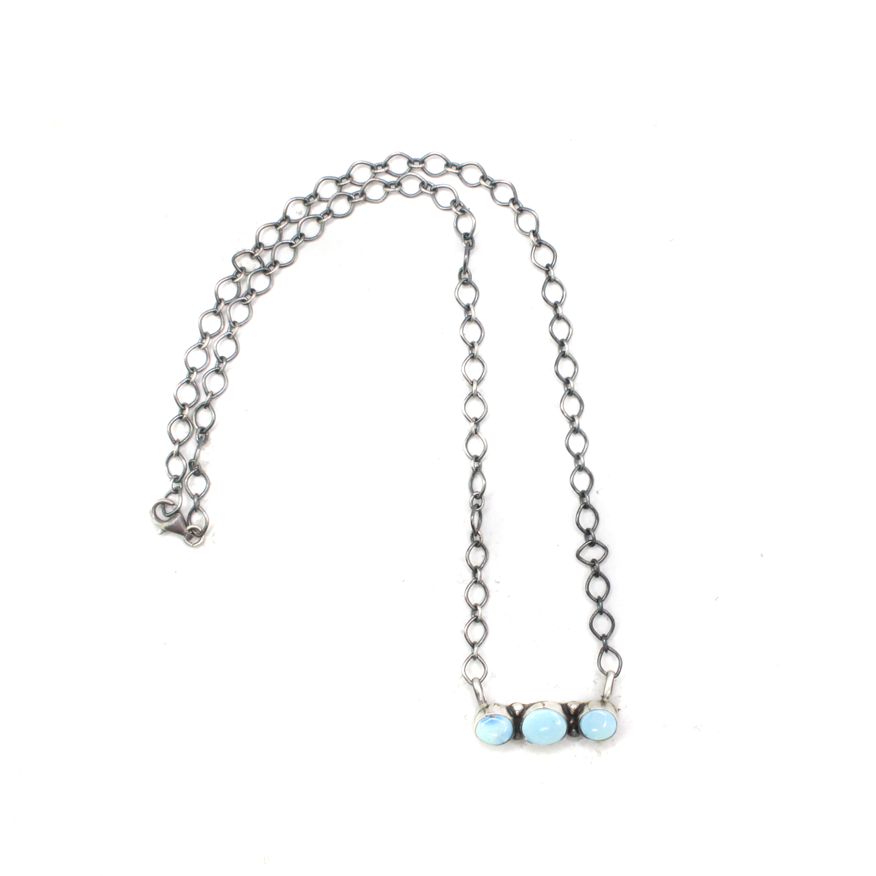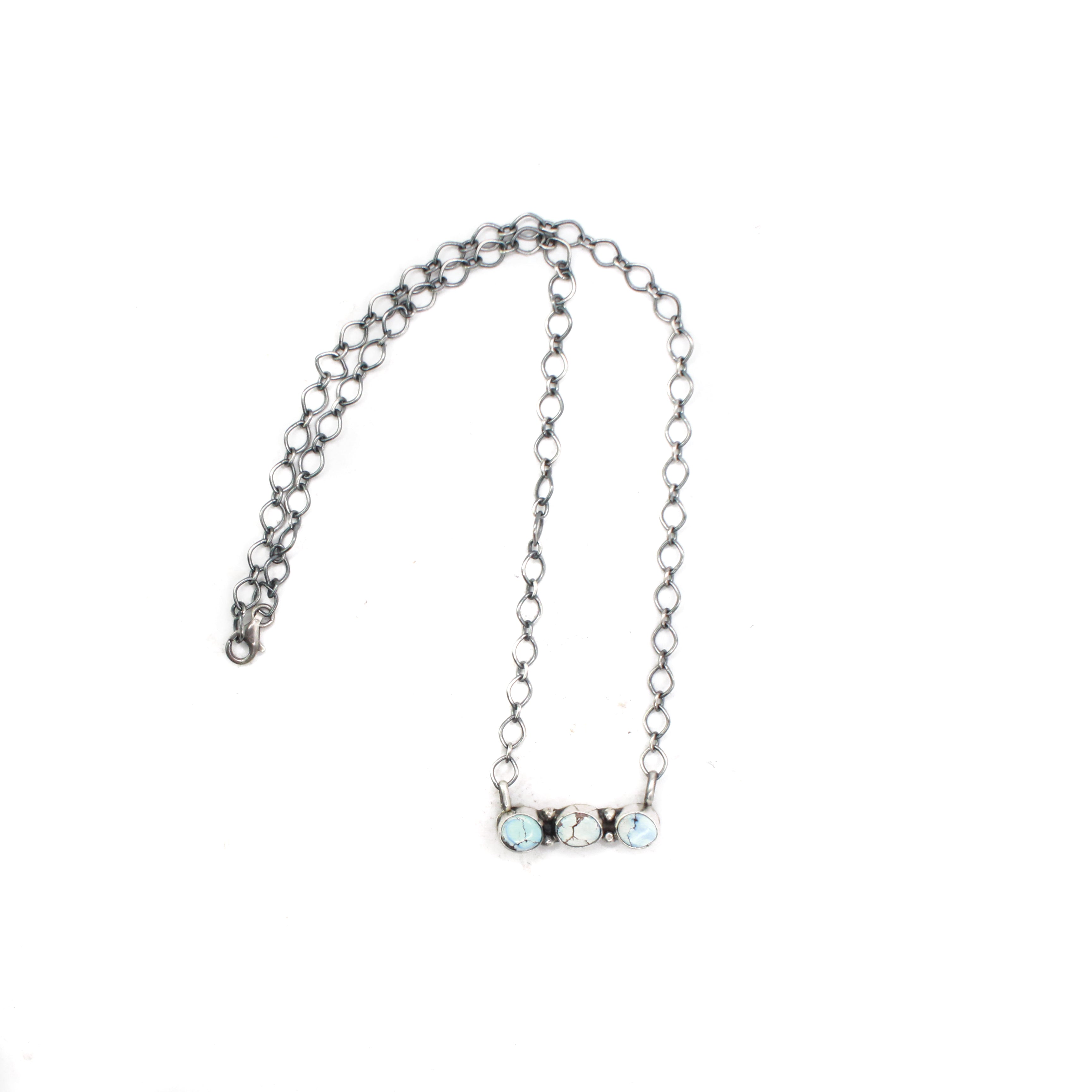 The length listed for bar necklaces is measured from clasp to hook, including the width of the bar. This total length does not directly reflect how the necklace will sit when worn. To more accurately determine where the necklace will sit, subtract the 'bar width' measurement from the 'length end to end" measurement.