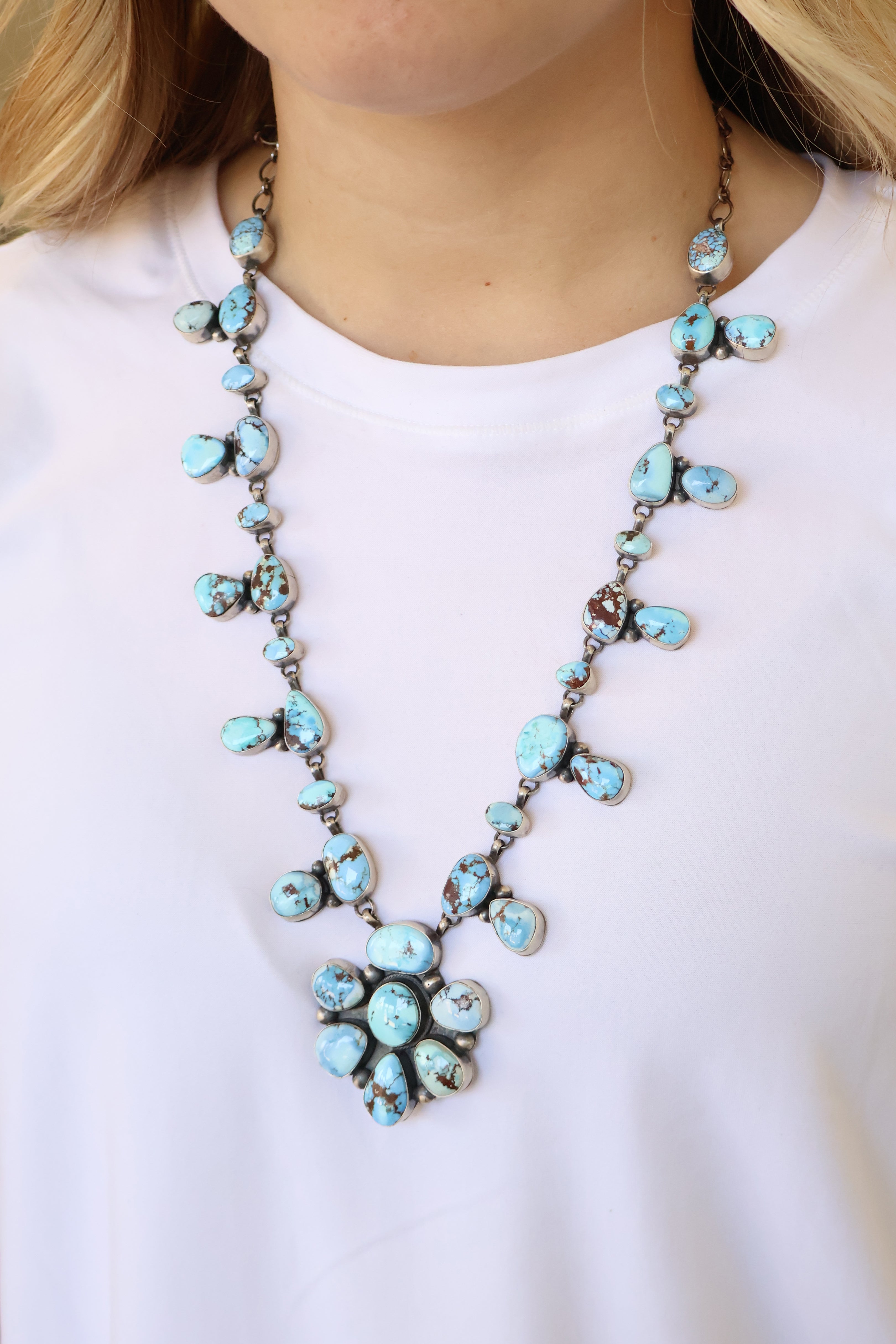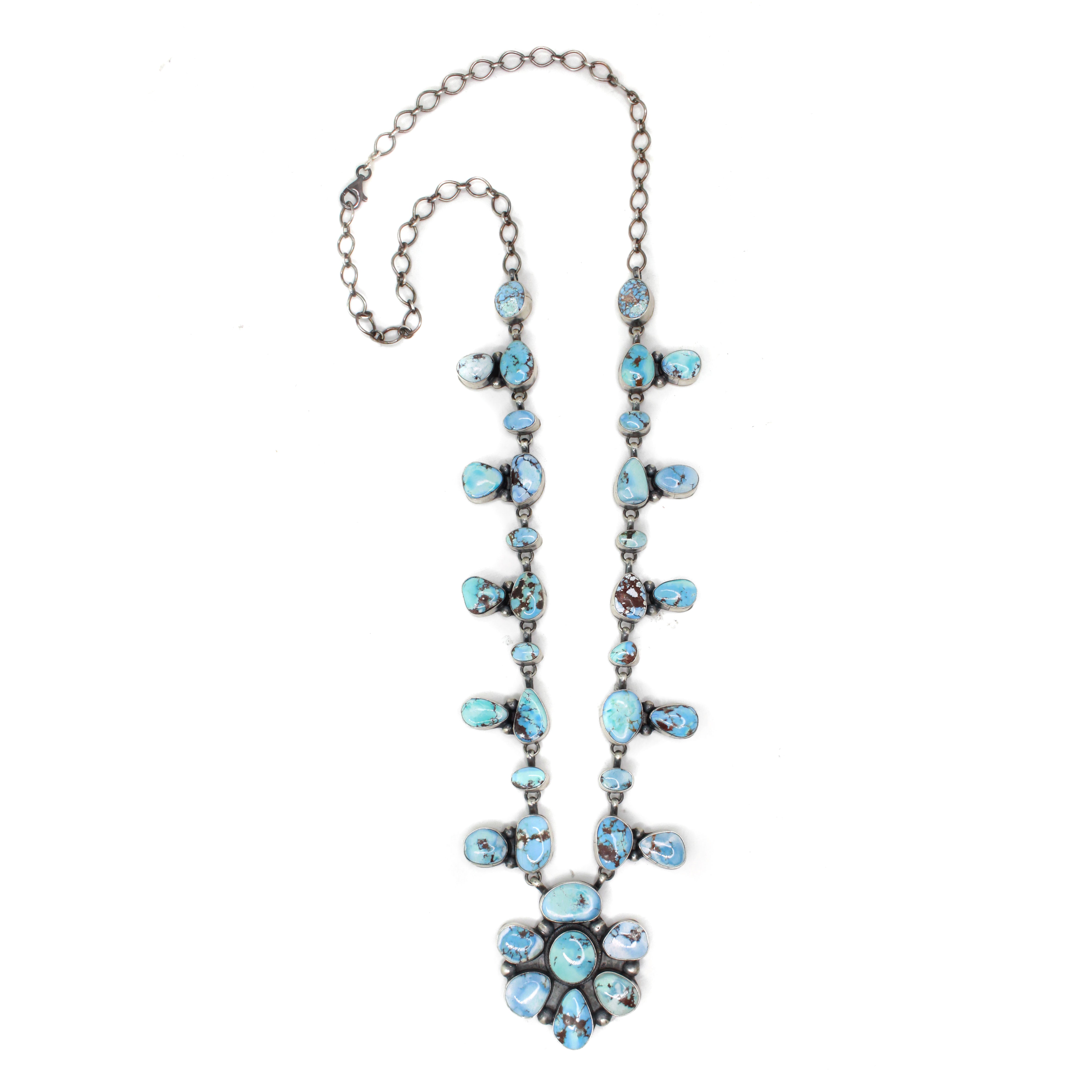 Golden Hills mine is located in Kazakhstan produces turquoise known for its unique periwinkle blues and beautiful burnt umber matrix. This hard, high-grade material yields one of the most chemically pure turquoises available. Mining occurs only in winter due to summer flooding in the area. This rarity and the challenging mining conditions contribute to its elevated price in the market. More Info