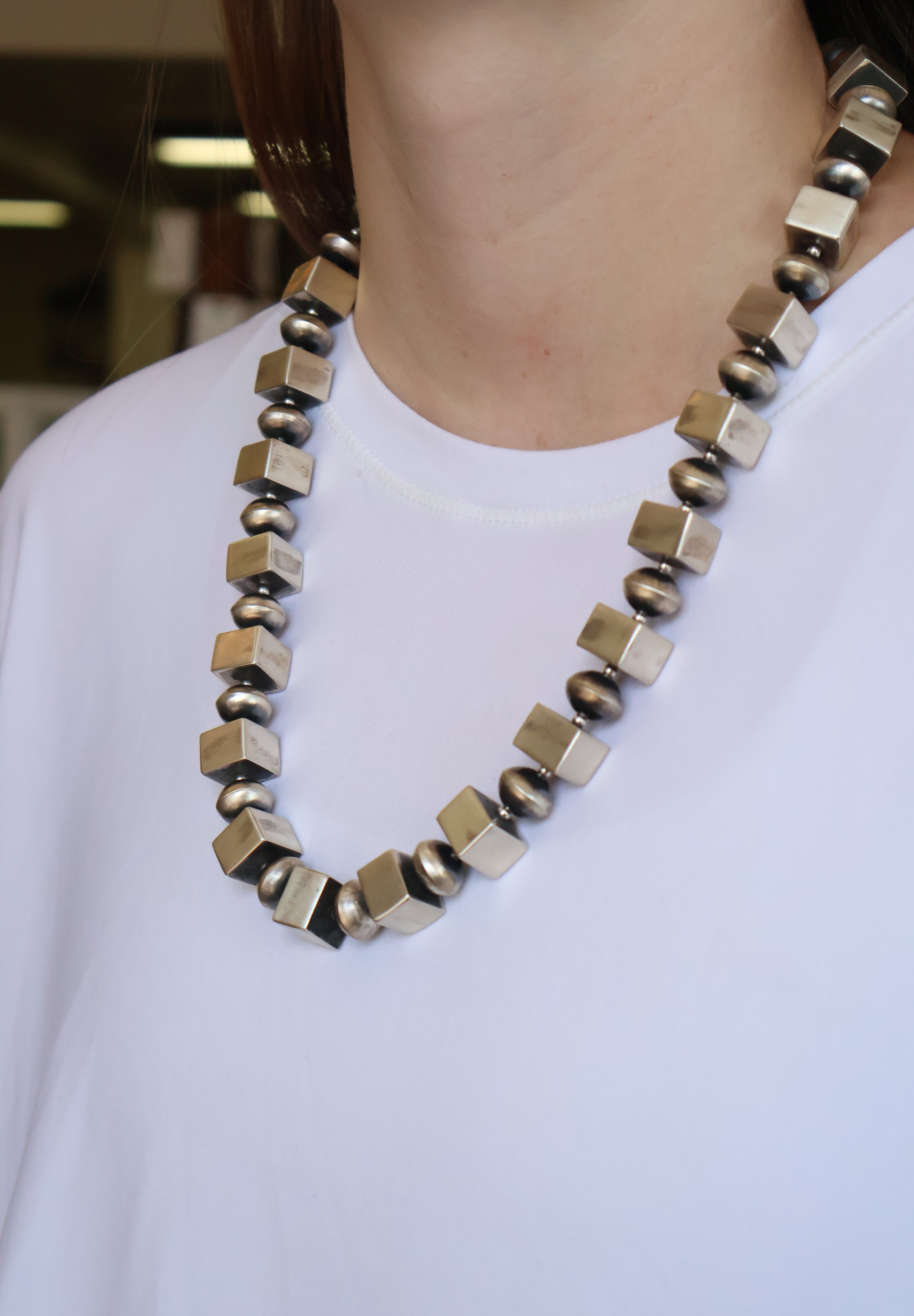 Creating hand-rolled silver beads is a celebrated tradition among Navajo silversmiths and an icon of Navajo jewelry. Handmade beads are meticulously crafted, with each bead being the result of an extremely labor-intensive process. These beads are shaped by hand using tools such as hammers, pliers, and files. The lengthy process includes melting, rolling, cutting, shaping, soldering & filing each sterling silver bead by BY HAND. This meticulous time honored method is a highly skilled trade that few artists have mastered.