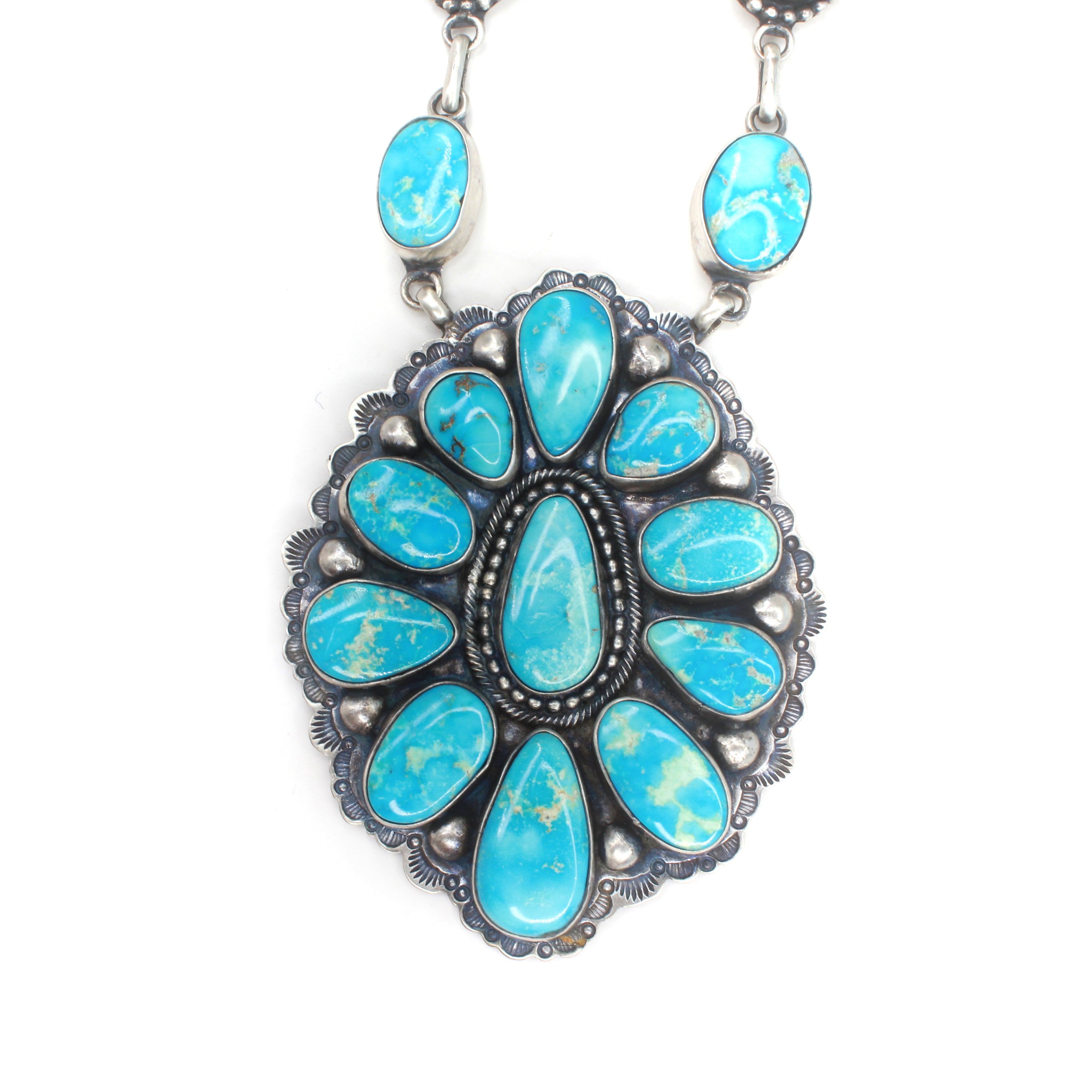 The Kingman Mine, located near Kingman, Arizona, is an active turquoise mine that has been in production since the 1880s, following its discovery by S.A. Colbaugh in the Aztec Mountains. The Colbaugh family continues to mine, process, sort, and distribute Kingman Turquoise. Most Kingman Turquoise is porous and requires processing for jewelry, with only about 3% of the stones being naturally hard enough for direct use. The mine is renowned for its blue matrix turquoise. Read More