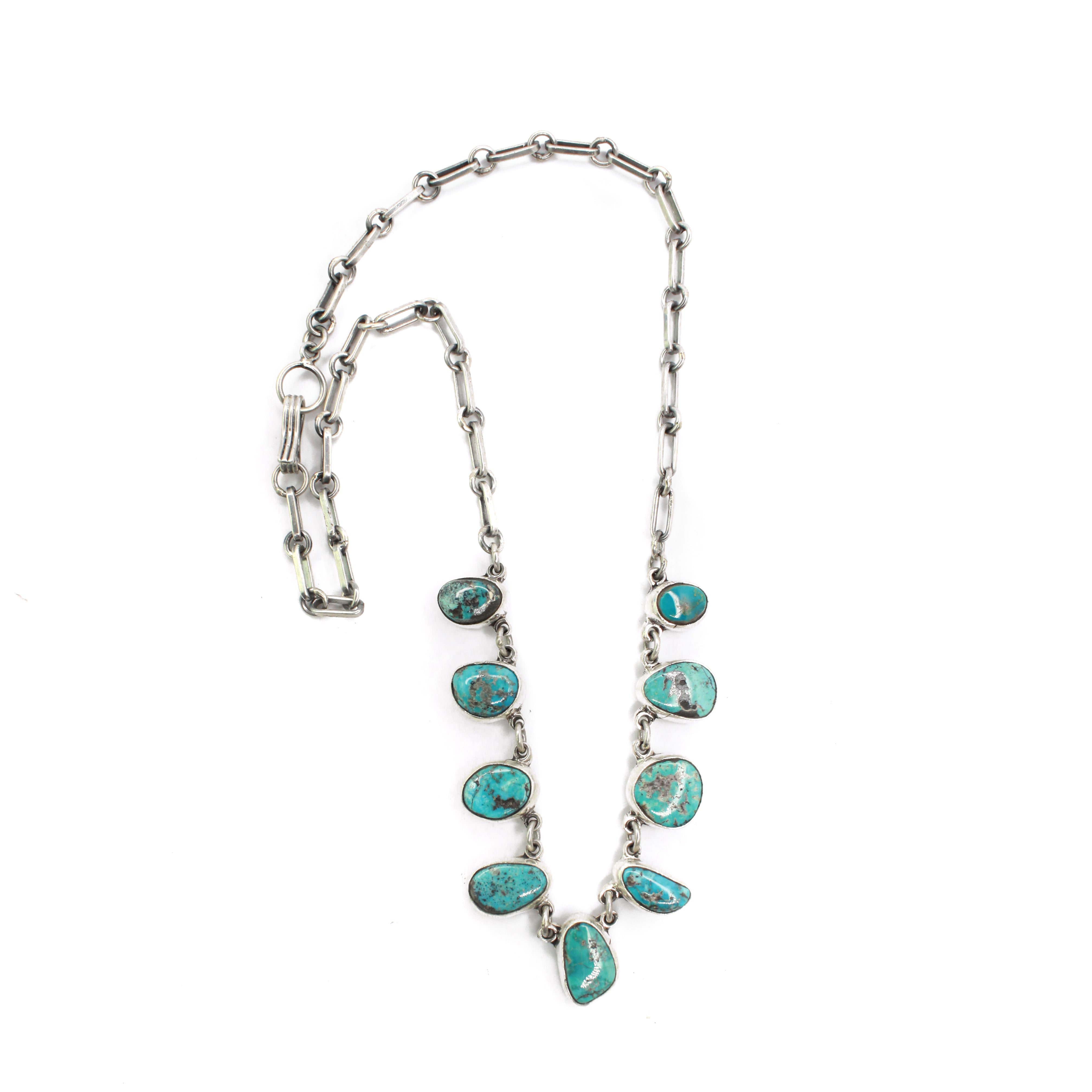 The Kingman Mine, located near Kingman, Arizona, is an active turquoise mine that has been in production since the 1880s, following its discovery by S.A. Colbaugh in the Aztec Mountains. The Colbaugh family continues to mine, process, sort, and distribute Kingman Turquoise. Most Kingman Turquoise is porous and requires processing for jewelry, with only about 3% of the stones being naturally hard enough for direct use. The mine is renowned for its blue matrix turquoise. Read More