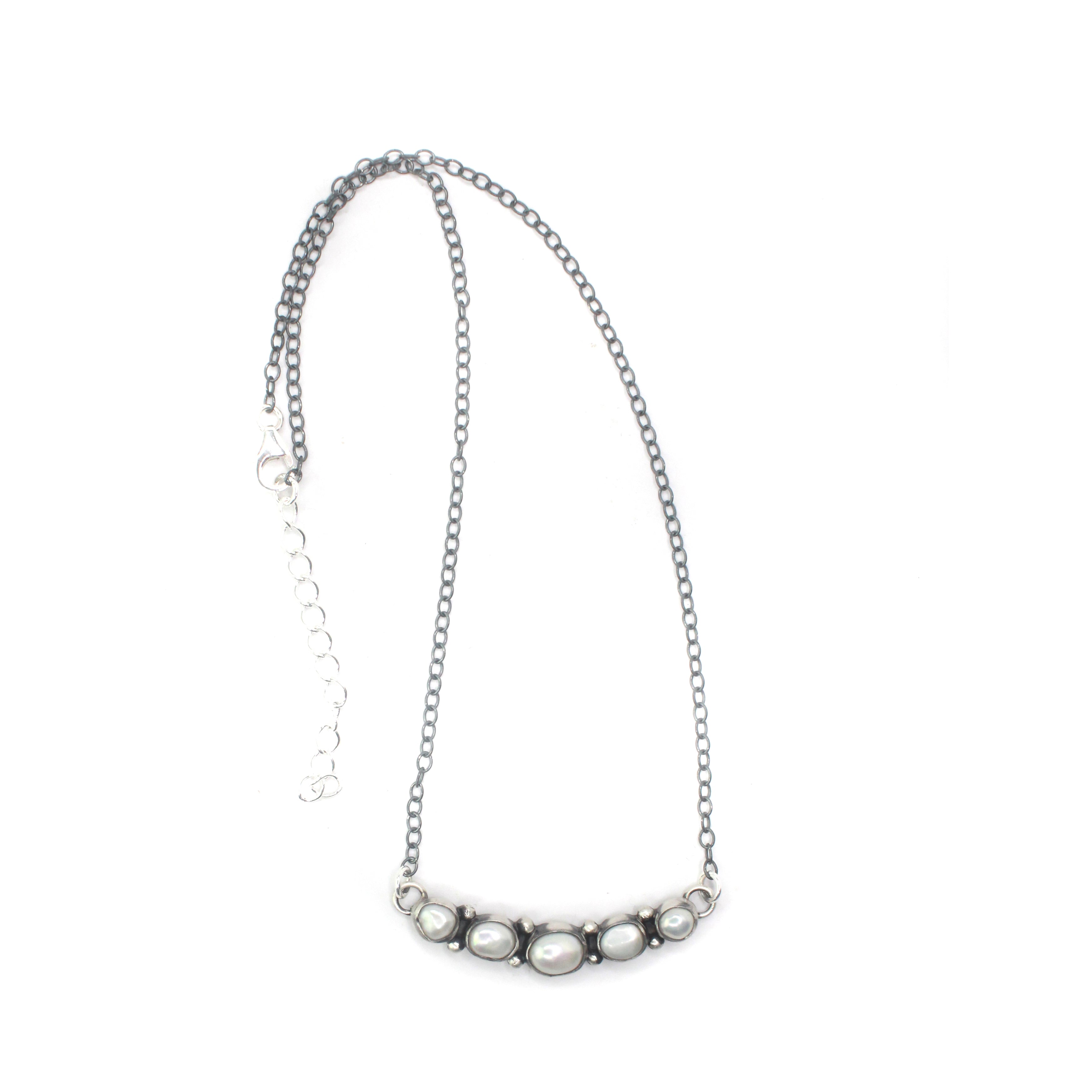 The length listed for bar necklaces is measured from clasp to hook, including the width of the bar. This total length does not directly reflect how the necklace will sit when worn. To more accurately determine where the necklace will sit, subtract the 'bar width' measurement from the 'length end to end" measurement.