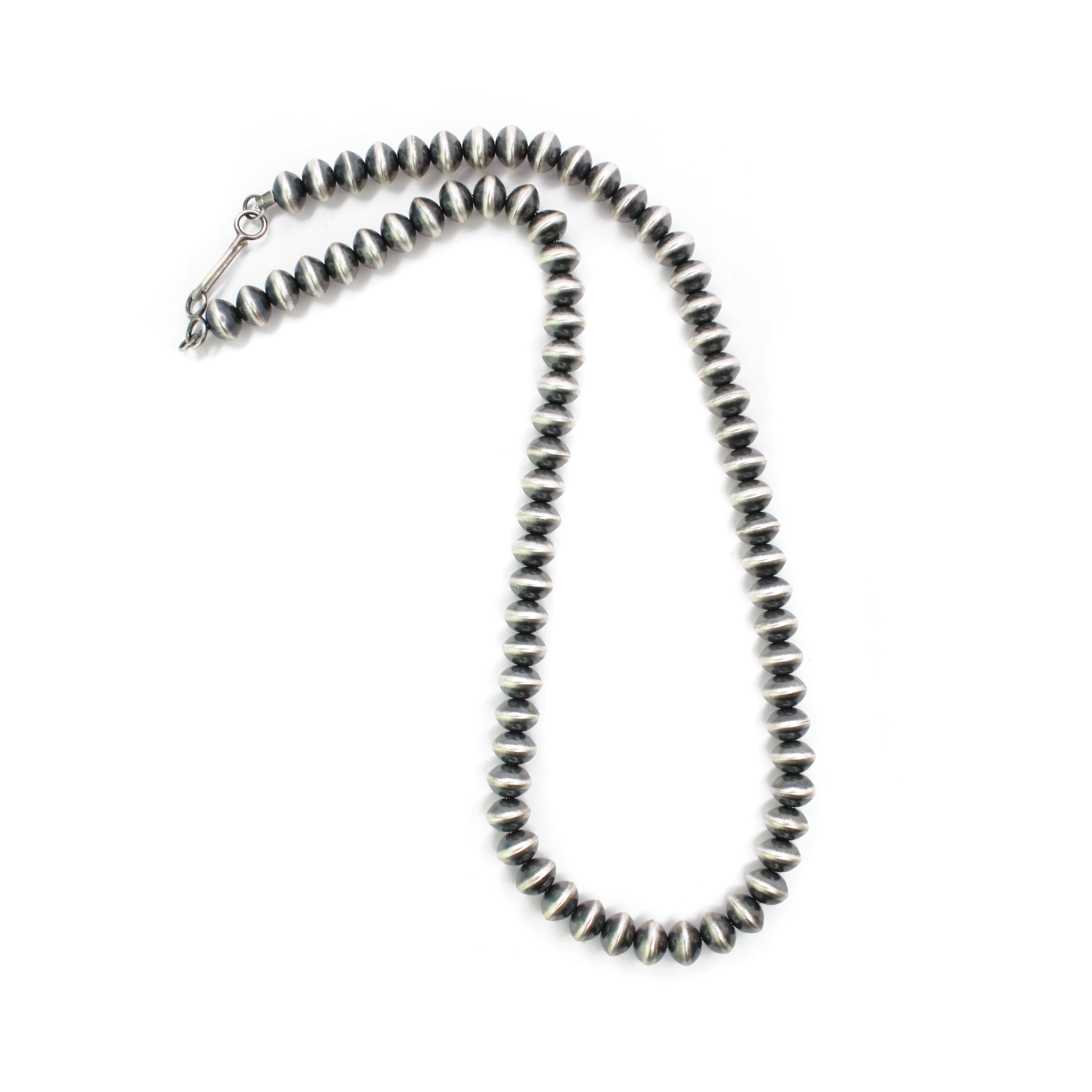 Creating hand-rolled silver beads is a celebrated tradition among Navajo silversmiths and an icon of Navajo jewelry. Handmade beads are meticulously crafted, with each bead being the result of an extremely labor-intensive process. These beads are shaped by hand using tools such as hammers, pliers, and files. The lengthy process includes melting, rolling, cutting, shaping, soldering & filing each sterling silver bead by BY HAND. This meticulous time honored method is a highly skilled trade that few artists have mastered.
