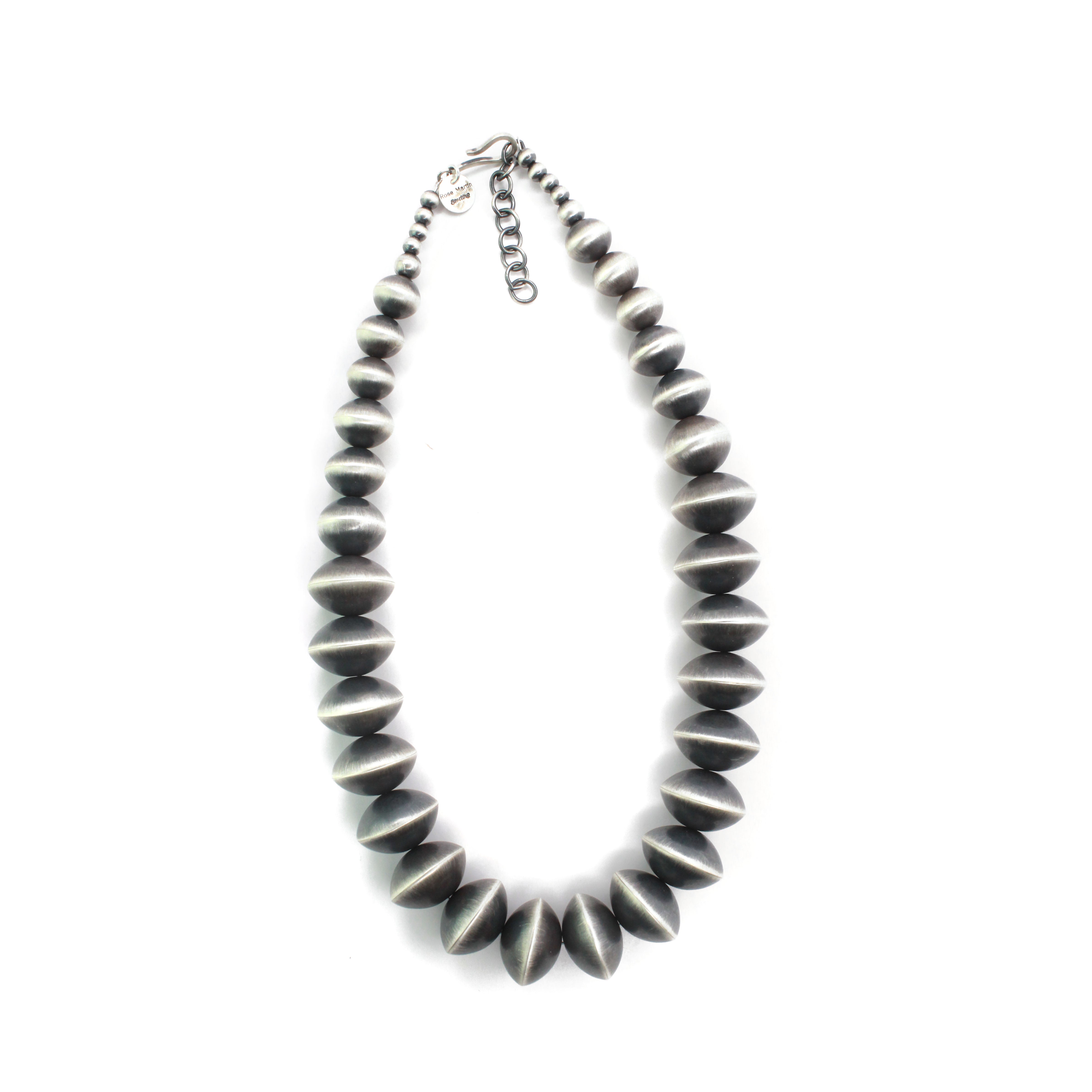 Creating hand-rolled silver beads is a celebrated tradition among Navajo silversmiths and an icon of Navajo jewelry. Handmade beads are meticulously crafted, with each bead being the result of an extremely labor-intensive process. These beads are shaped by hand using tools such as hammers, pliers, and files. The lengthy process includes melting, rolling, cutting, shaping, soldering & filing each sterling silver bead by BY HAND. This meticulous time honored method is a highly skilled trade that few artists have mastered.