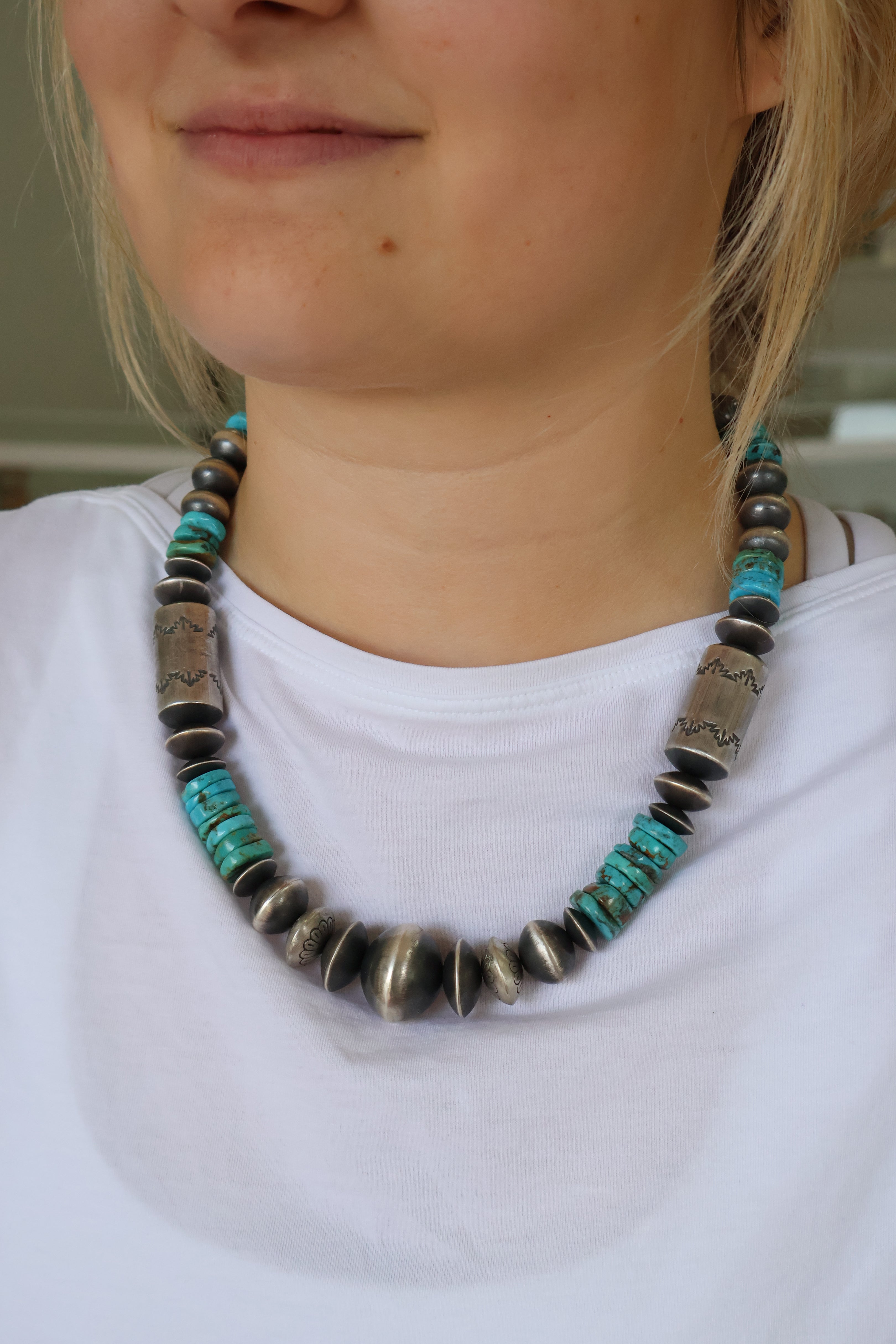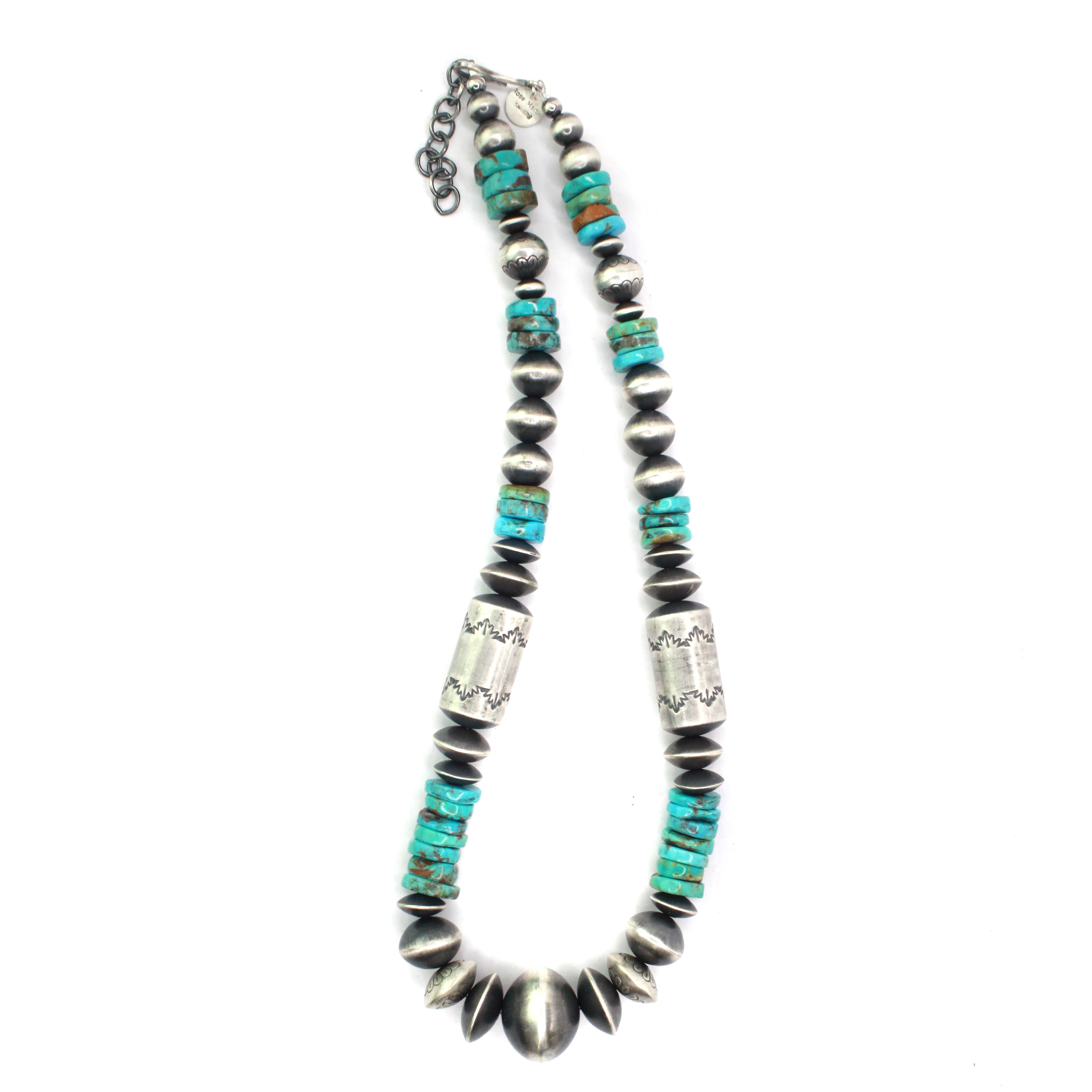 Creating hand-rolled silver beads is a celebrated tradition among Navajo silversmiths and an icon of Navajo jewelry. Handmade beads are meticulously crafted, with each bead being the result of an extremely labor-intensive process. These beads are shaped by hand using tools such as hammers, pliers, and files. The lengthy process includes melting, rolling, cutting, shaping, soldering & filing each sterling silver bead by BY HAND. This meticulous time honored method is a highly skilled trade that few artists have mastered.