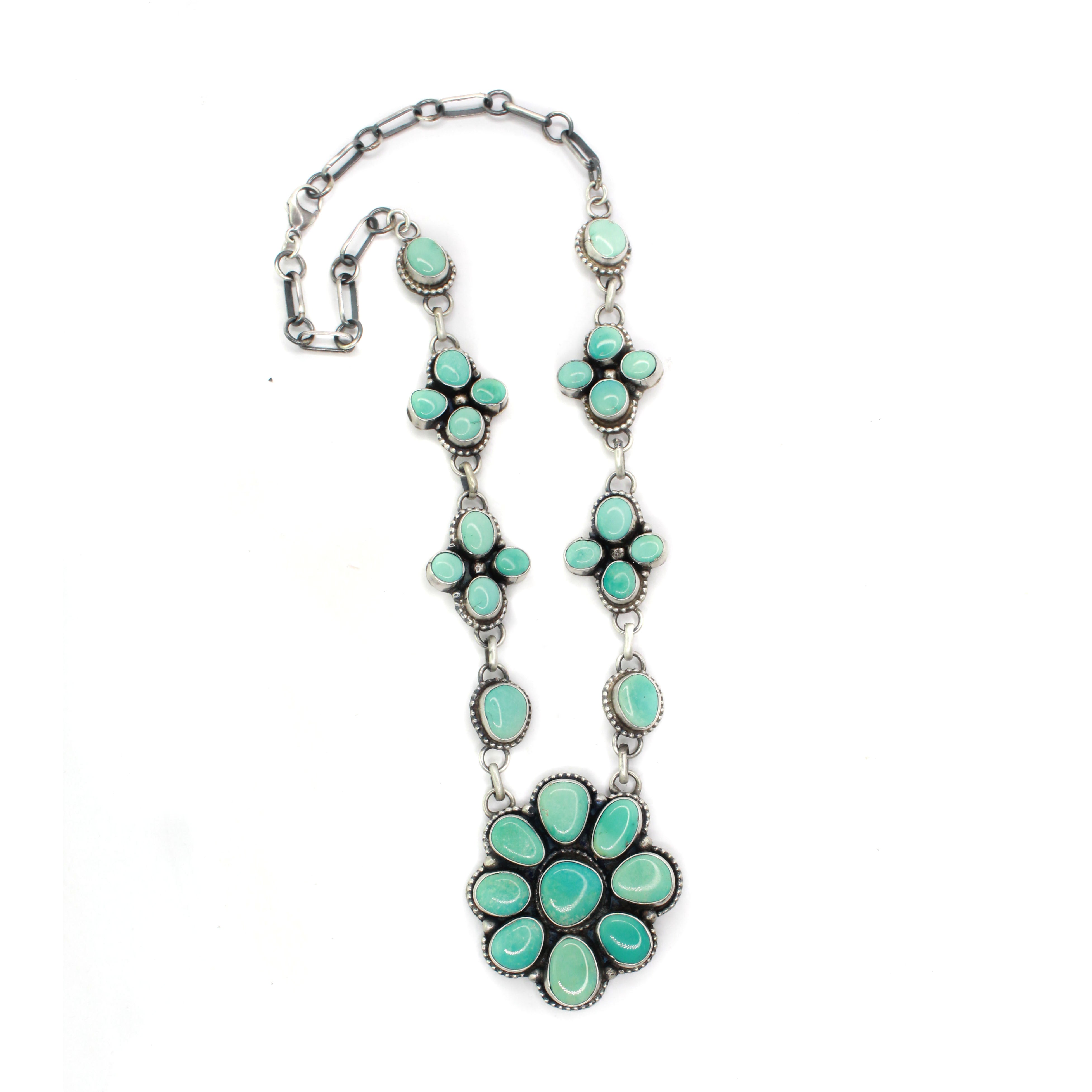 The Kingman Mine, located near Kingman, Arizona, is an active turquoise mine that has been in production since the 1880s, following its discovery by S.A. Colbaugh in the Aztec Mountains. The Colbaugh family continues to mine, process, sort, and distribute Kingman Turquoise. Most Kingman Turquoise is porous and requires processing for jewelry, with only about 3% of the stones being naturally hard enough for direct use. The mine is renowned for its blue matrix turquoise. Read More