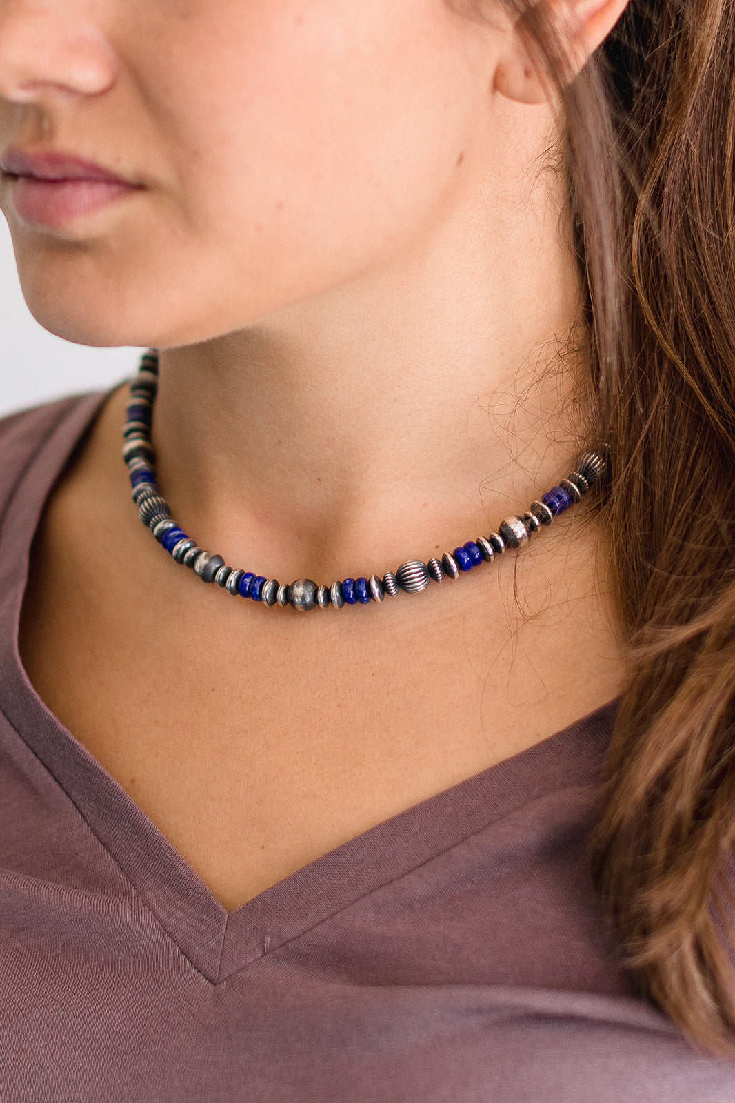 Navajo pearls by Marilyn Platero are a stunning blend of traditional style and contemporary craftsmanship. Known for her impeccable attention to detail, Marilyn strings her pearls on foxtail chain and finishes the ends with soldered clasps for added durability. Her use of machine-made beads provides a uniform and consistent appearance compared to handmade options. The use of machines also allows her to create pearls that range in size from 4mm. Unlike other machine-made beads, Marilyn's have a substantial weight and feel, adding to their quality and appearance. Her beads are oxidized and buffed by hand by Navajo artist Bronson Belone.