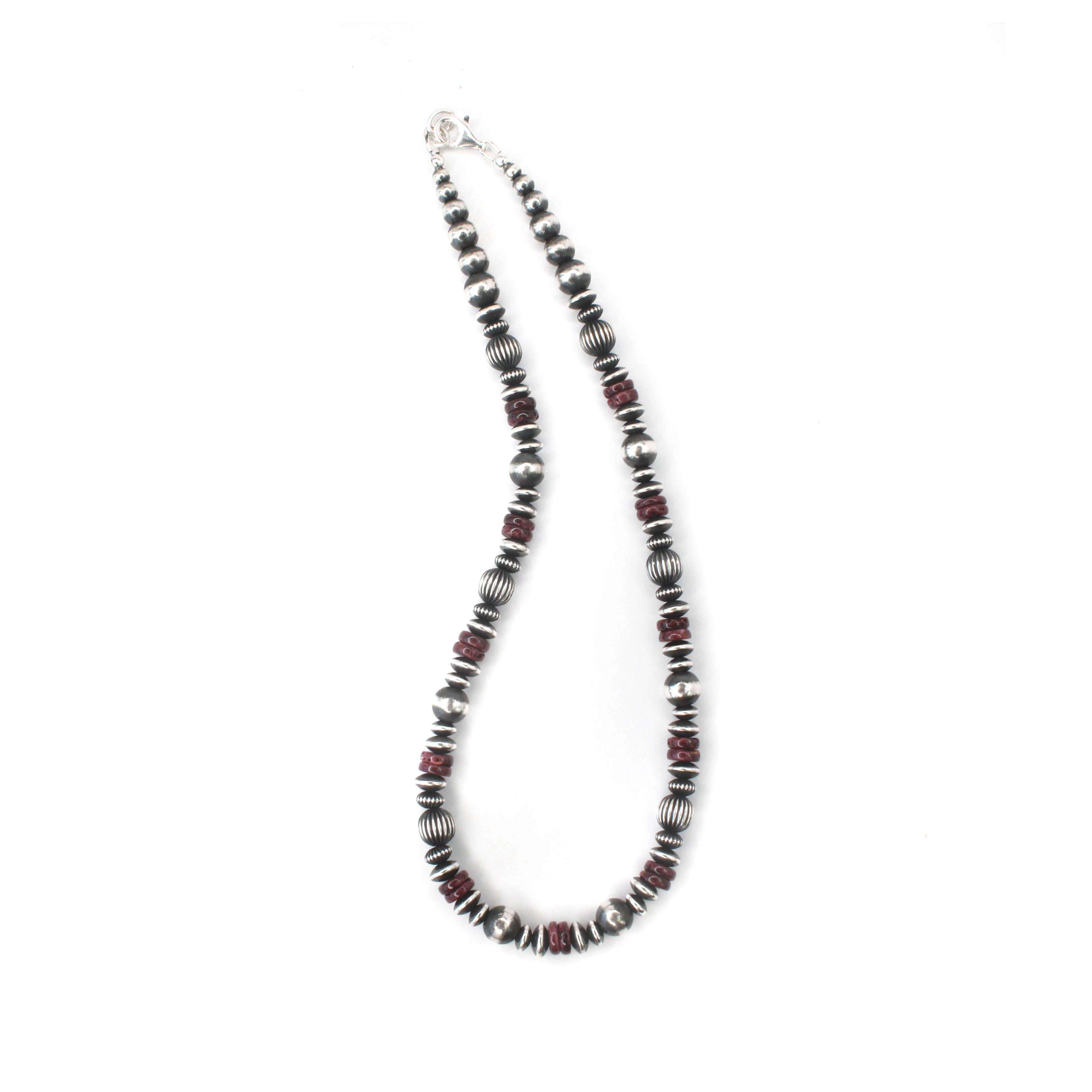 Navajo pearls by Marilyn Platero are a stunning blend of traditional style and contemporary craftsmanship. Known for her impeccable attention to detail, Marilyn strings her pearls on foxtail chain and finishes the ends with soldered clasps for added durability. Her use of machine-made beads provides a uniform and consistent appearance compared to handmade options. The use of machines also allows her to create pearls that range in size from 4mm. Unlike other machine-made beads, Marilyn's have a substantial weight and feel, adding to their quality and appearance. Her beads are oxidized and buffed by hand by Navajo artist Bronson Belone.