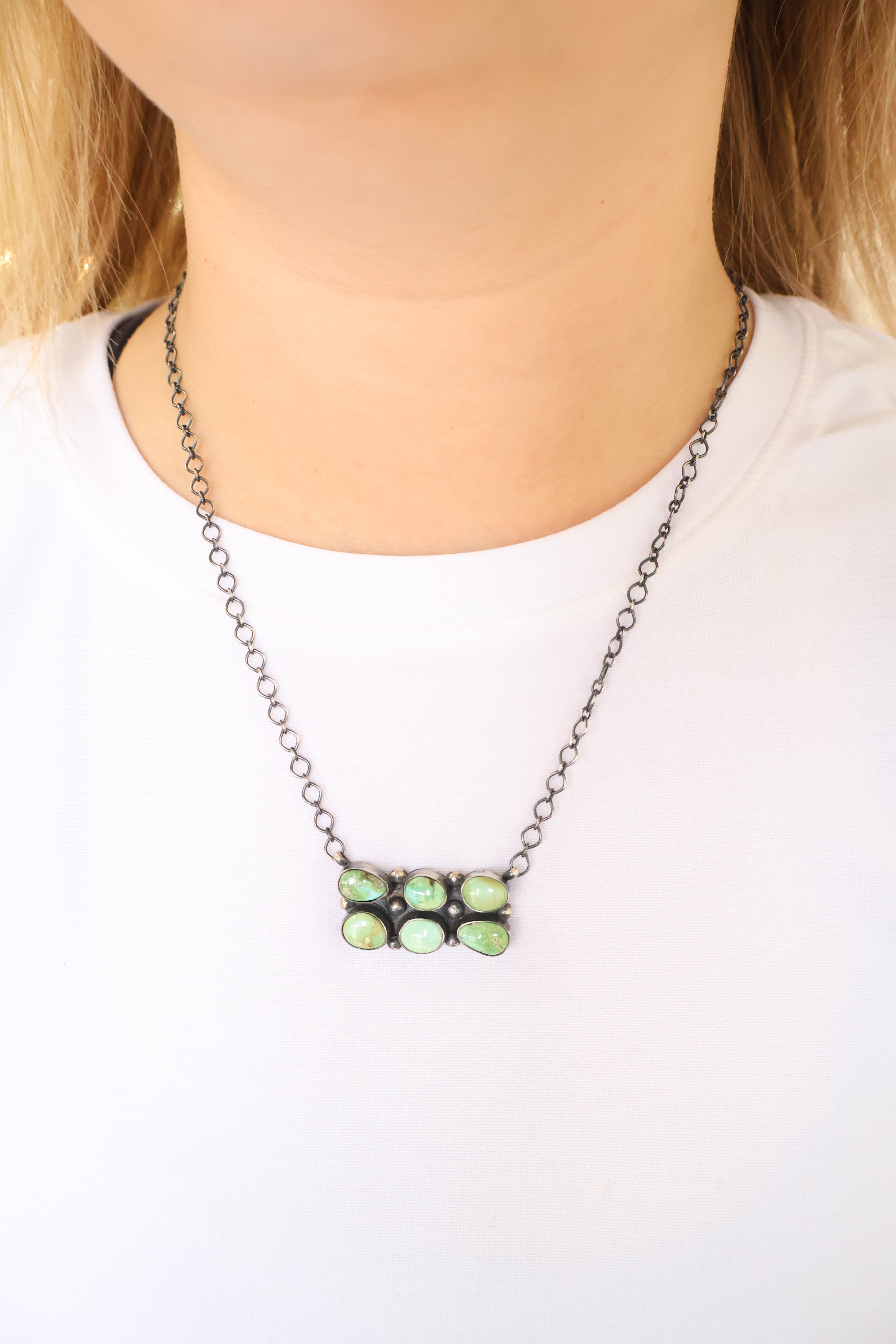 The length listed for bar necklaces is measured from clasp to hook, including the width of the bar. This total length does not directly reflect how the necklace will sit when worn. To more accurately determine where the necklace will sit, subtract the 'bar width' measurement from the 'length end to end" measurement.