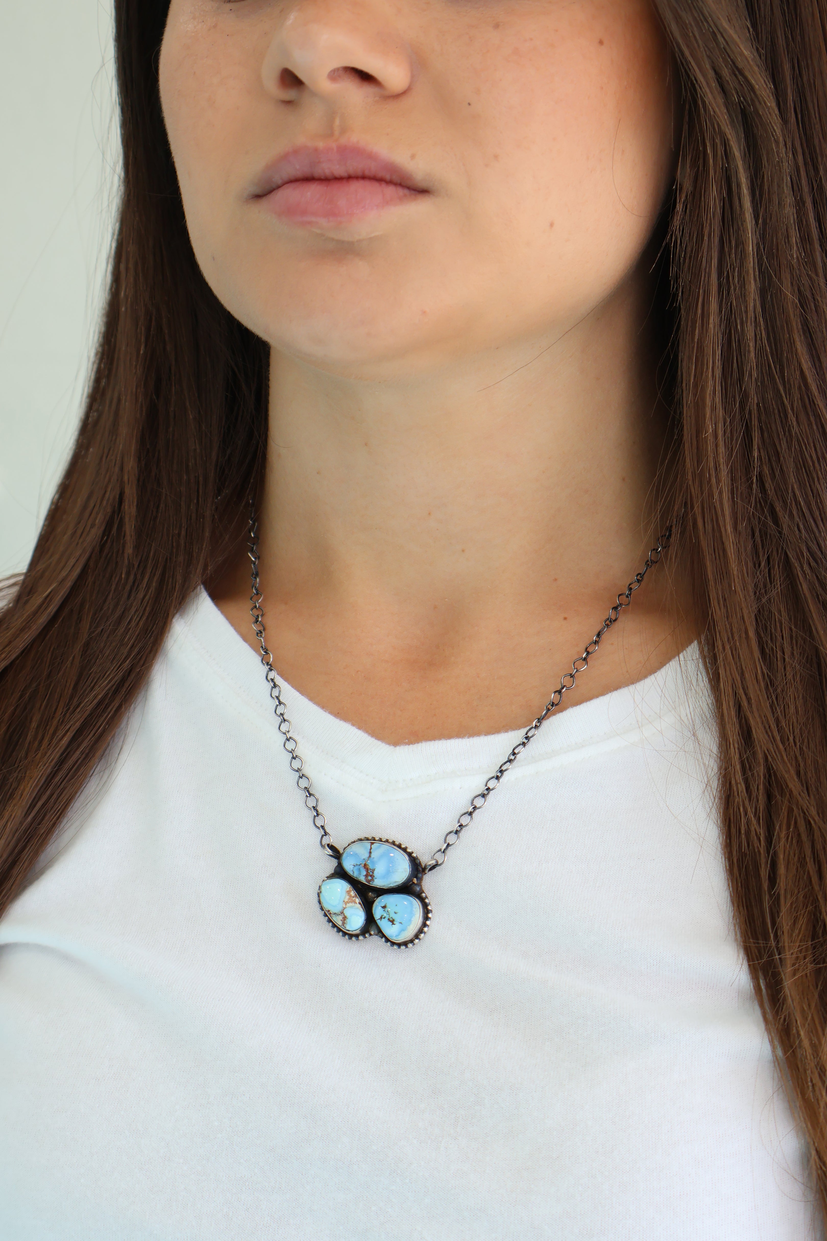 Golden Hills mine is located in Kazakhstan produces turquoise known for its unique periwinkle blues and beautiful burnt umber matrix. This hard, high-grade material yields one of the most chemically pure turquoises available. Mining occurs only in winter due to summer flooding in the area. This rarity and the challenging mining conditions contribute to its elevated price in the market. More Info