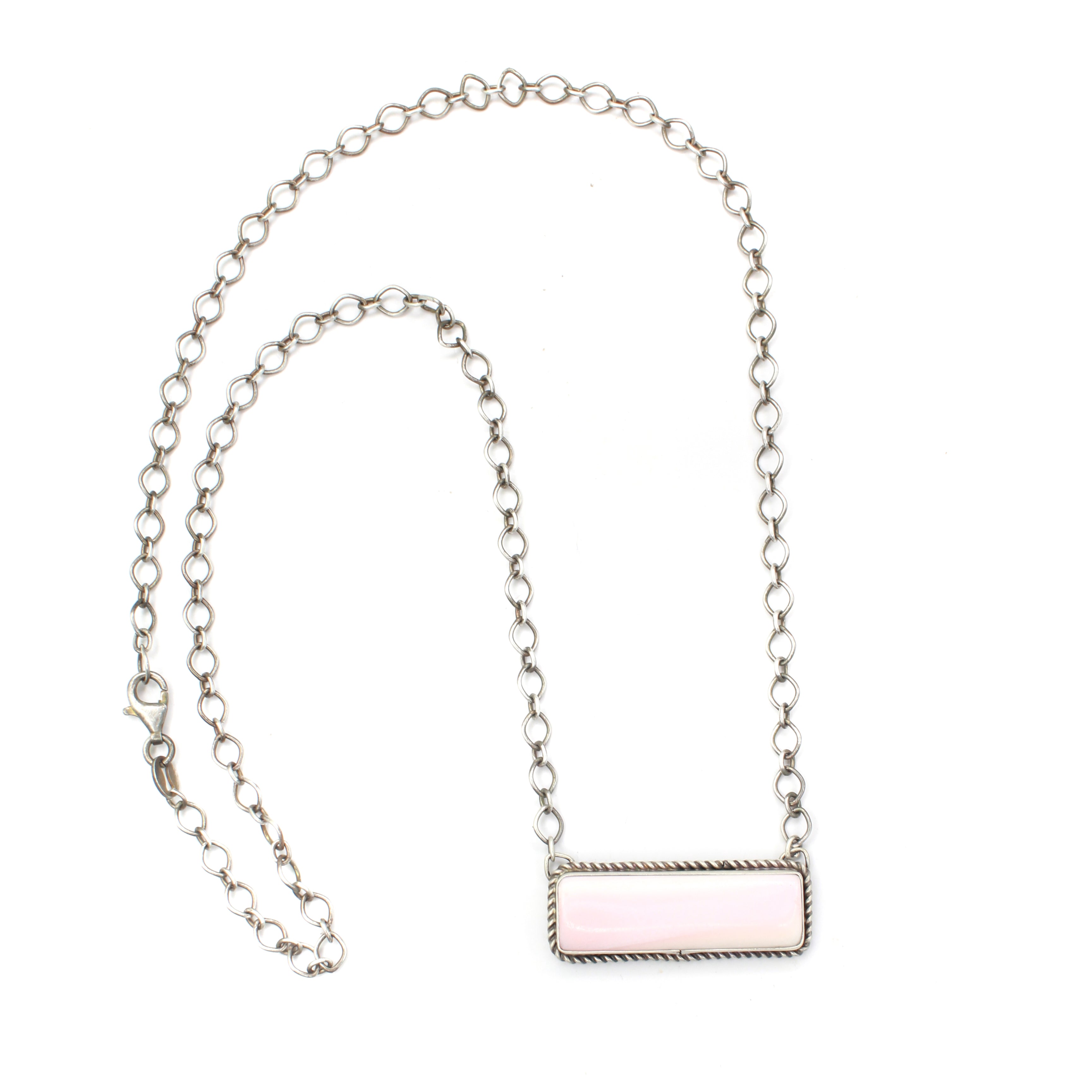 The length listed for bar necklaces is measured from clasp to hook, including the width of the bar. This total length does not directly reflect how the necklace will sit when worn. To more accurately determine where the necklace will sit, subtract the 'bar width' measurement from the 'length end to end" measurement.