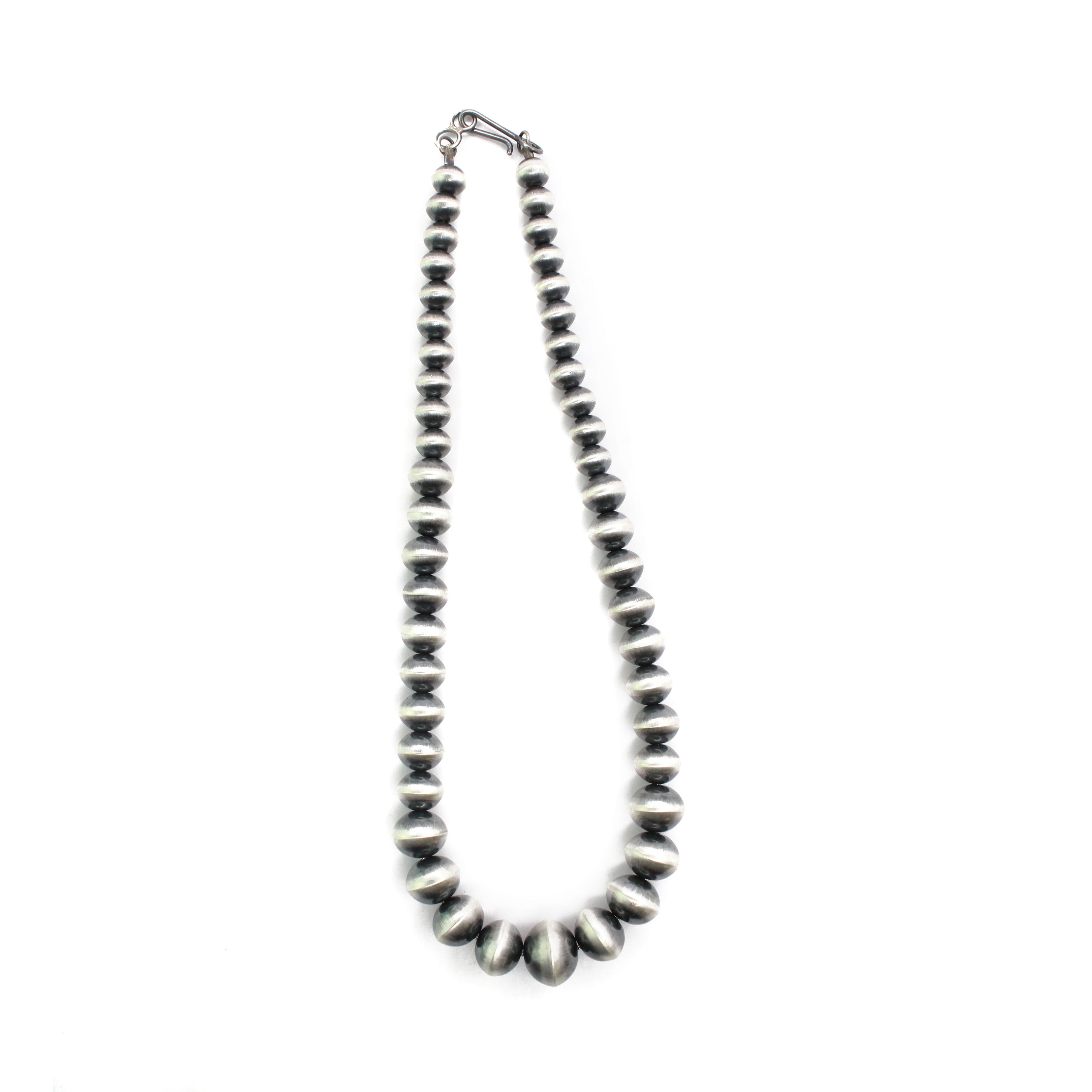 Creating hand-rolled silver beads is a celebrated tradition among Navajo silversmiths and an icon of Navajo jewelry. Handmade beads are meticulously crafted, with each bead being the result of an extremely labor-intensive process. These beads are shaped by hand using tools such as hammers, pliers, and files. The lengthy process includes melting, rolling, cutting, shaping, soldering & filing each sterling silver bead by BY HAND. This meticulous time honored method is a highly skilled trade that few artists have mastered.